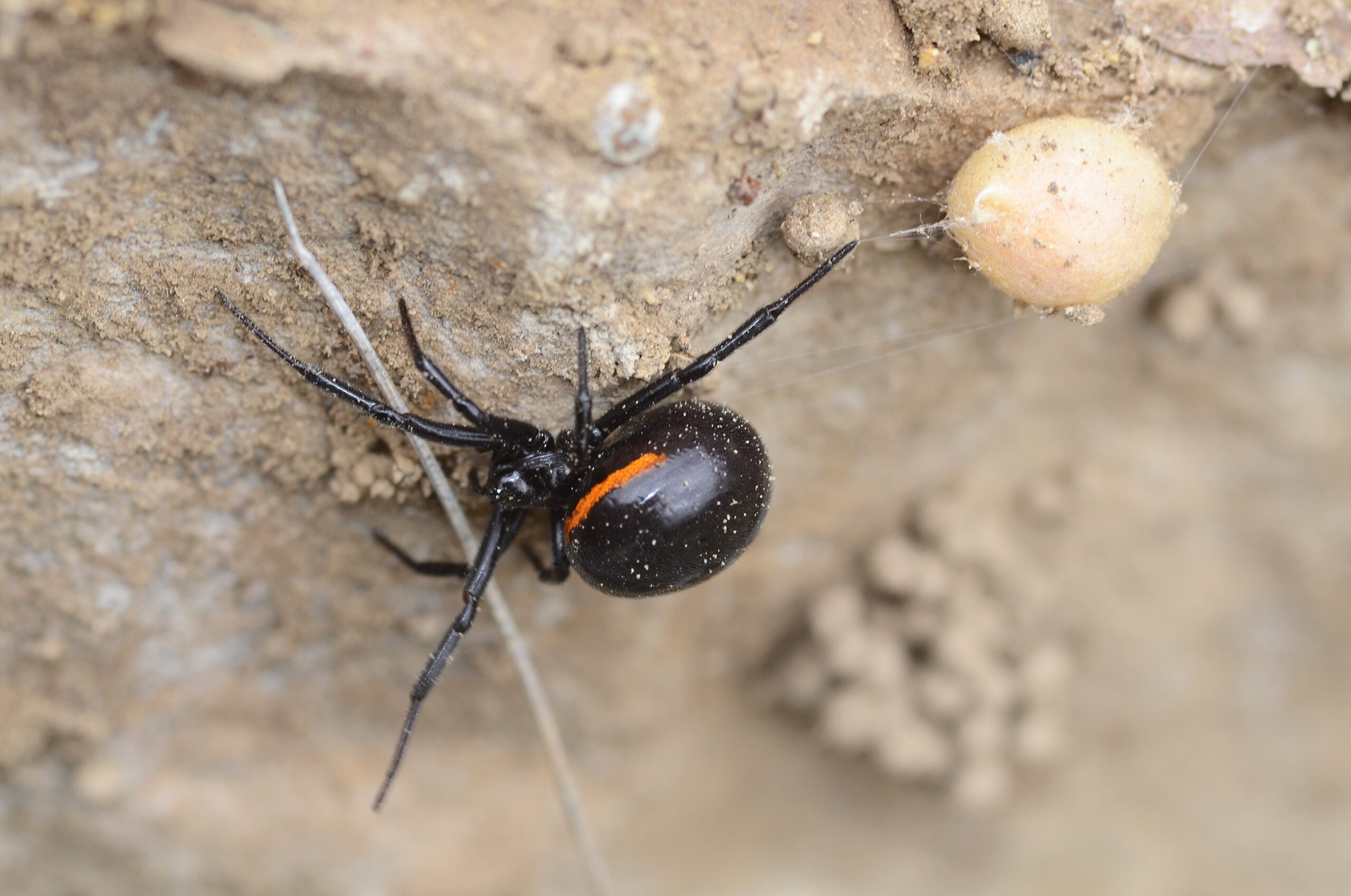 Viuda negra europea (Latrodectus tredecimguttatus). Paraje de San Bartolomé, Villahermosa del Río (Castellón). España.