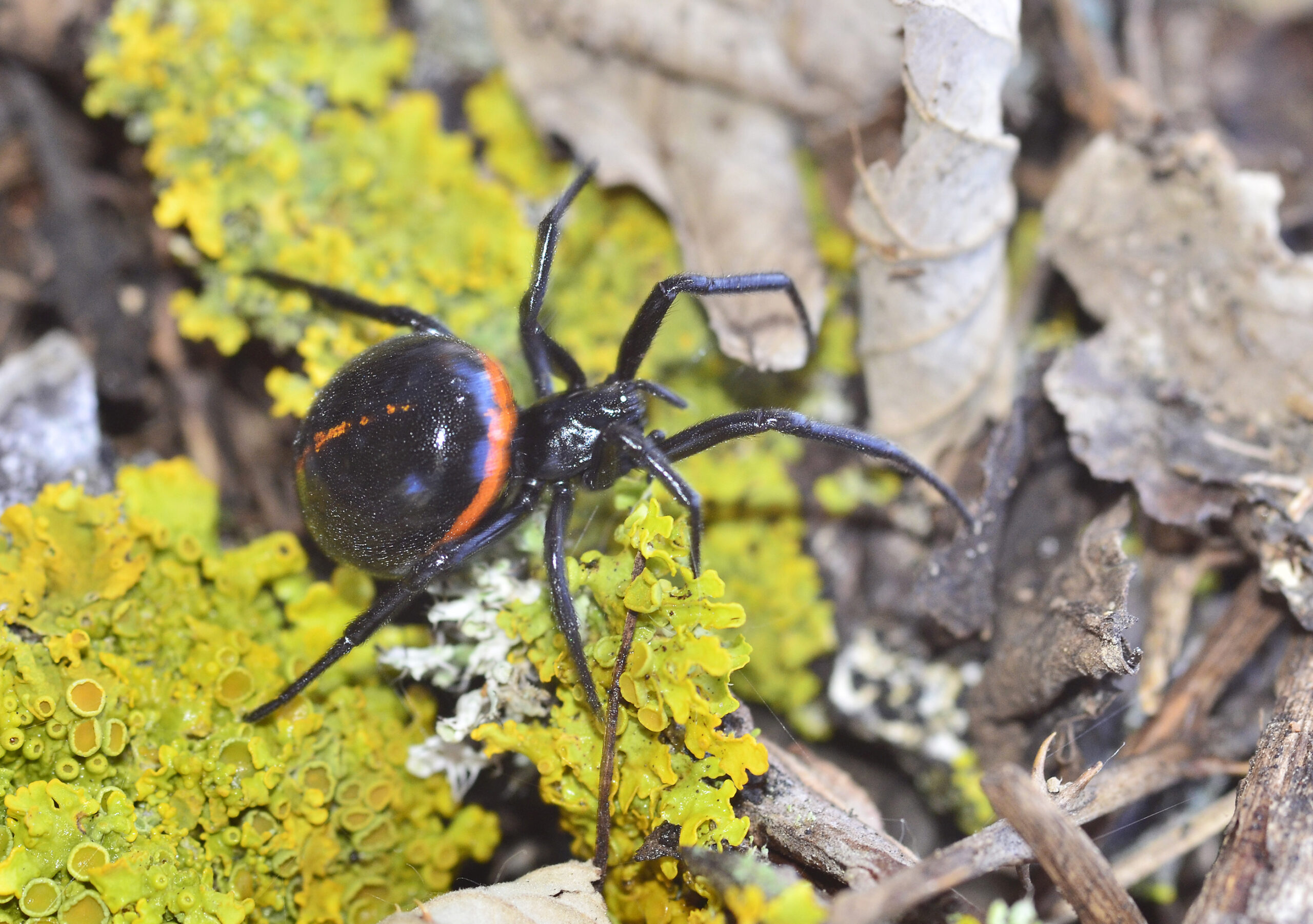 Viuda negra (Latrodectus tredecimguttatus), zona ventral. Paraje de San Bartolomé, Villahermosa del Río (Castellón). España.
