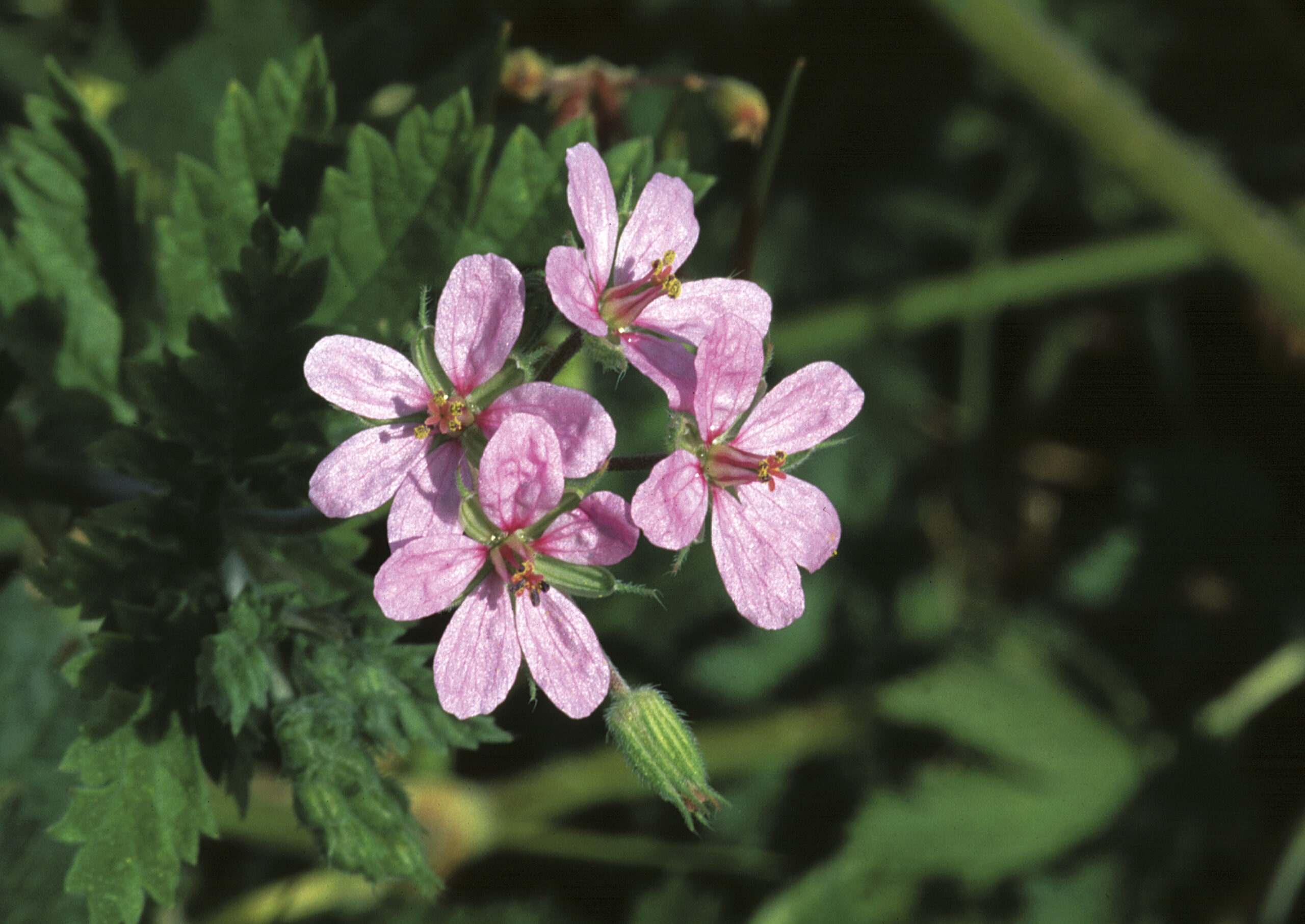 Alfilerillos de la bruja (Erodium cicutarium). Paisaje Protegido de la Desembocadura del río Millars, Vila-real (Castellón). España.
