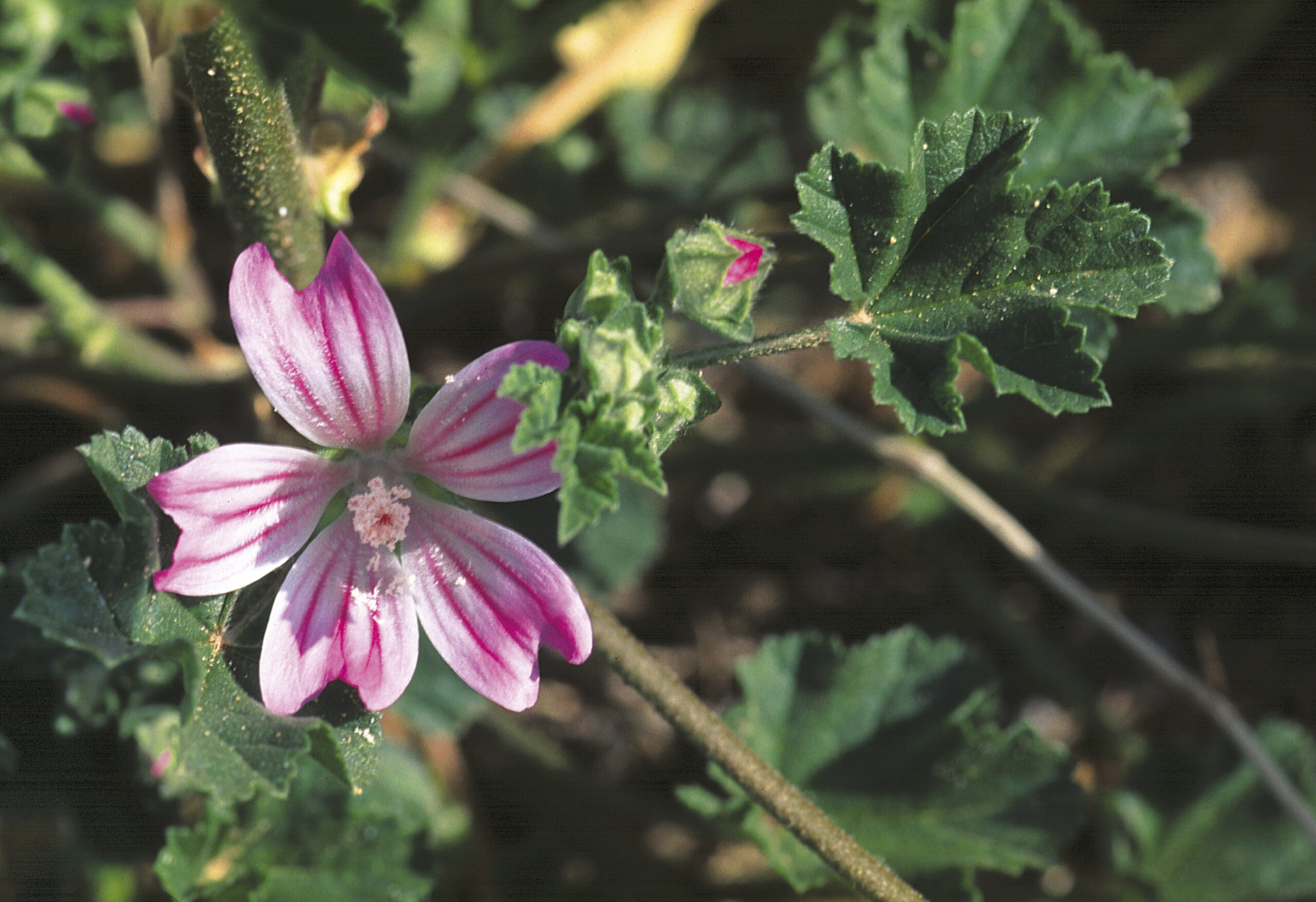 Malva común o grande (Malva sylvestris) . Paisaje Protegido de la Desembocadura del río Millars, Vila-real (Castellón). España.