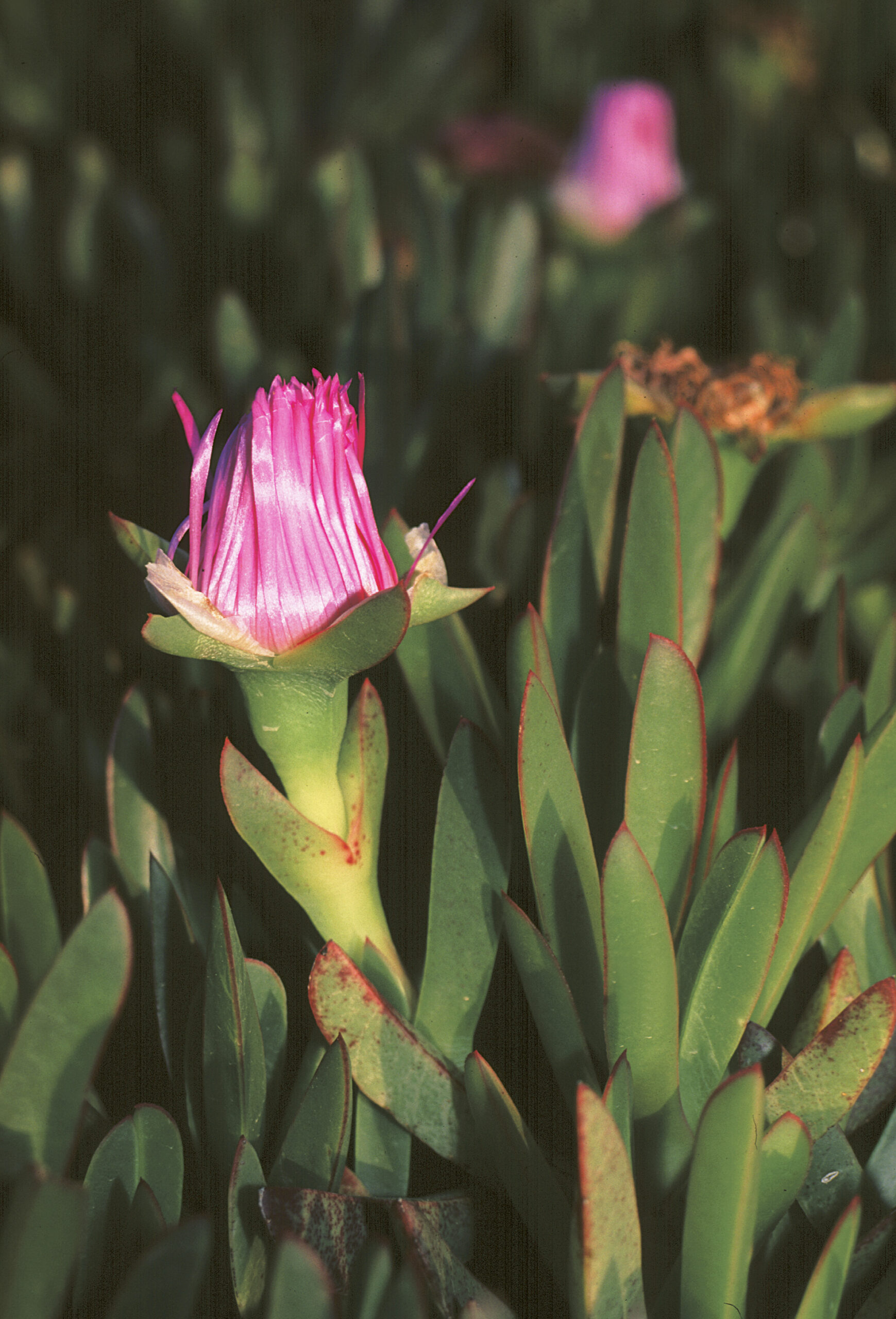 Uña de gato (Carpobrotus edulis). Paisaje Protegido de la Desembocadura del río Millars, Almazora (Castellón). España.