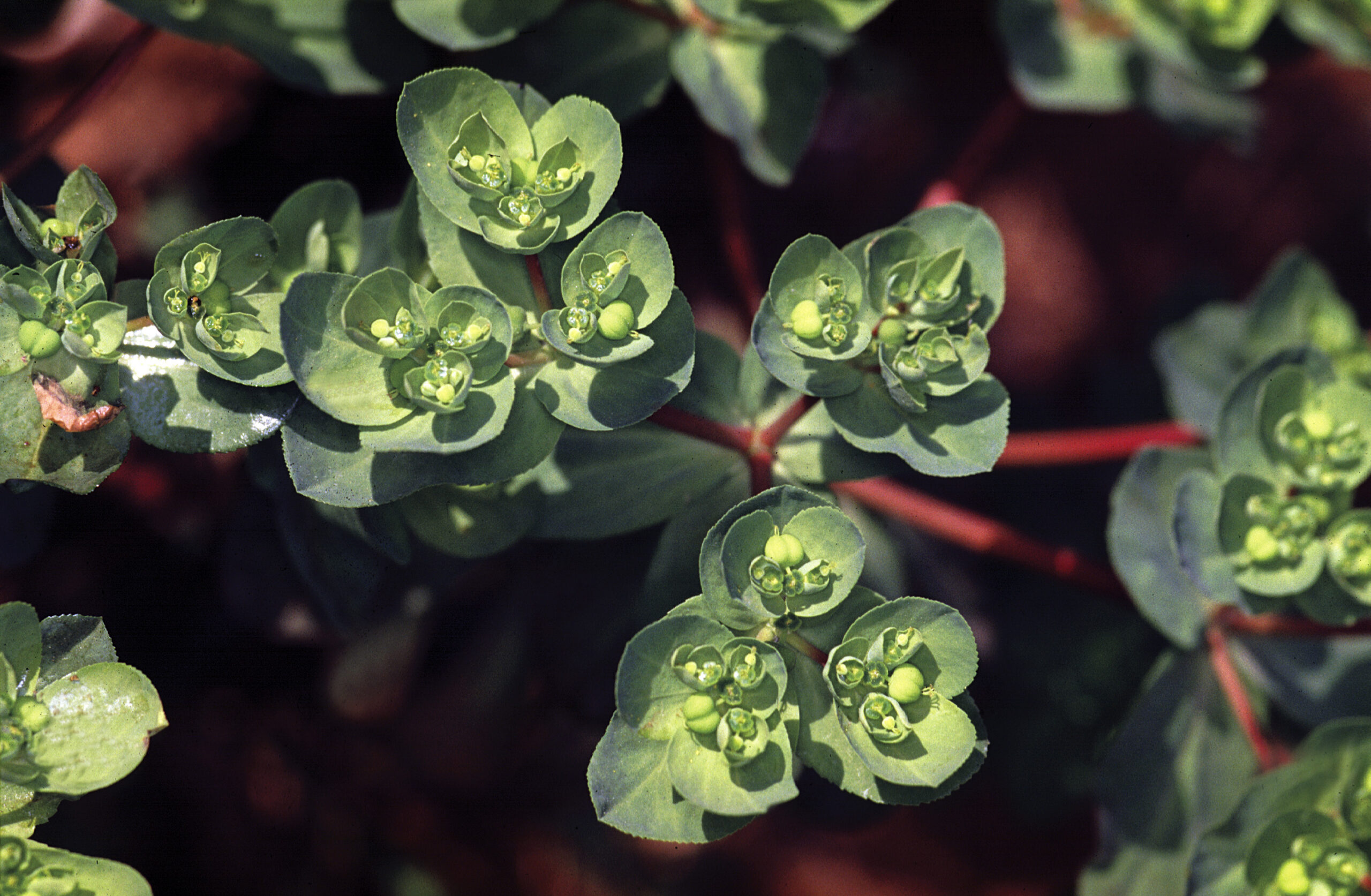 Lechetrezna girasol (Euphorbia helioscopia). Paisaje Protegido de la Desembocadura del río Millars, Burriana (Castellón). España.
