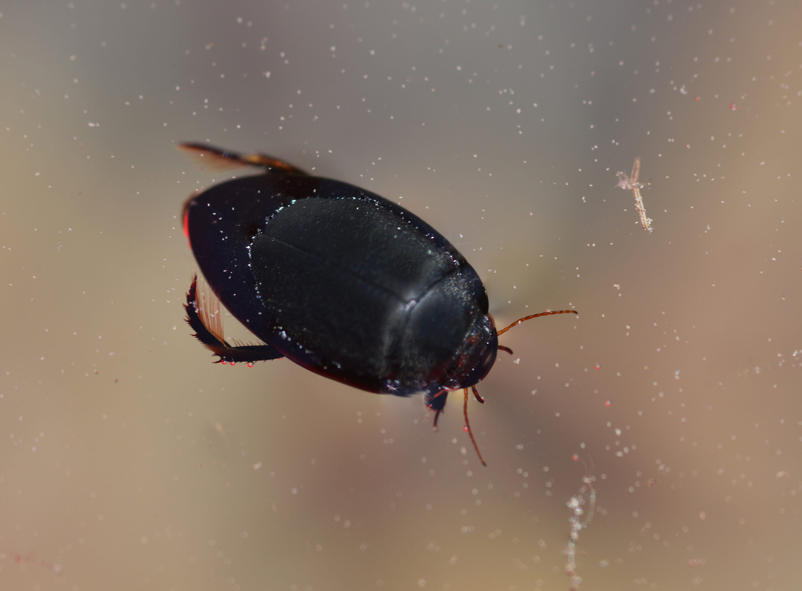 Escarabajo escribano negro (Agabus bipustulatus). Paisaje Protegido de la Desembocadura del río Millars, Vila-real (Castellón). España.