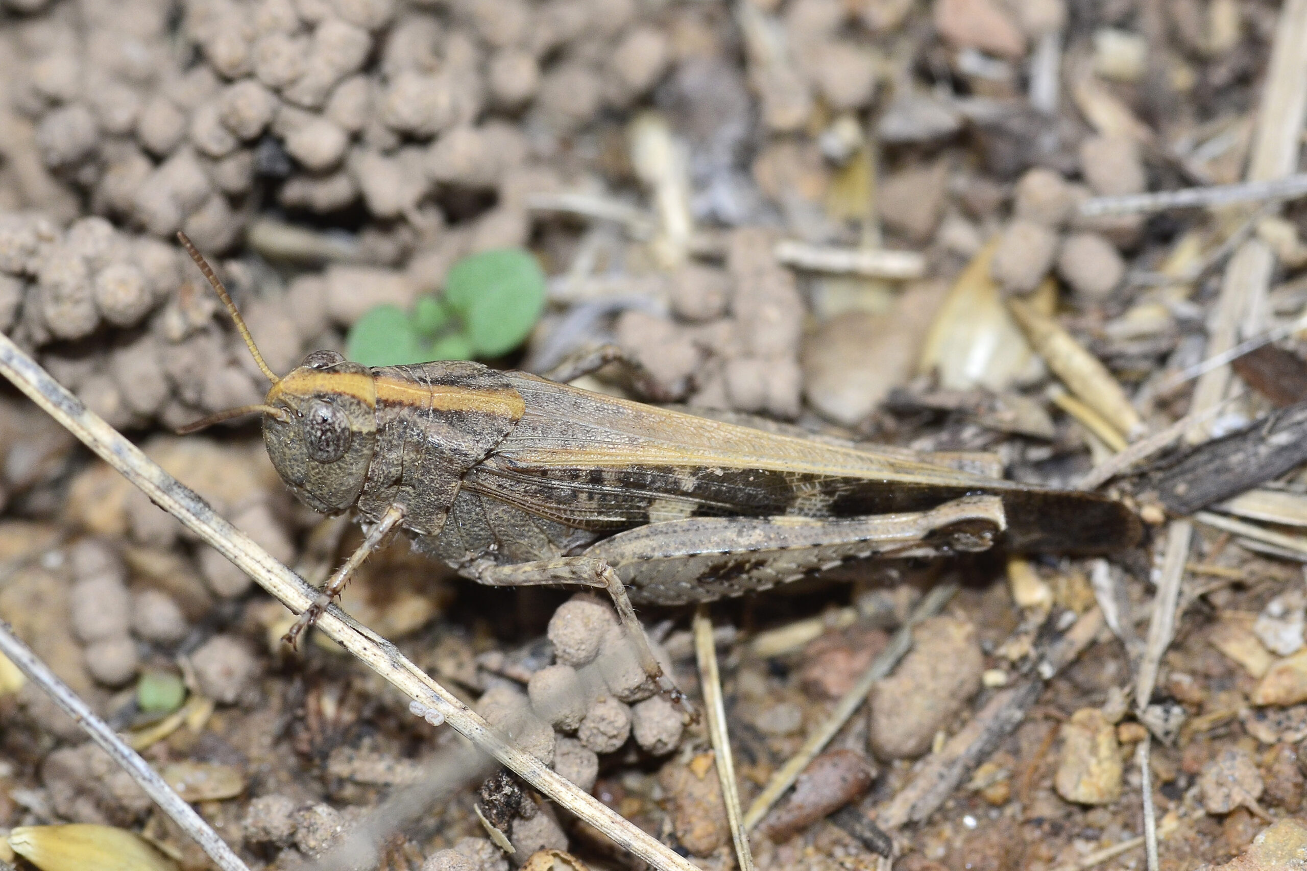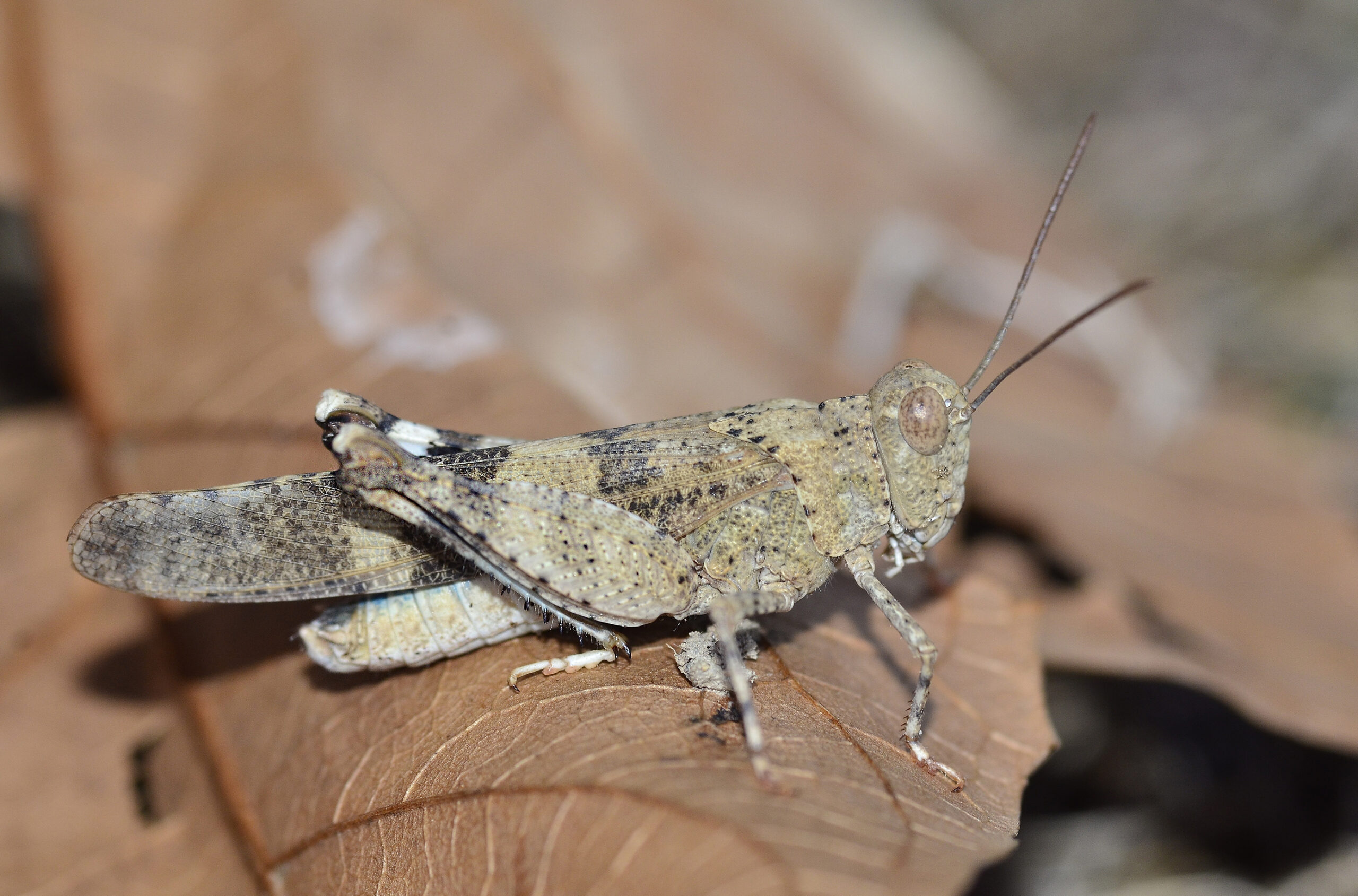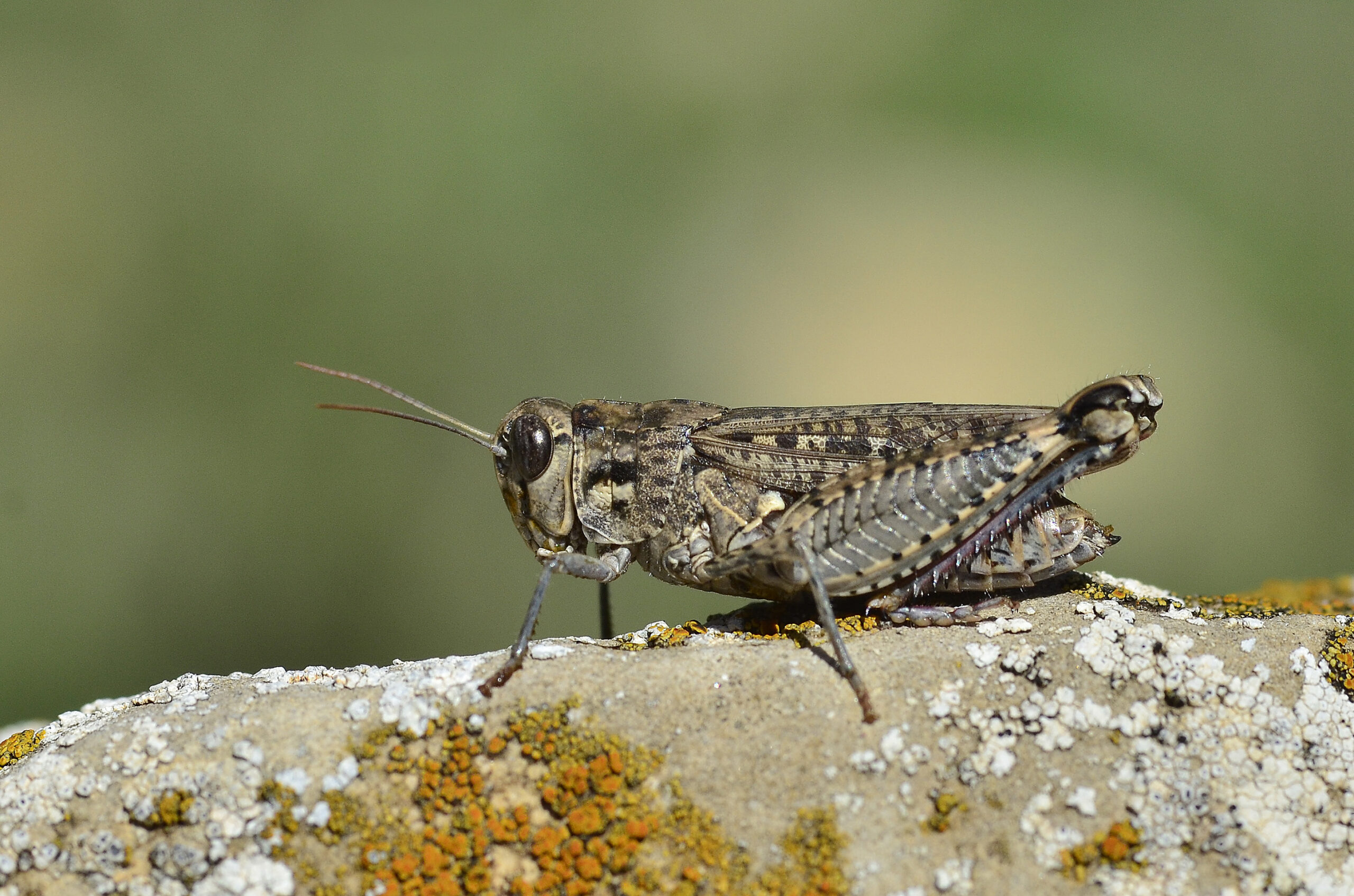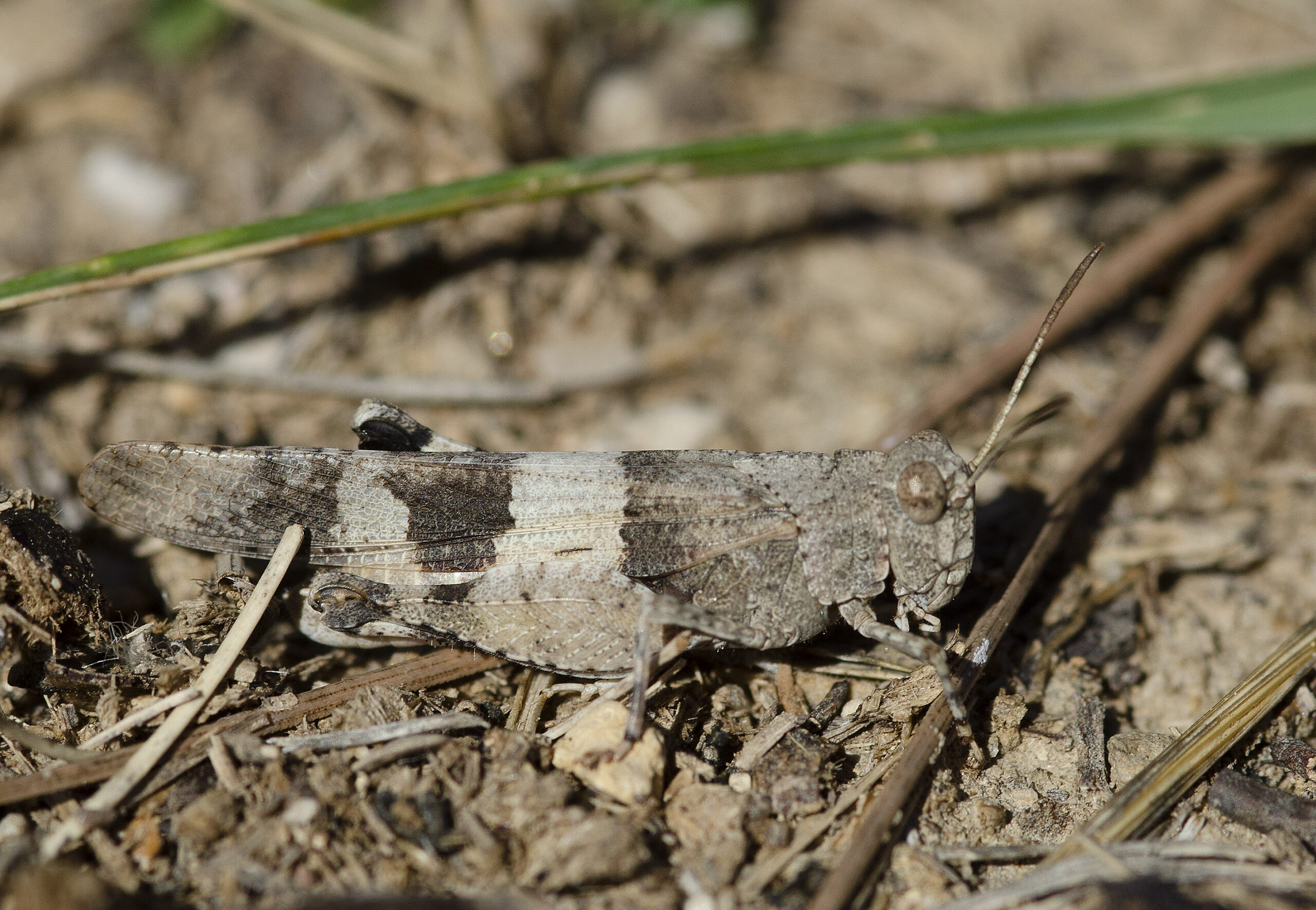 Saltamontes de las gramíneas (Aiolopus strepens). Parque Natural del Peñagolosa, Villahermosa del Río (Castellón). España.