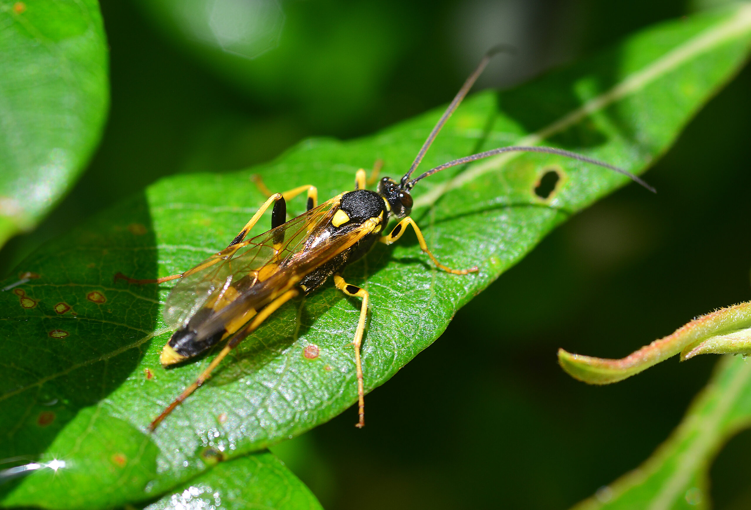 Avispa parásita de la polilla (Amblyteles armatorius). Parque Natural del Peñagolosa, Villahermosa del Río (Castellón). España.