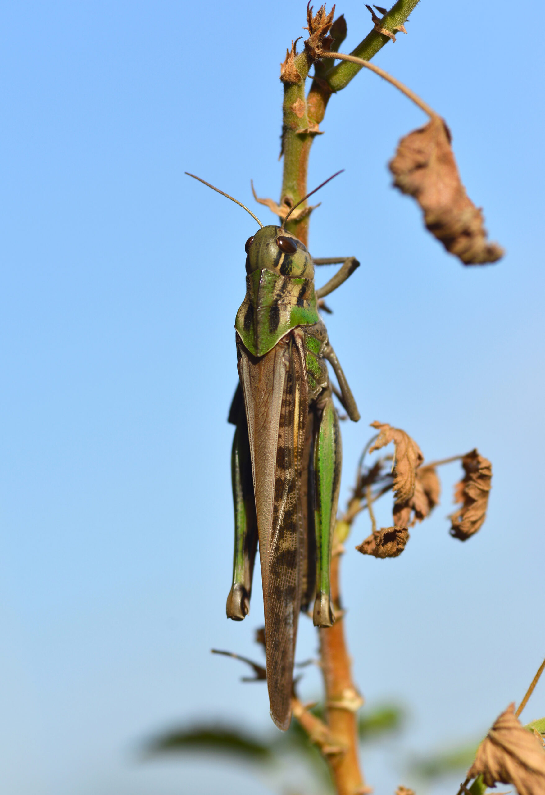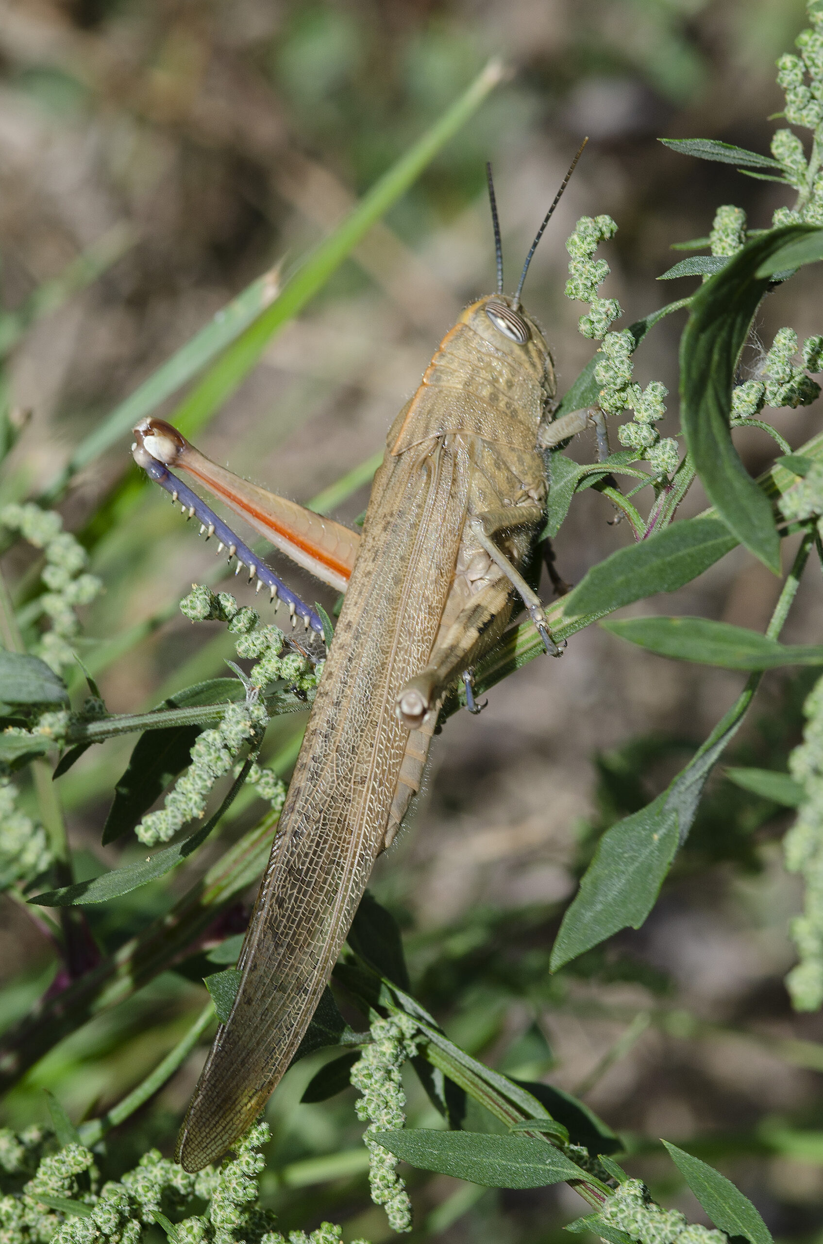 Saltamontes langosta migratoria (Locusta migratoria). Paraje Protegido de la desembocadura del río Millars, Vila-real (Castellón). España.