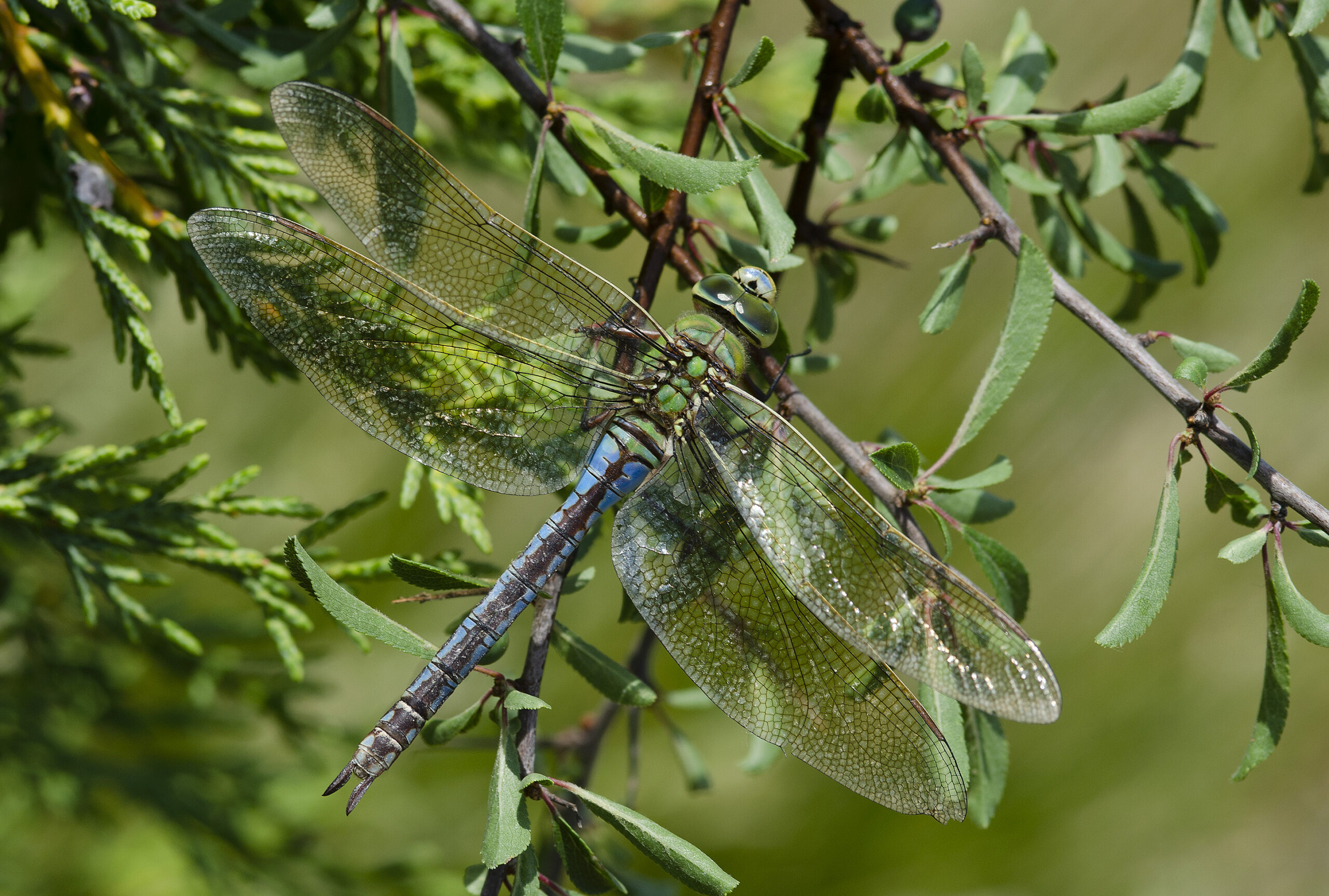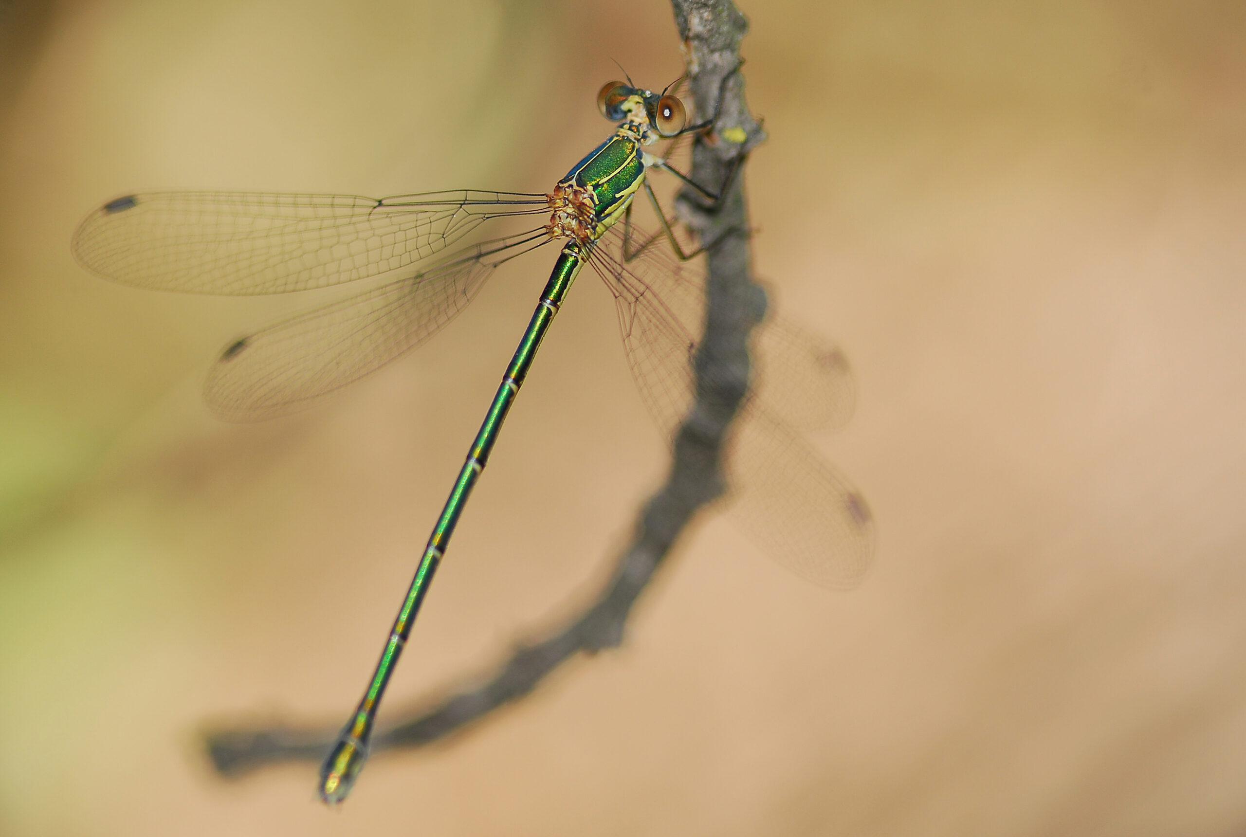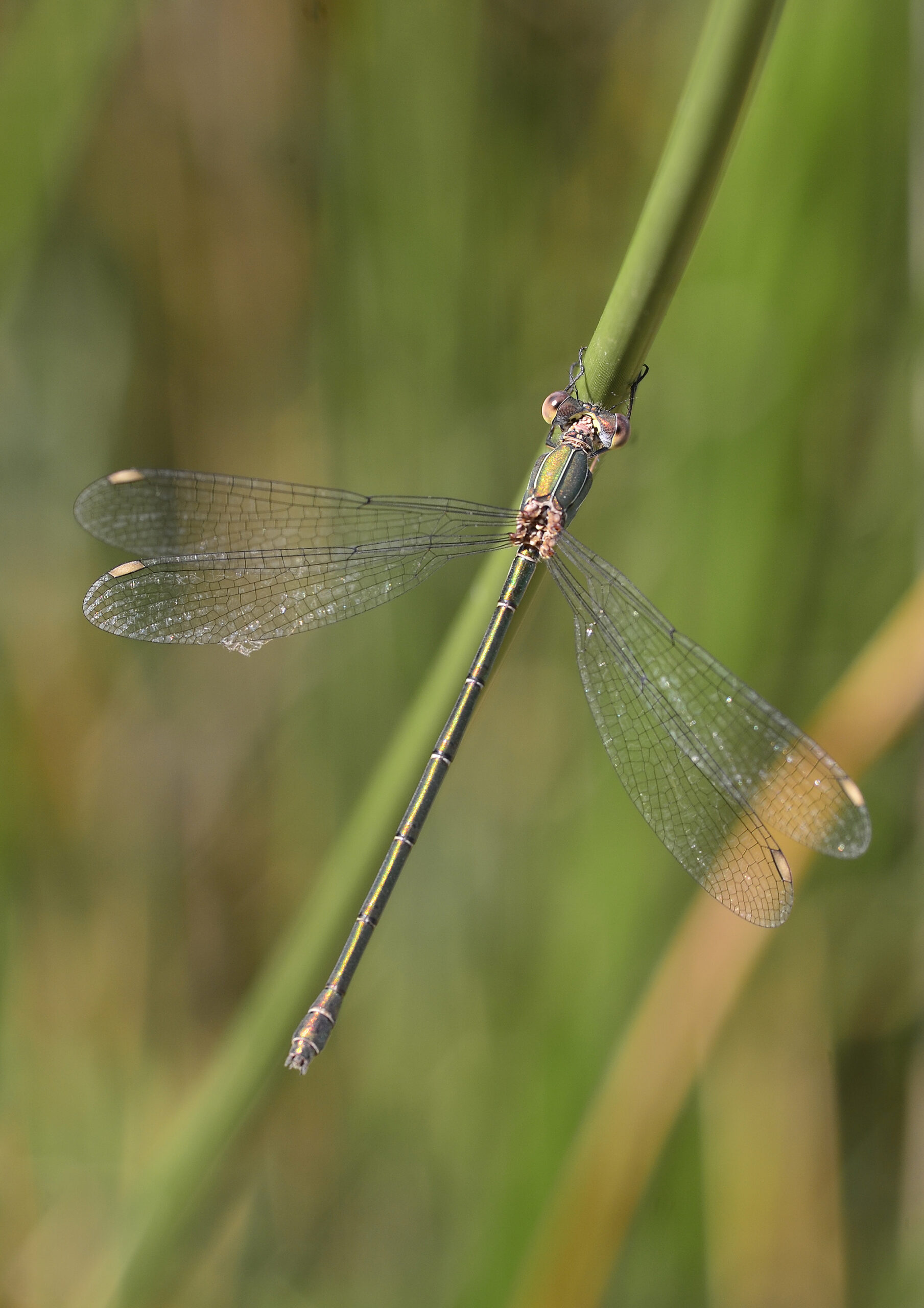 Caballito verde esmeralda (Chalcolestes viridis), macho. Parque Natural del Peñagolosa, Villahermosa del Río (Castellón). España.