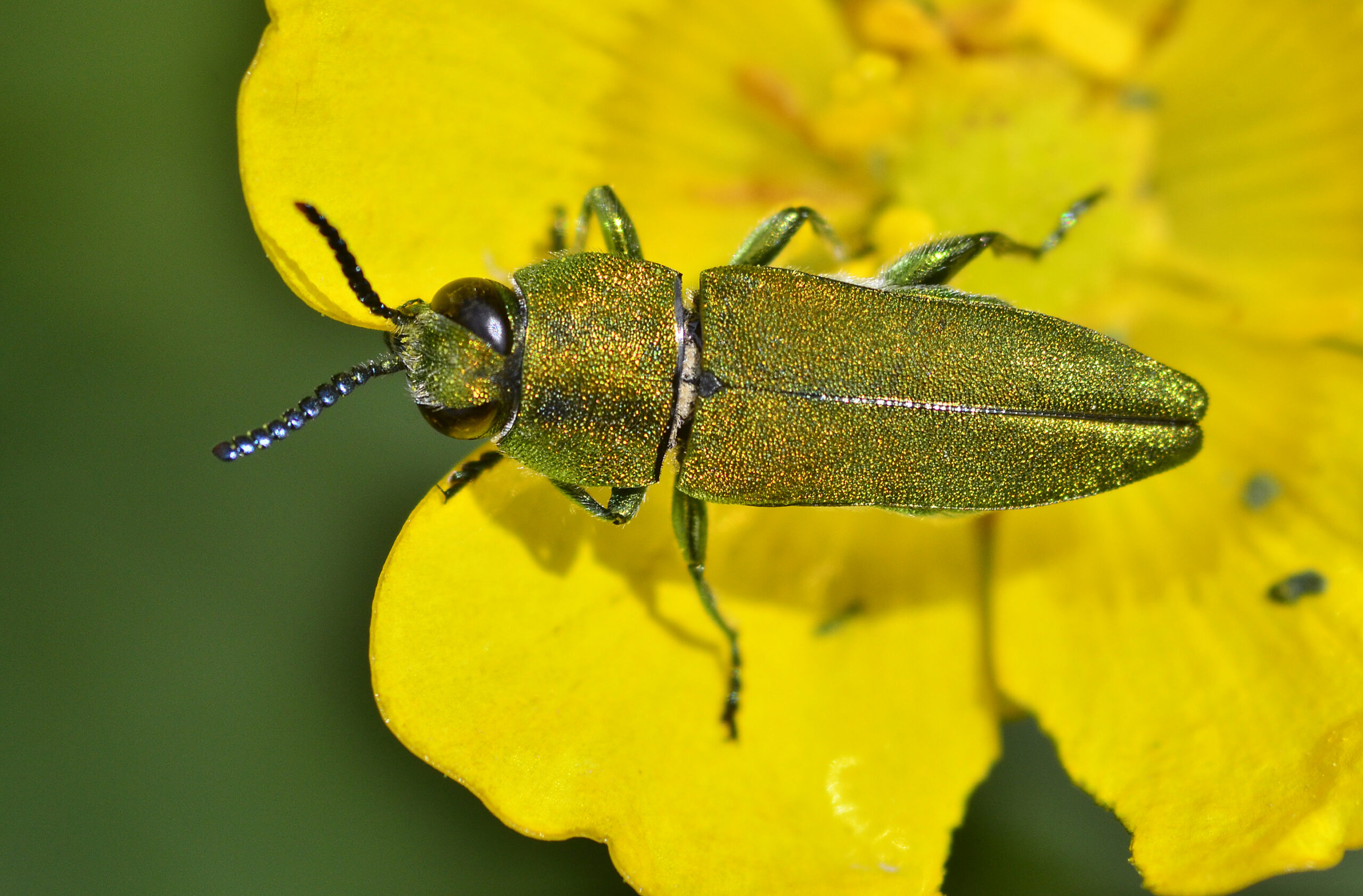 Escarabajo antaxia de los robles (Anthaxia hungarica), macho. Parque Natural del Peñagolosa, Villahermosa del Río (Castellón). España.