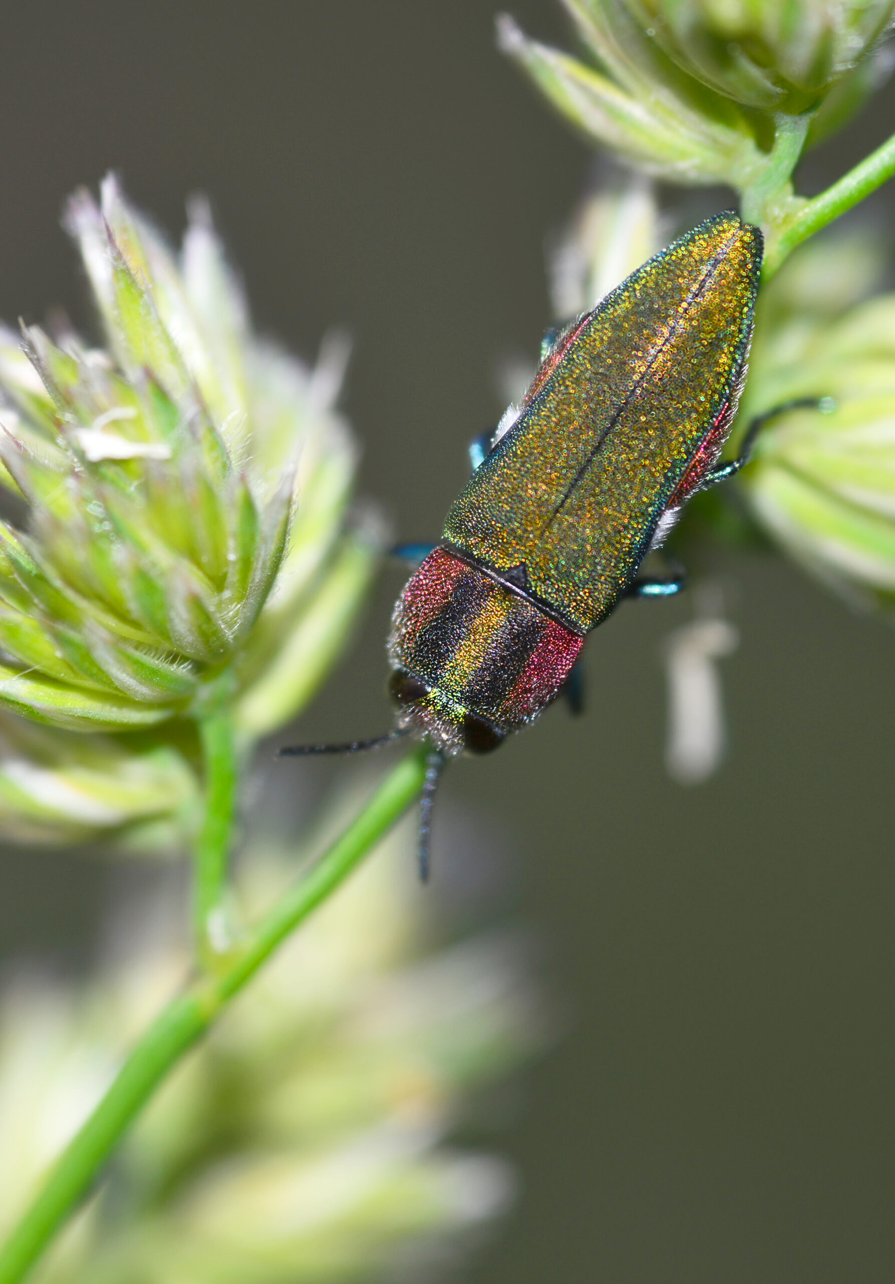 Escarabajo antaxia de los robles (Anthaxia hungarica), hembra. Parque Natural del Peñagolosa, Villahermosa del Río (Castellón). España.