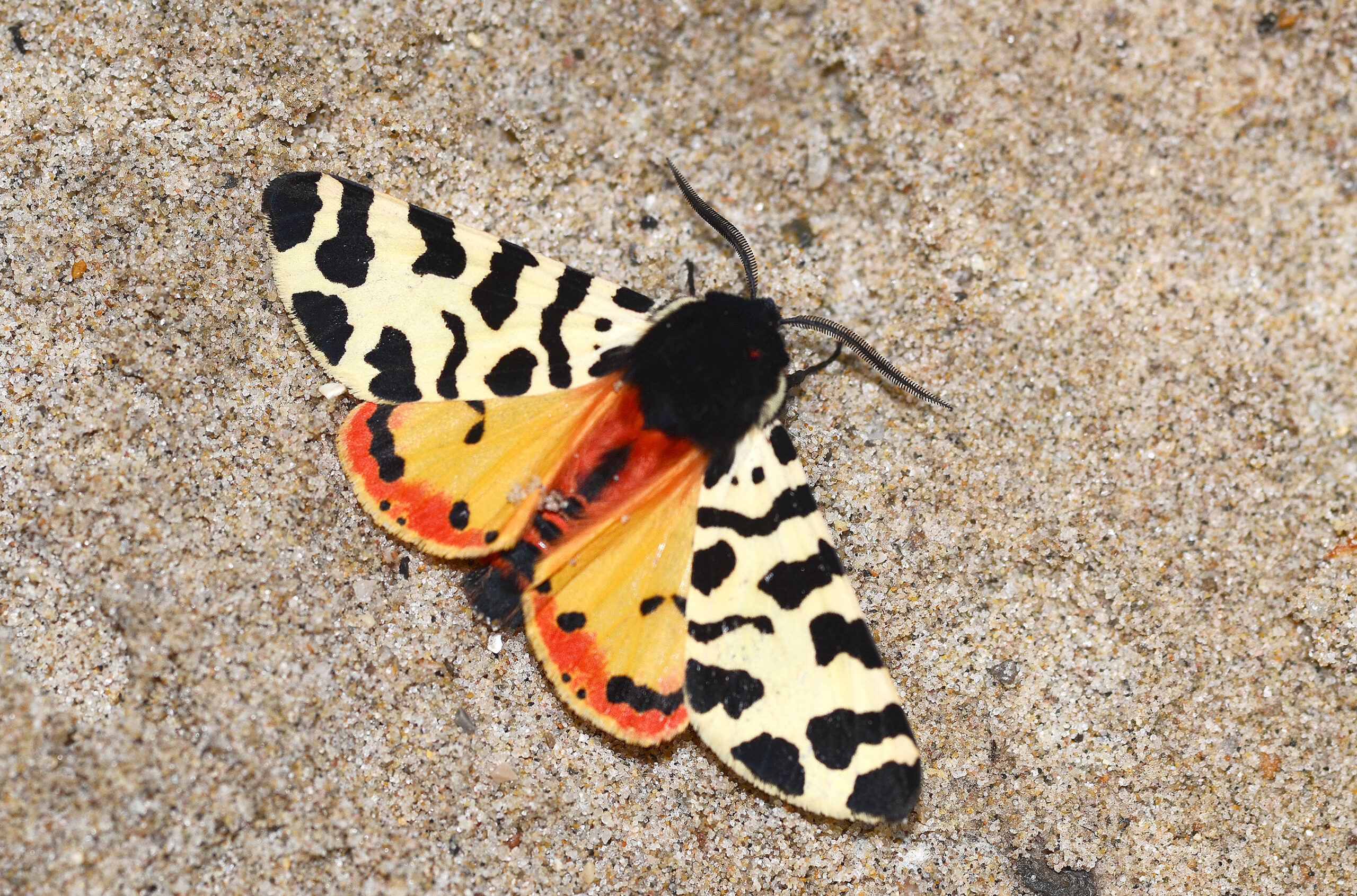 Mariposa polilla del plantago (Ocnogyna zoraida). Arroyo de San Bartolomé, Villahermosa del Río (Castellón). España.