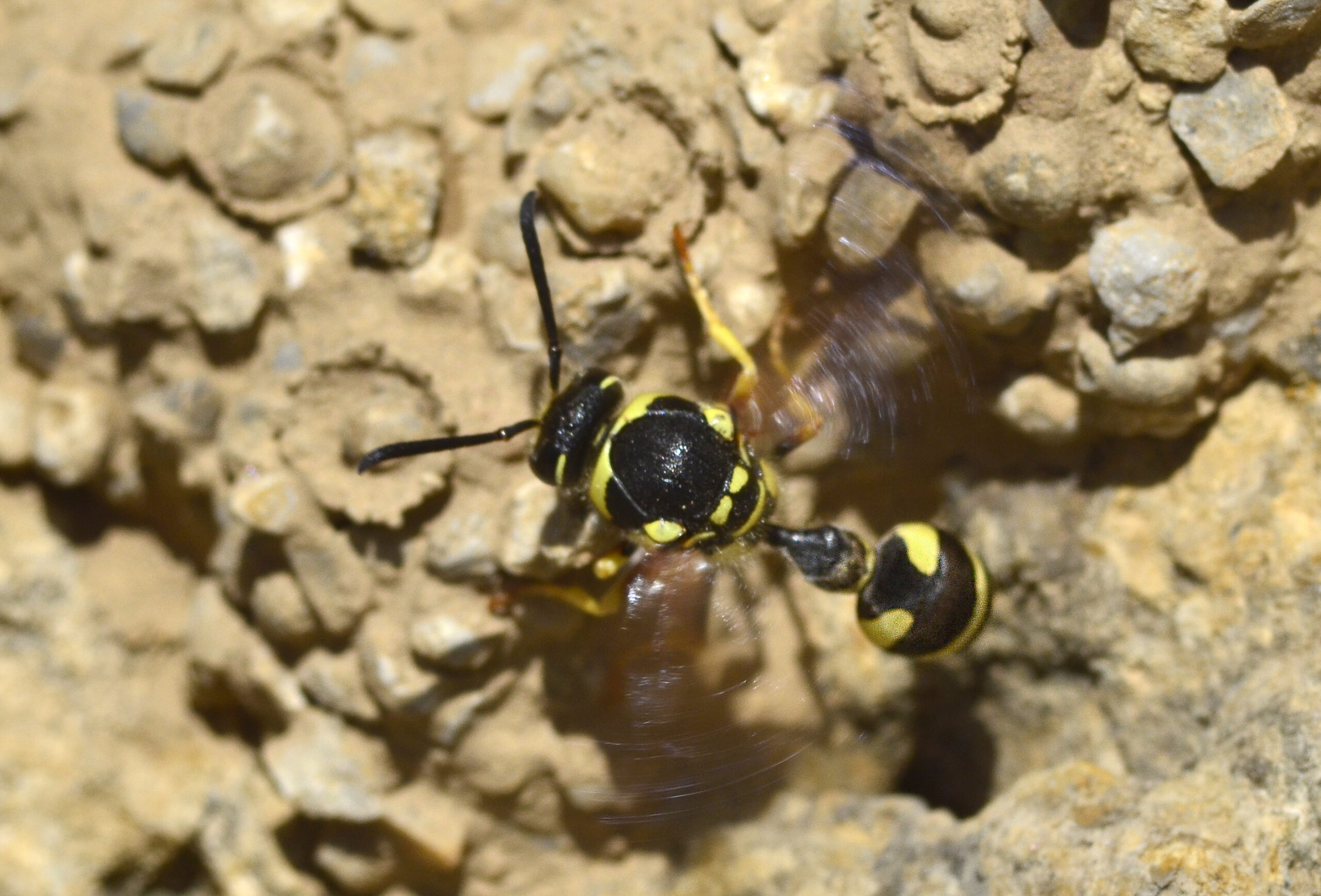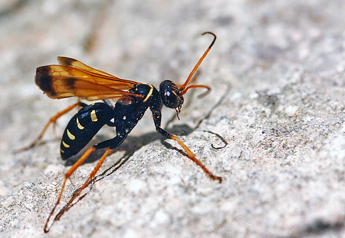 Avispa cazadora de arañas (Batozonellus lacerticida). Paraje del Termet, Vila-real (Castellón). España.