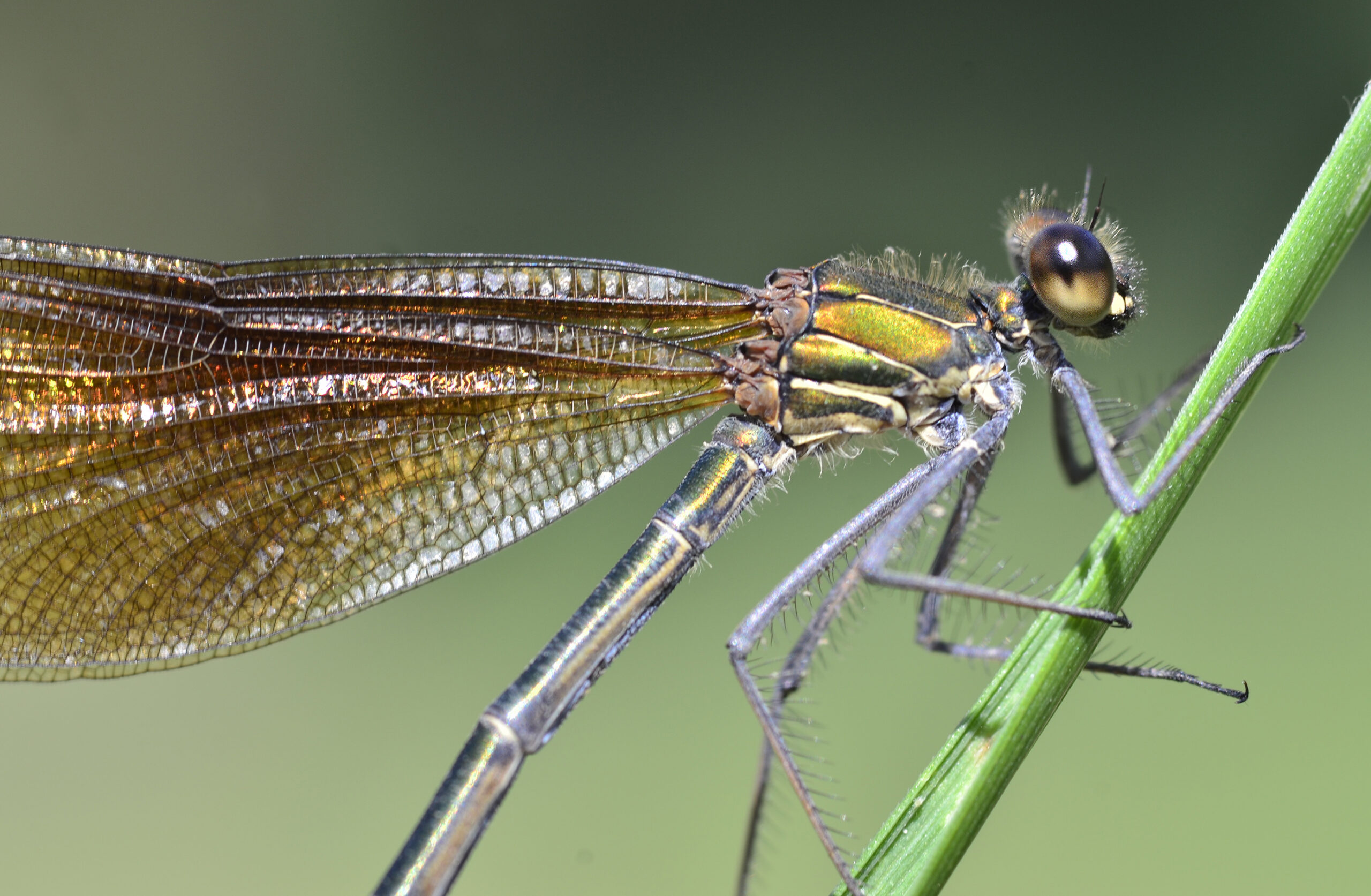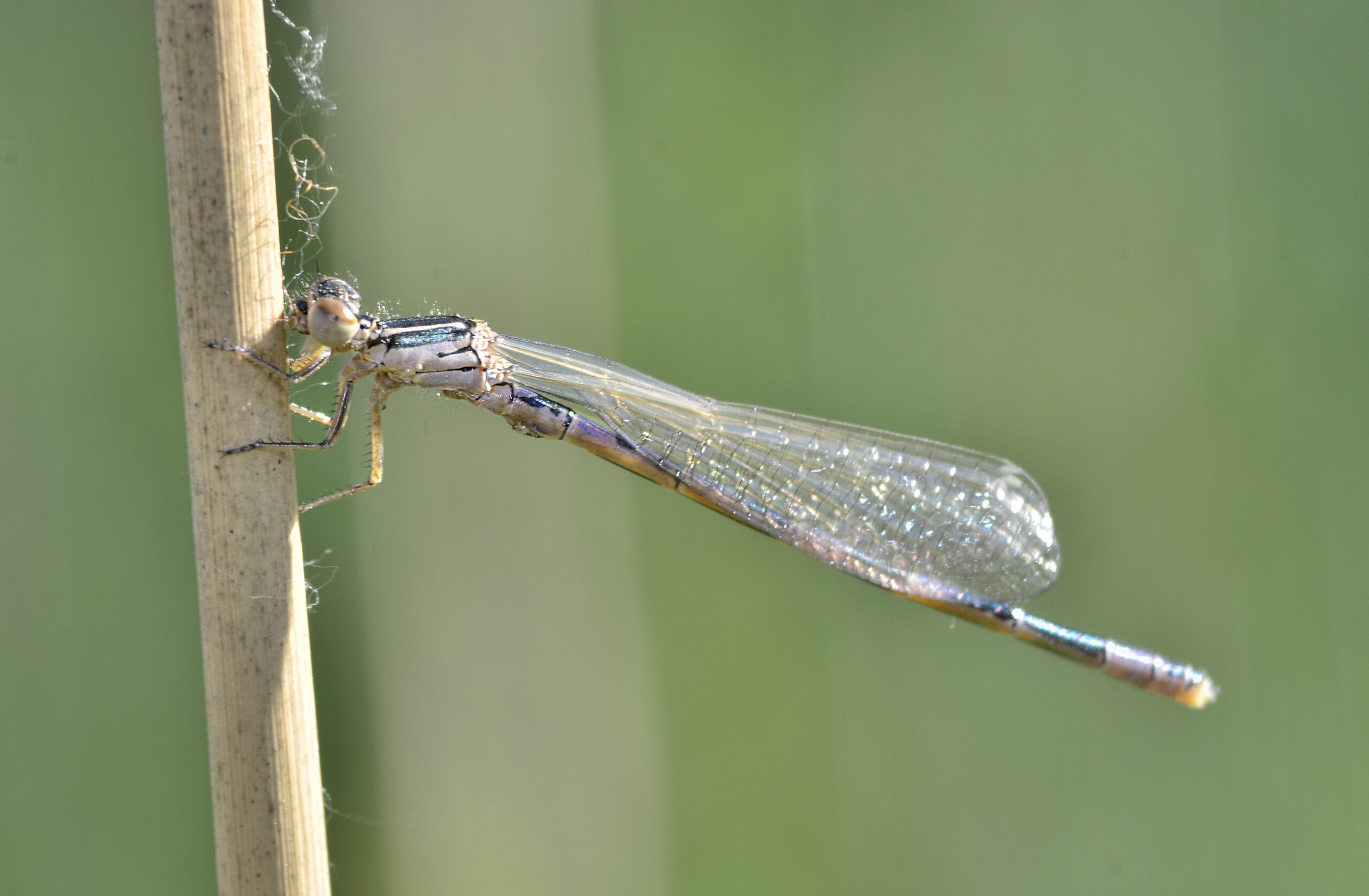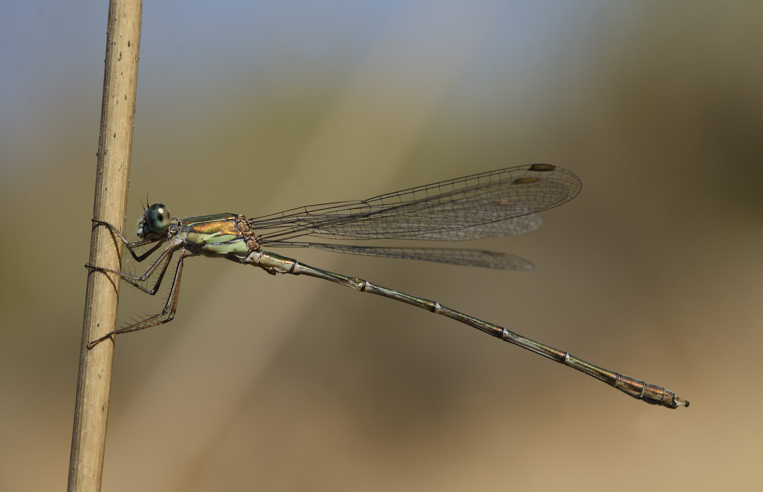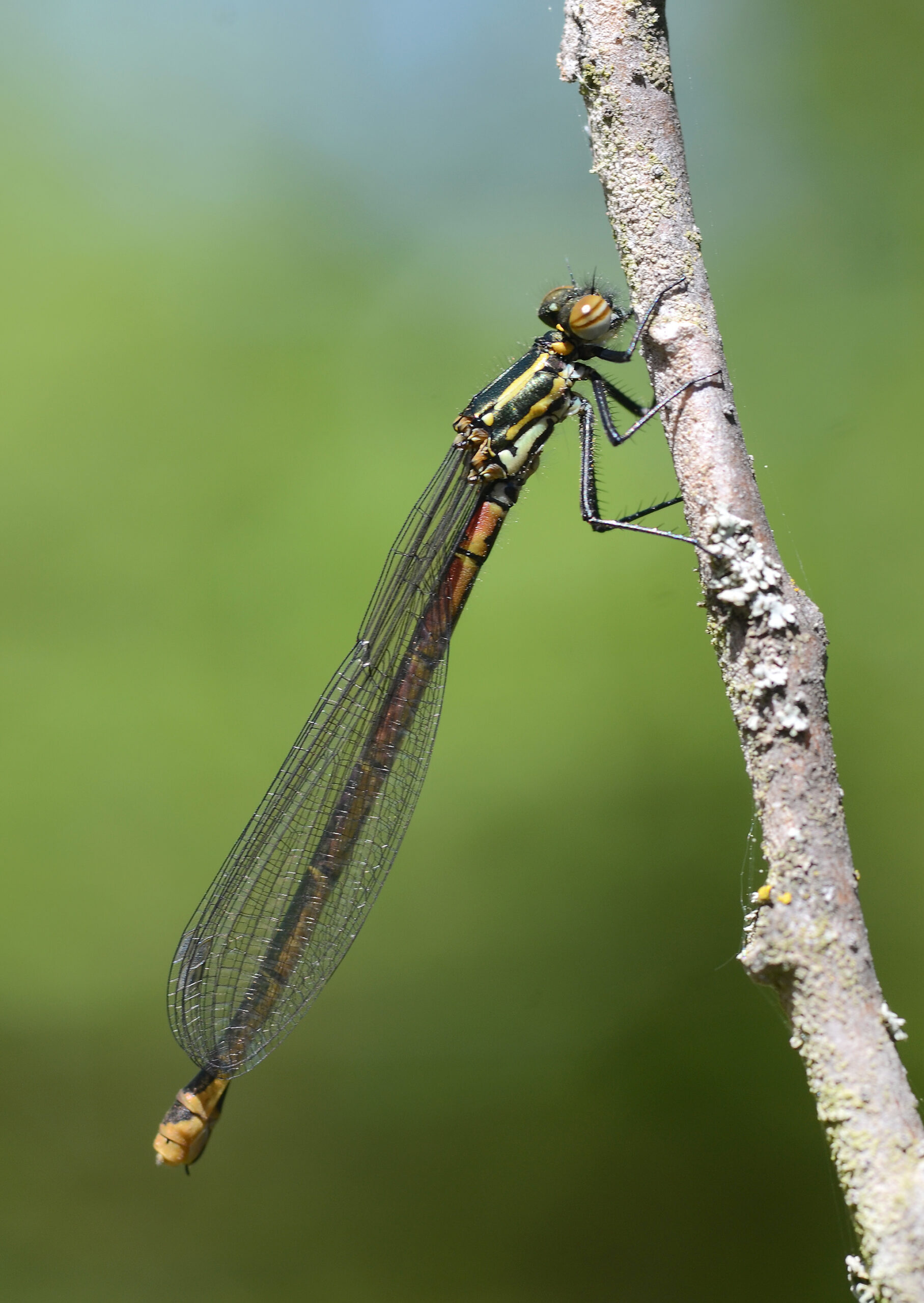 Caballito verde esmeralda (Chalcolestes viridis), hembra. Parque Natural del Peñagolosa, Villahermosa del Río (Castellón). España.