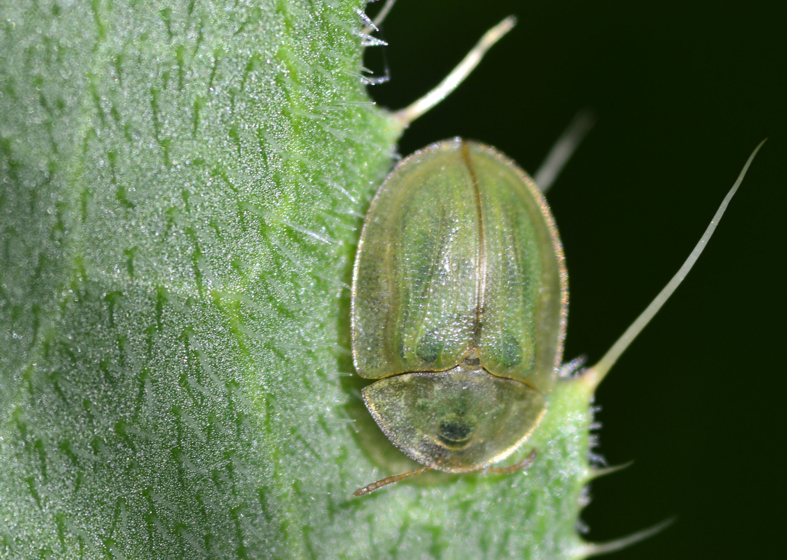 Escarabajo cásida de la alcachofa (Cassida deflorata). Parque Natural del Peñagolosa, Villahermosa del Río (Castellón). España.