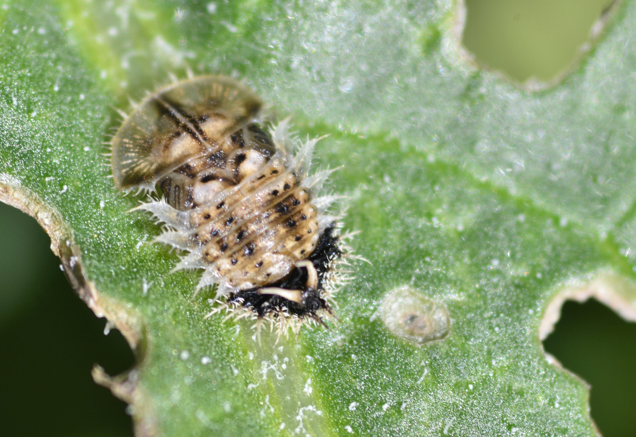 Escarabajo cásida de la alcachofa (Cassida deflorata), larva. Parque Natural del Peñagolosa, Villahermosa del Río (Castellón). España.