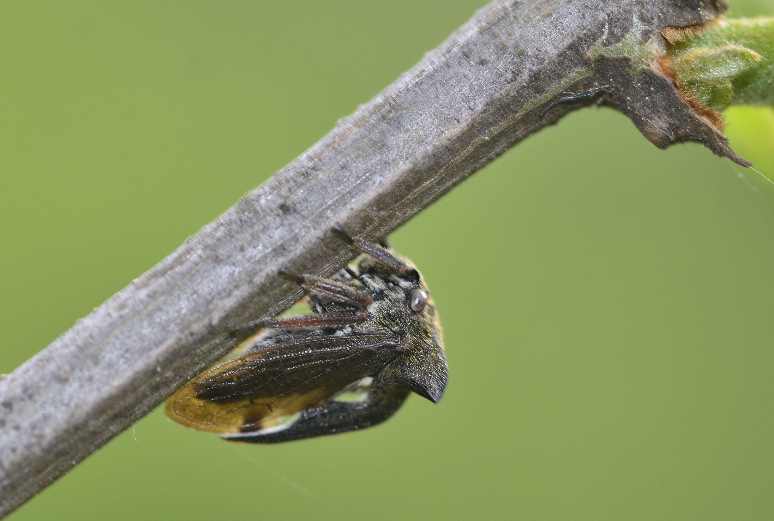 Chinche cornuda del torbisco (Centrotus cornutus). Arroyo de San Bartolomé, Villahermosa del Río (Castellón). España.