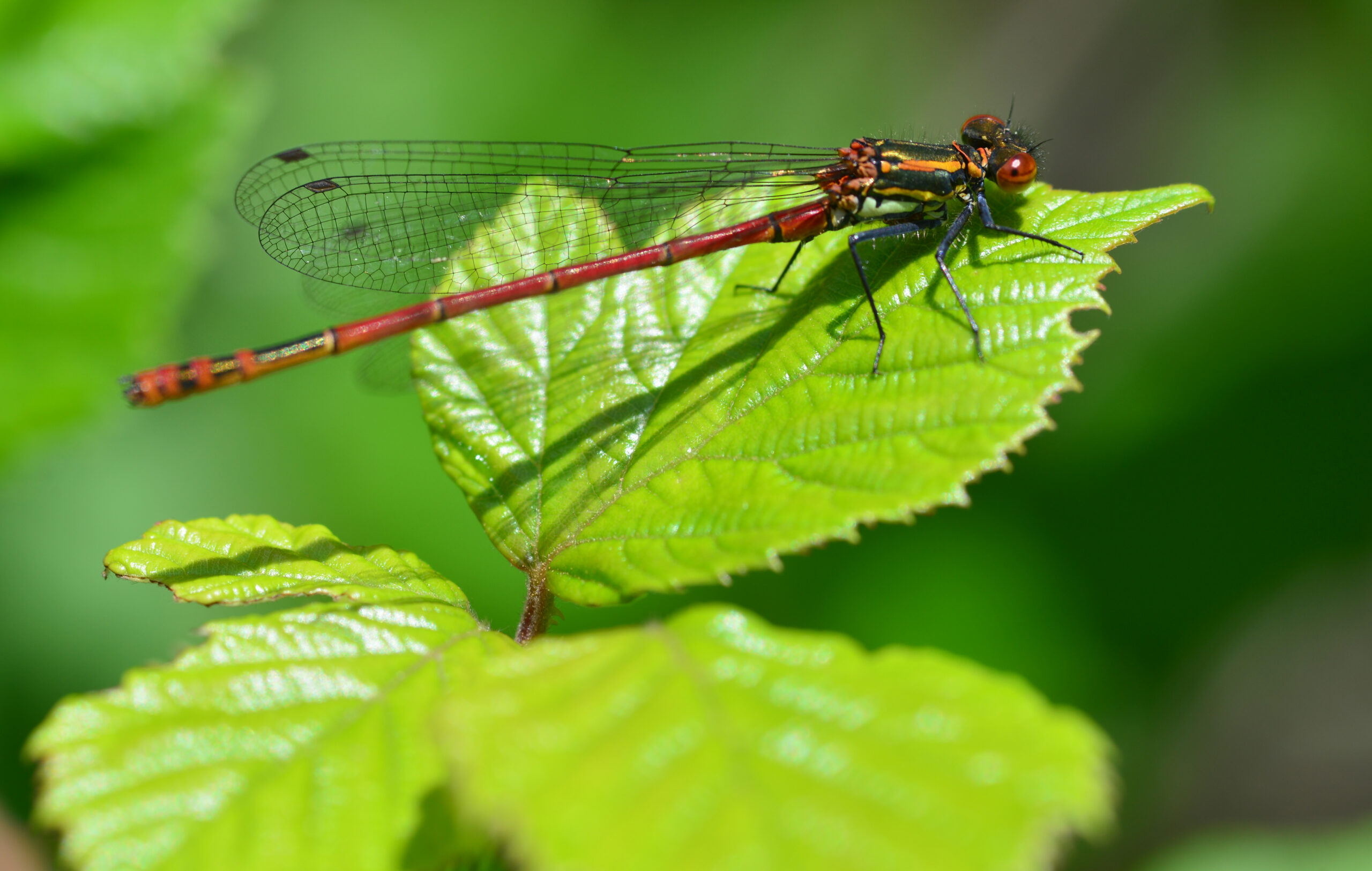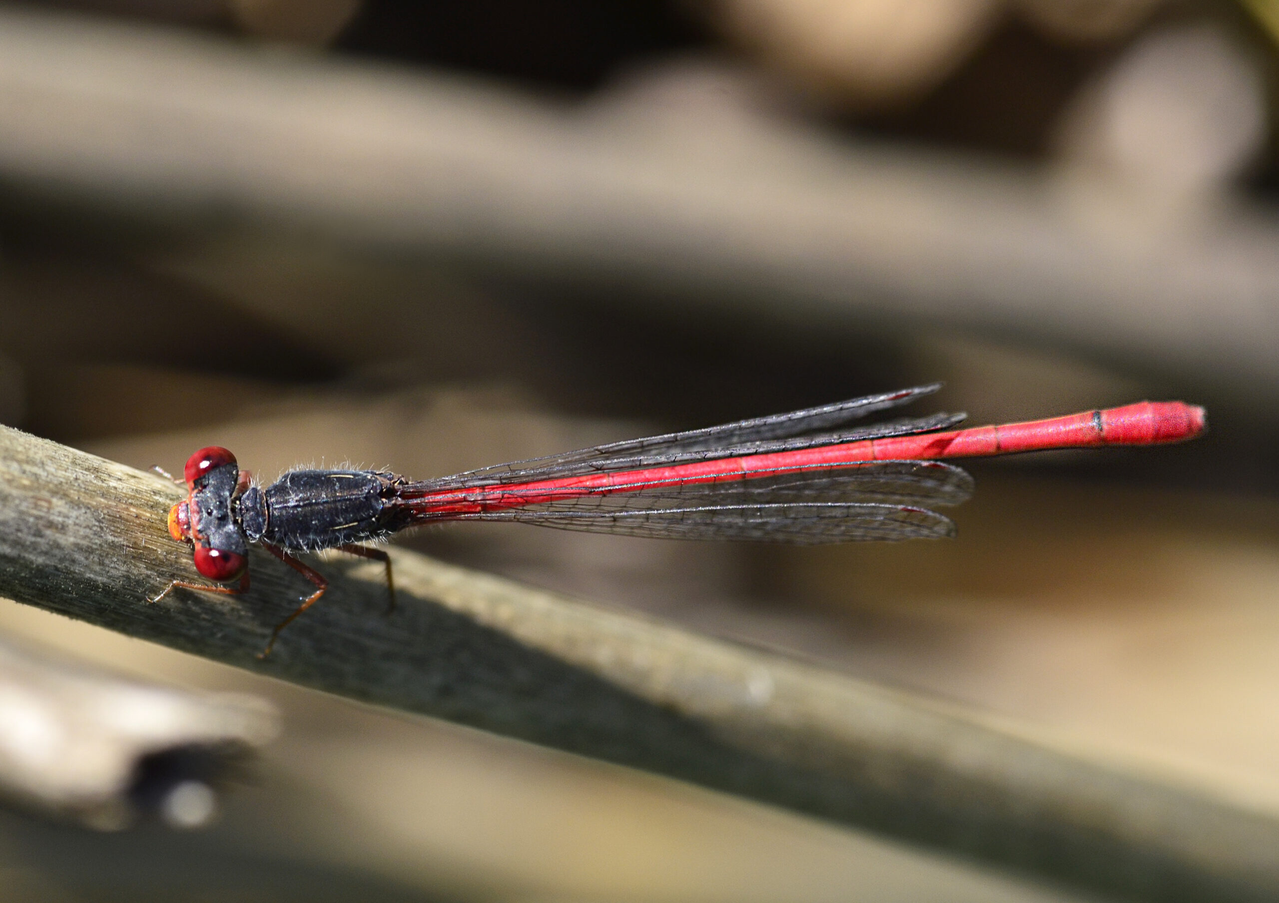 Caballito ferroso de patas negras (Pyrrhosoma nymphula). Parque Natural del Peñagolosa, Villahermosa del Río (Castellón). España.