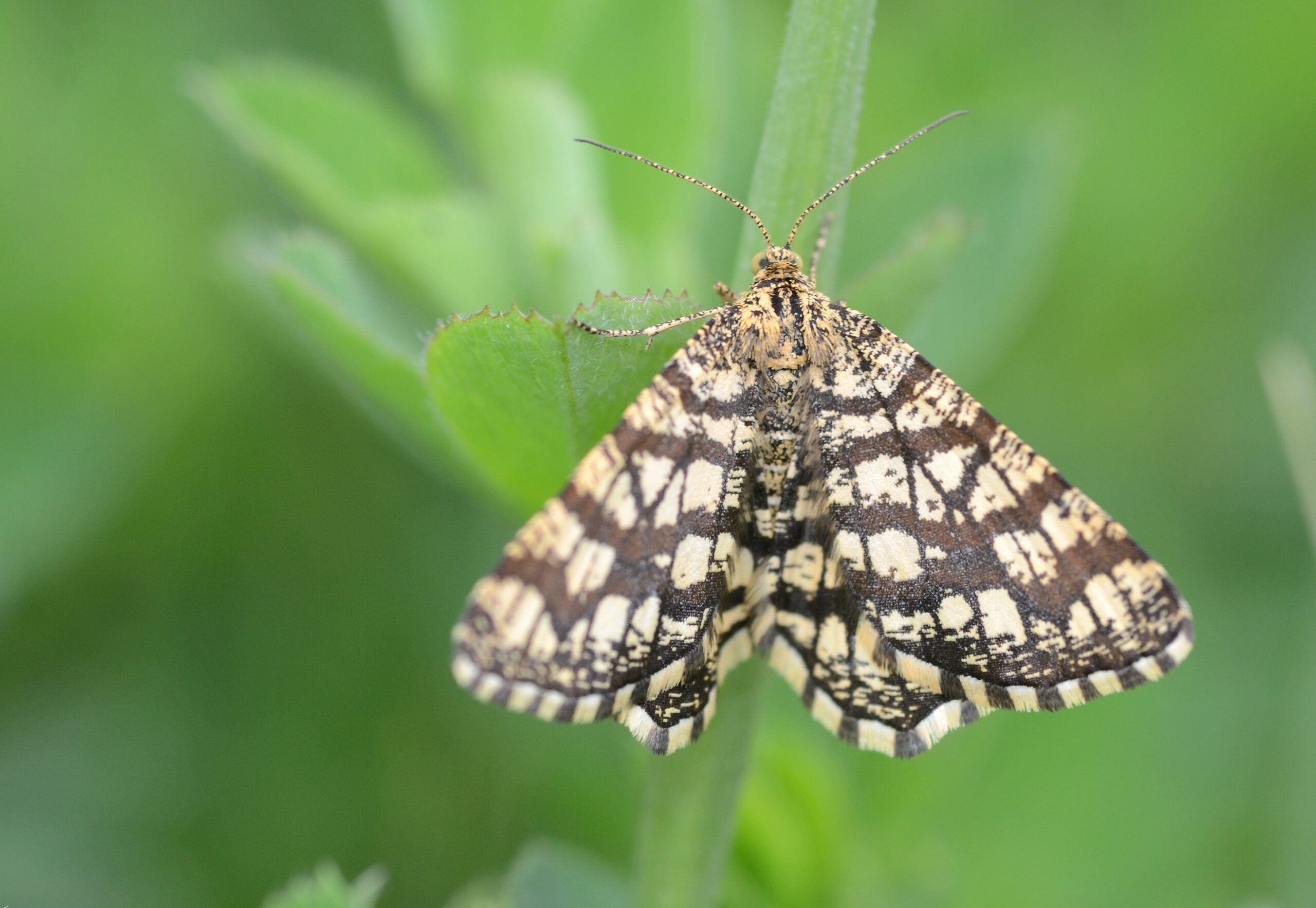 Mariposa polilla reticulada (Chiasmia clathrata). Parque Natural del Peñagolosa, Villahermosa del Río (Castellón). España.