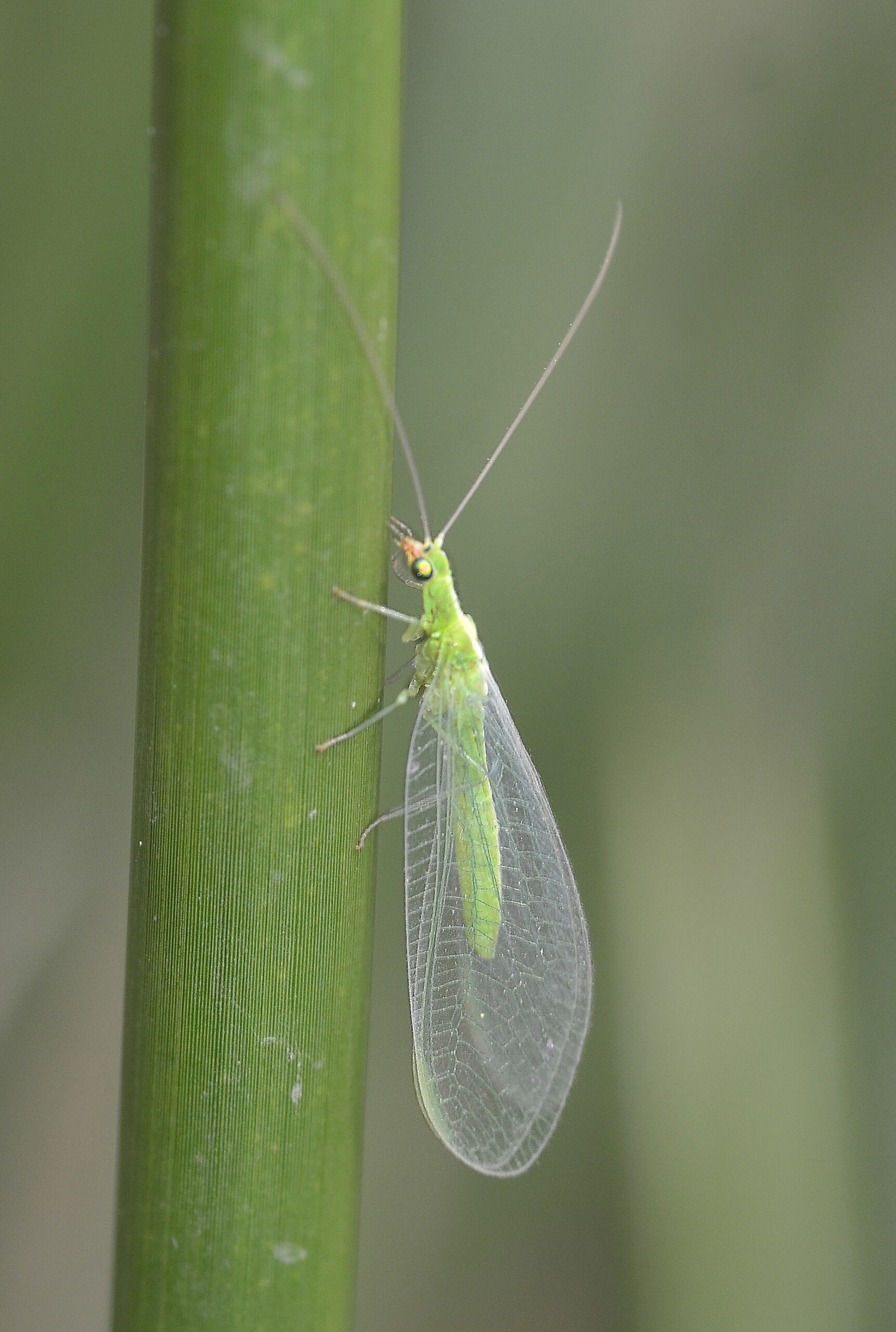 Crisopa verde mediterránea (Chrysoperla mediterranea), hembra. Parque Natural del Peñagolosa, Villahermosa del Río (Castellón). España.