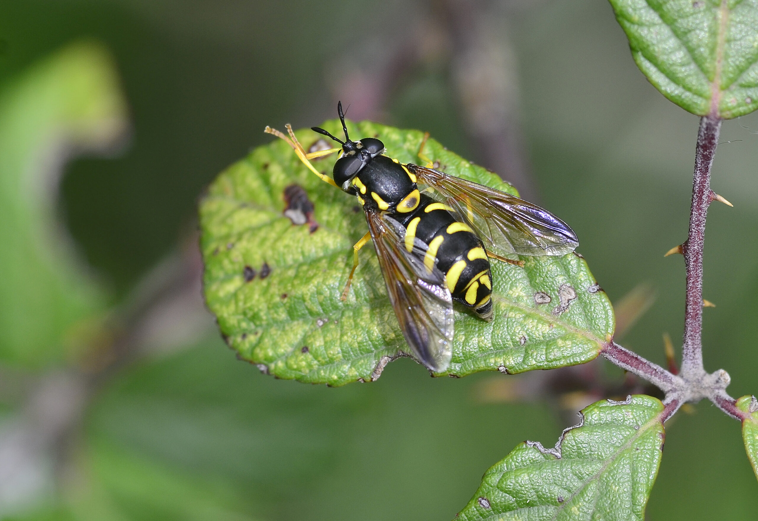 Mosca avispa de las flores (Xanthogramma pedissequum). Parque Natural del Peñagolosa, Villahermosa del Río (Castellón). España.