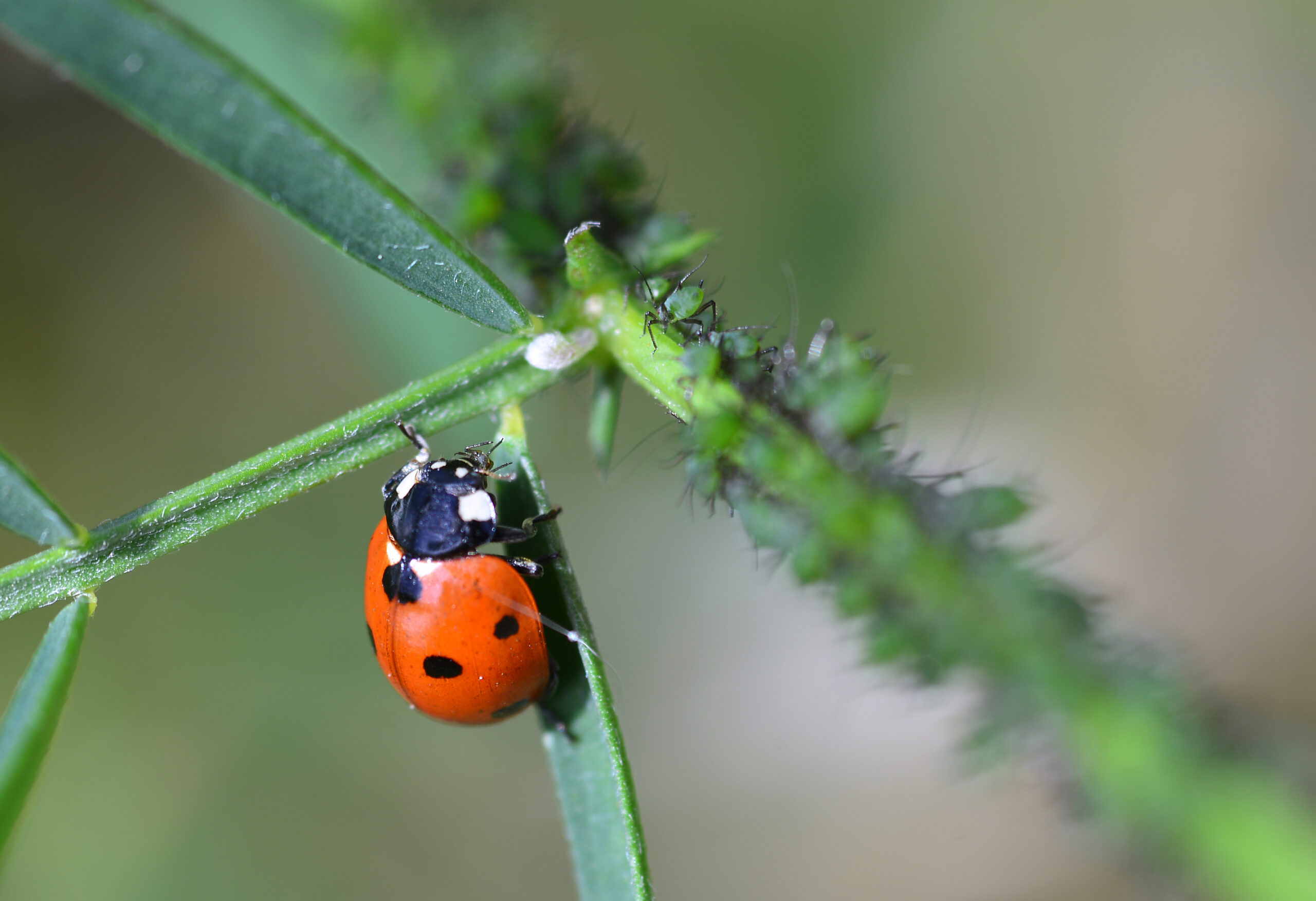 Escarabajo mariquita de siete puntos (Coccinella septempunctata). Parque Natural del Peñagolosa, Villahermosa del Río (Castellón). España.