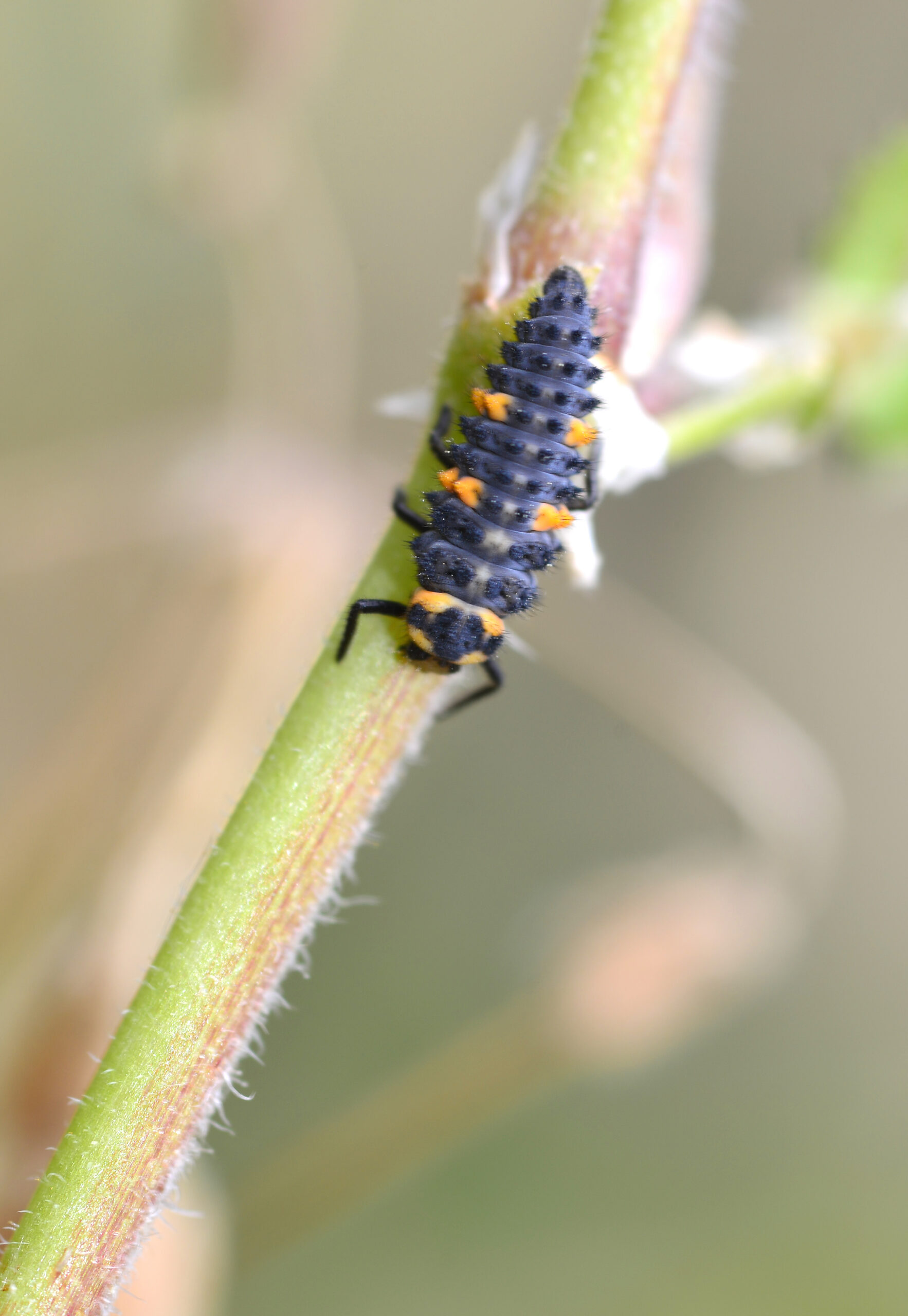 Escarabajo mariquita de siete puntos (Coccinella septempunctata), larva. Parque Natural del Peñagolosa, Villahermosa del Río (Castellón). España.