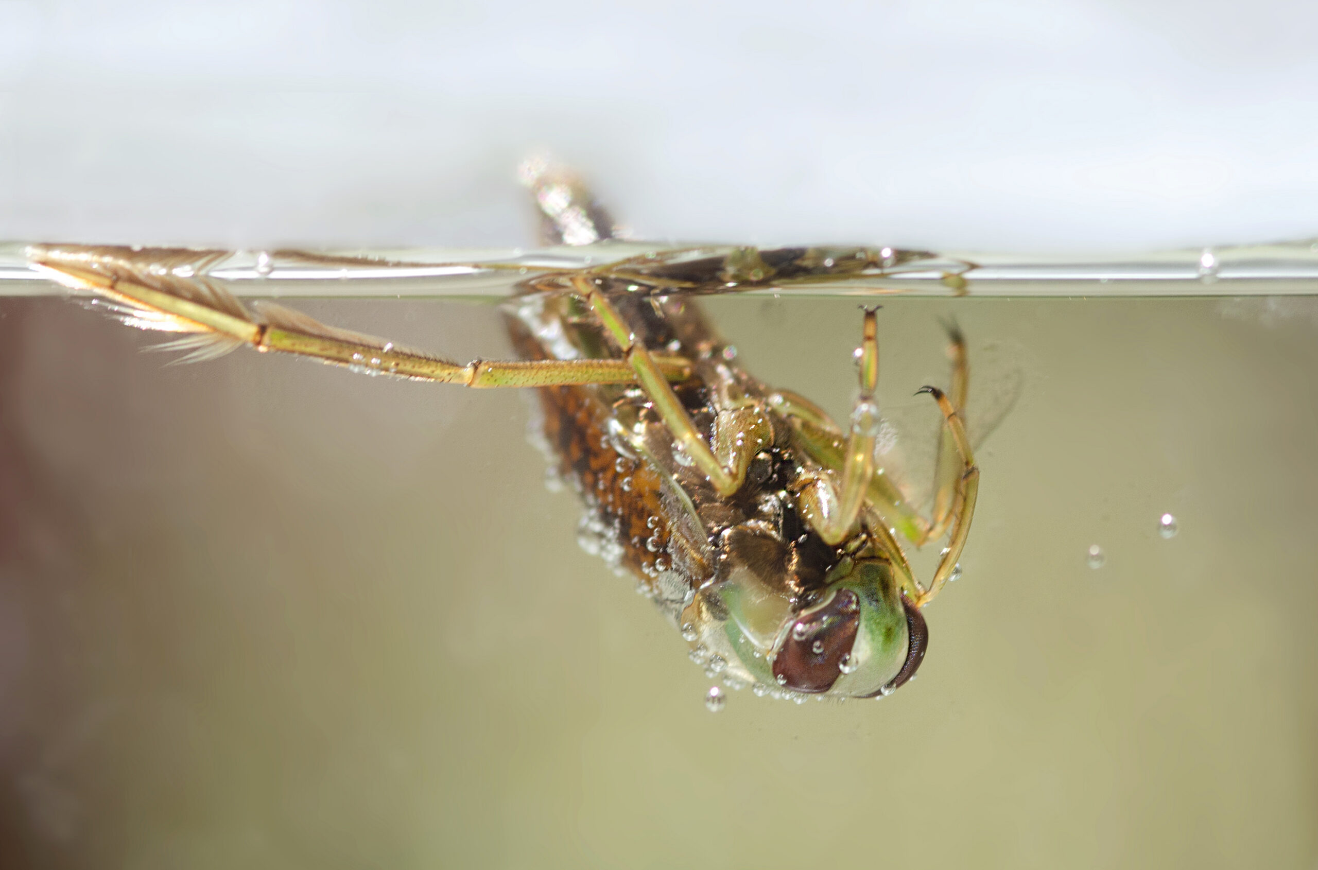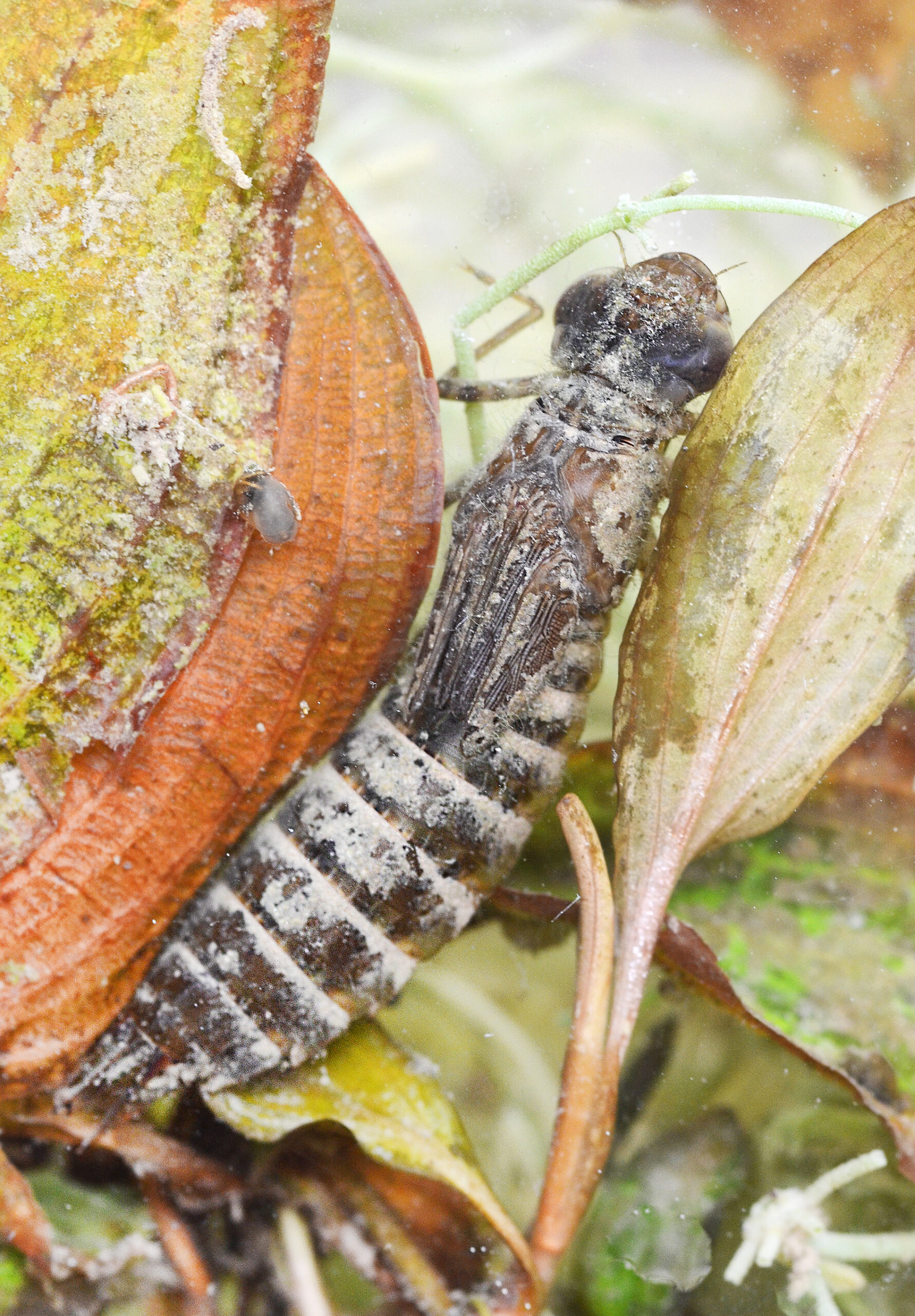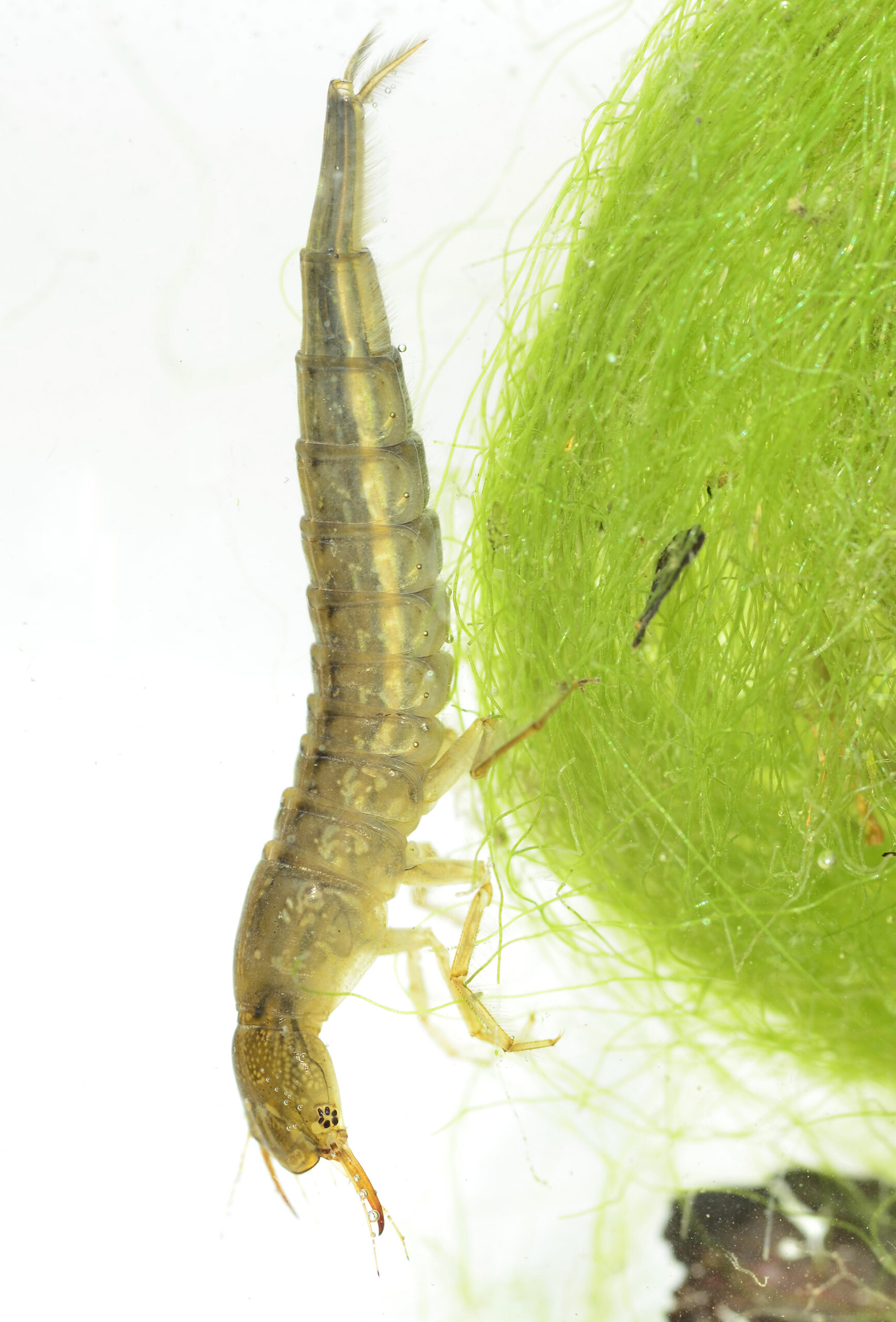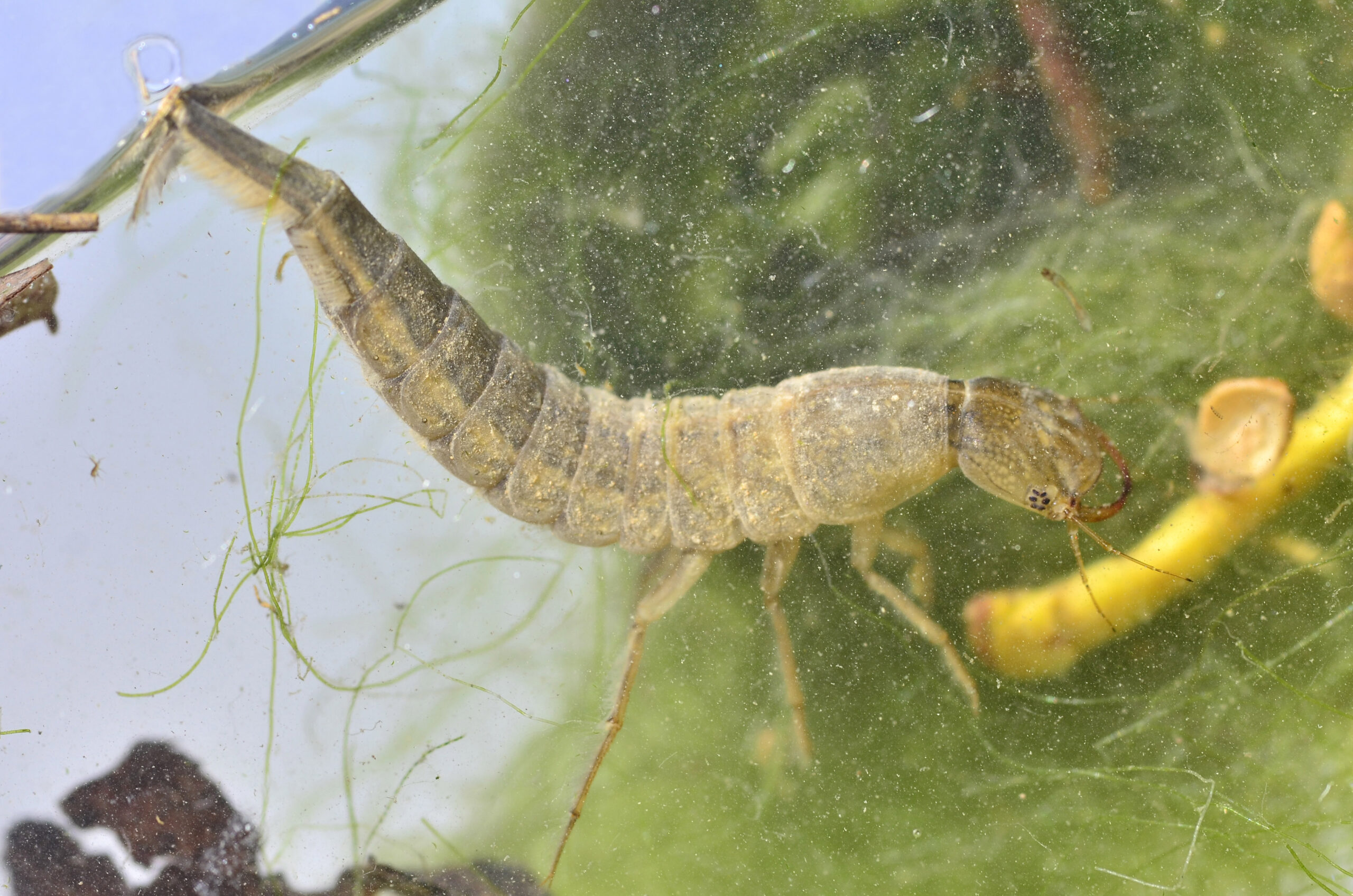 Escarabajo buceador (Dytiscus marginalis), larva. Paisaje Protegido de la Desembocadura del río Millars, Vila-real (Castellón). España.