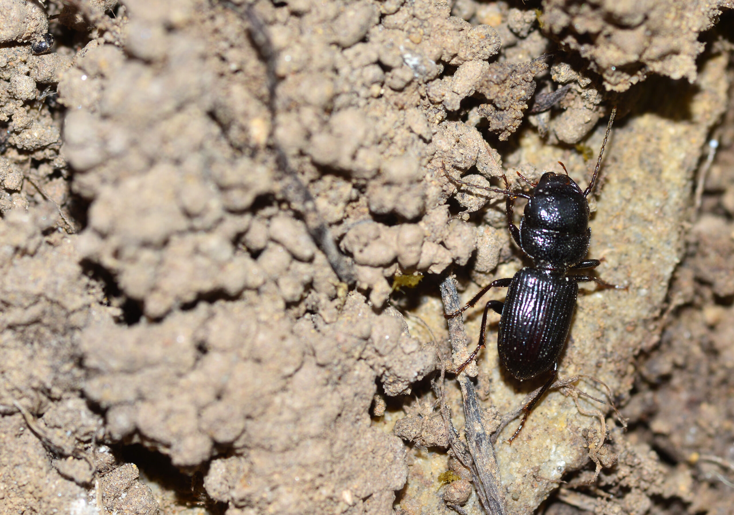 Escarabajo Harpalus rufipes. Parque Natural del Peñagolosa, Villahermosa del Río (Castellón). España.