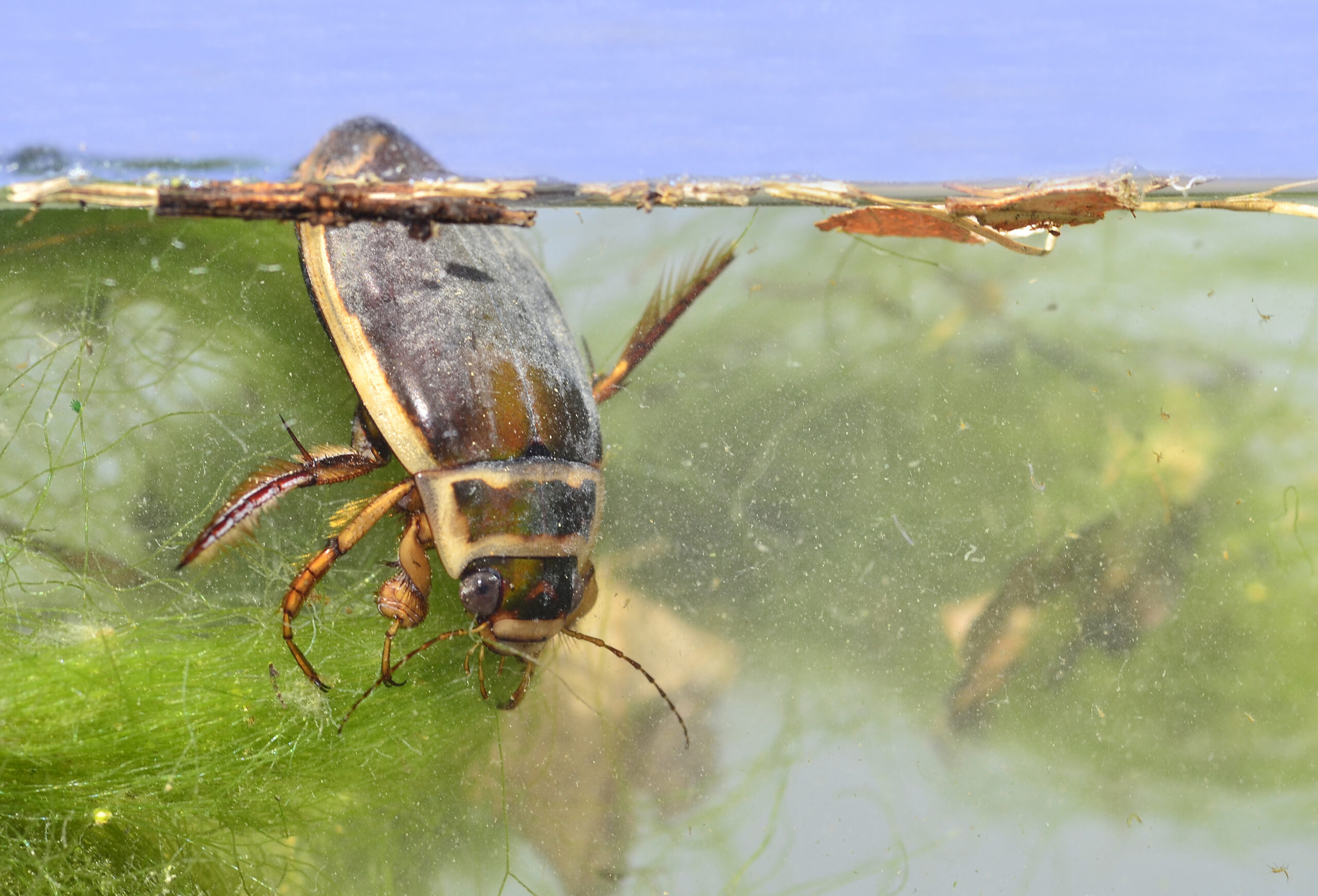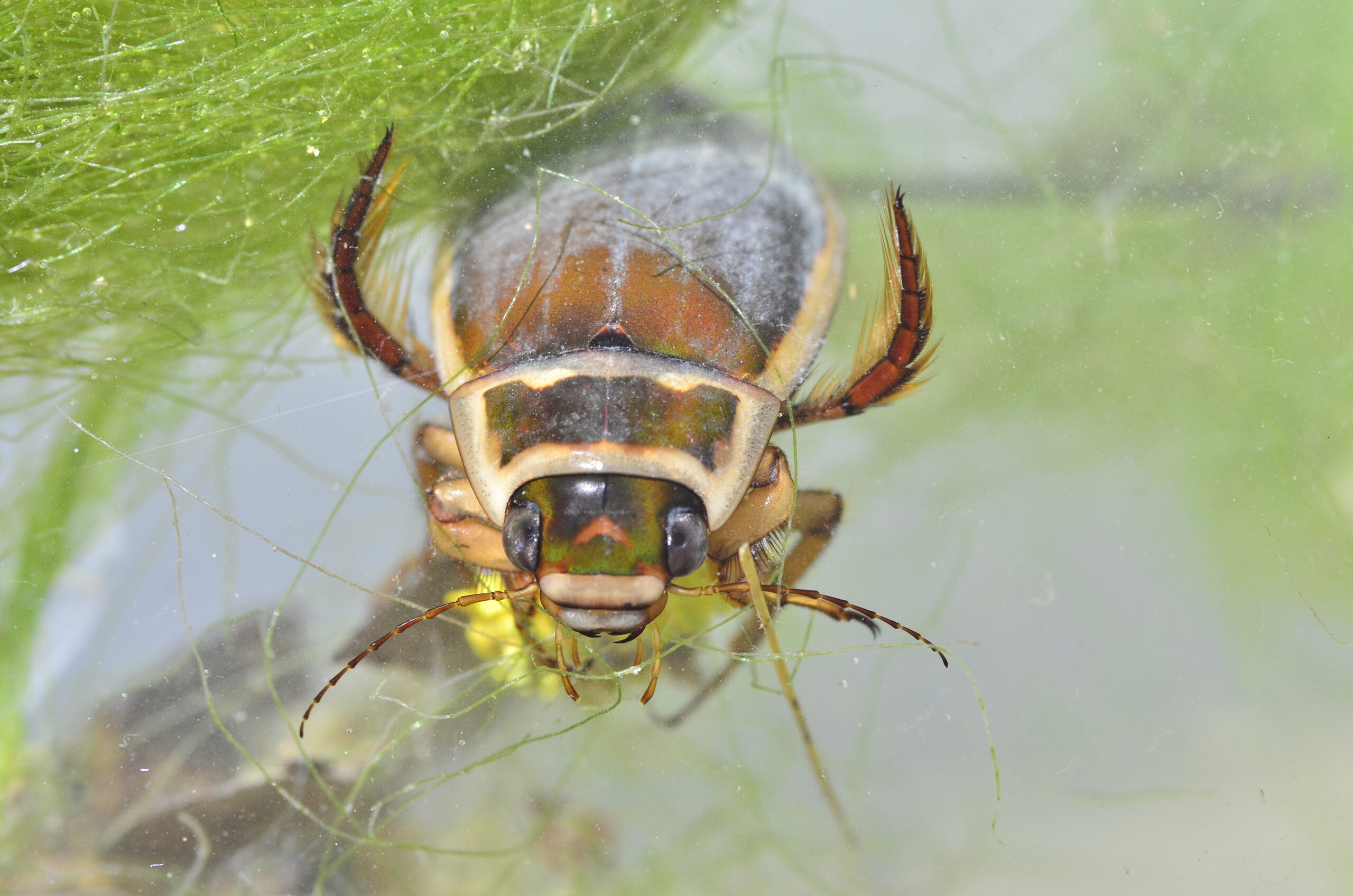 Escarabajo buceador (Dytiscus marginalis). Paisaje Protegido de la Desembocadura del río Millars, Vila-real (Castellón). España.