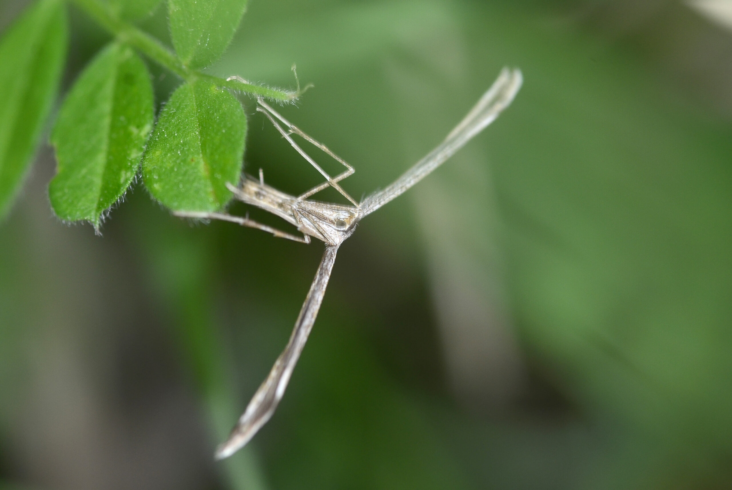 Mariposa polilla pluma (Emmelina monodactyla). Parque Natural del Peñagolosa, Villahermosa del Río (Castellón). España.