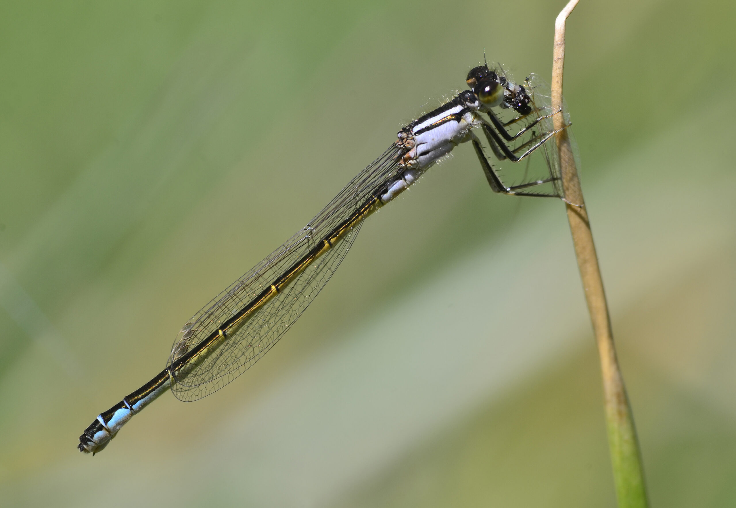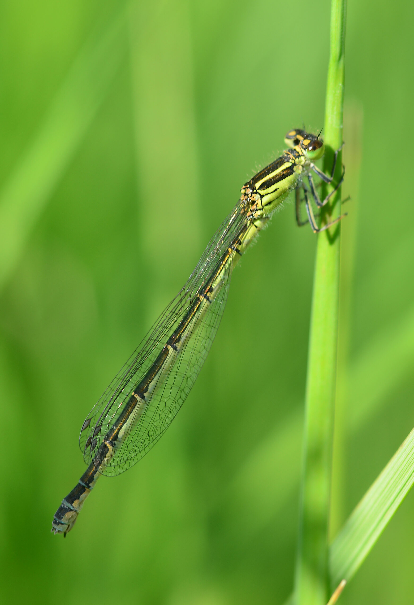 Caballito del diablo ojoazul (Erythromma lindenii), hembra. Parque Natural del Peñagolosa, Villahermosa del Río (Castellón). España.