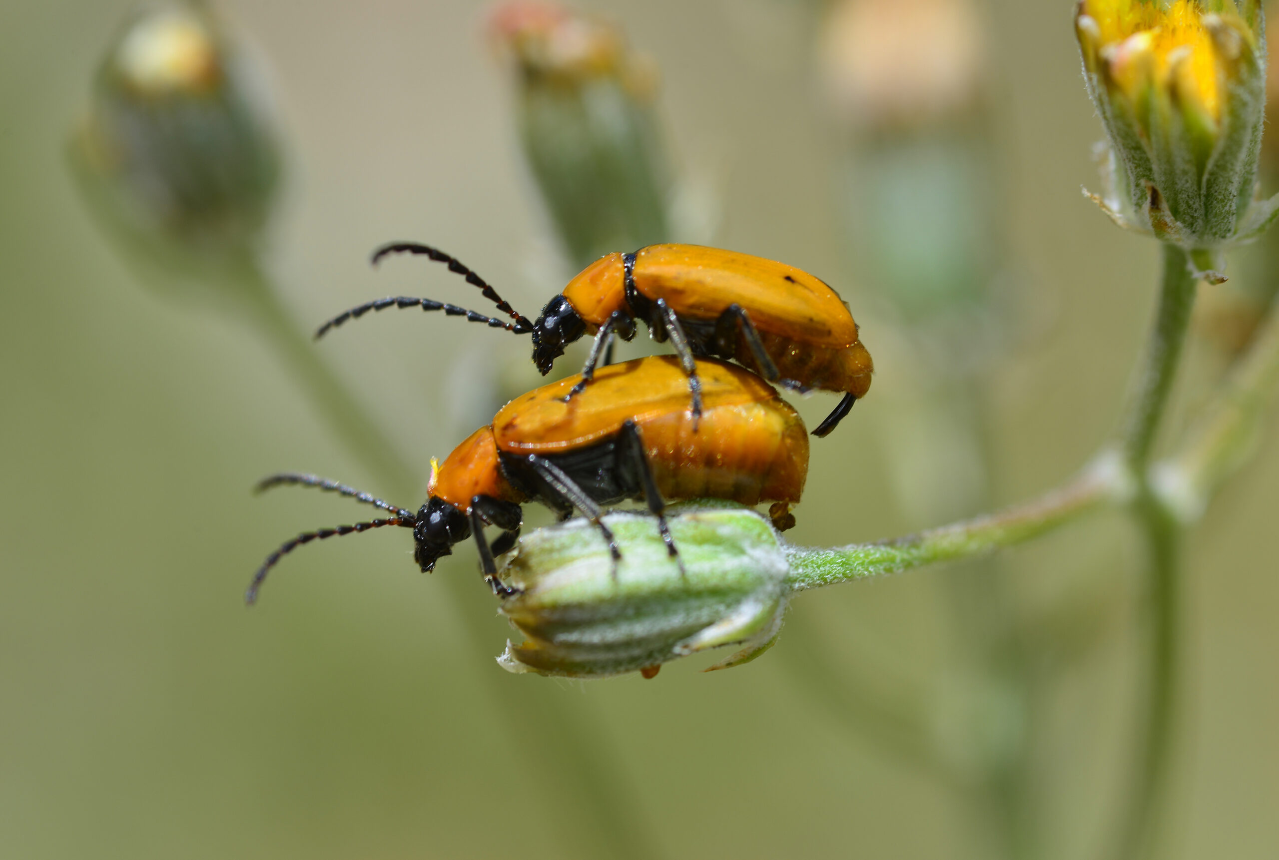 Escarabajo galeruca de los narcisos (Exosoma lusitanicum). Parque Natural del Peñagolosa, Villahermosa del Río (Castellón). España.