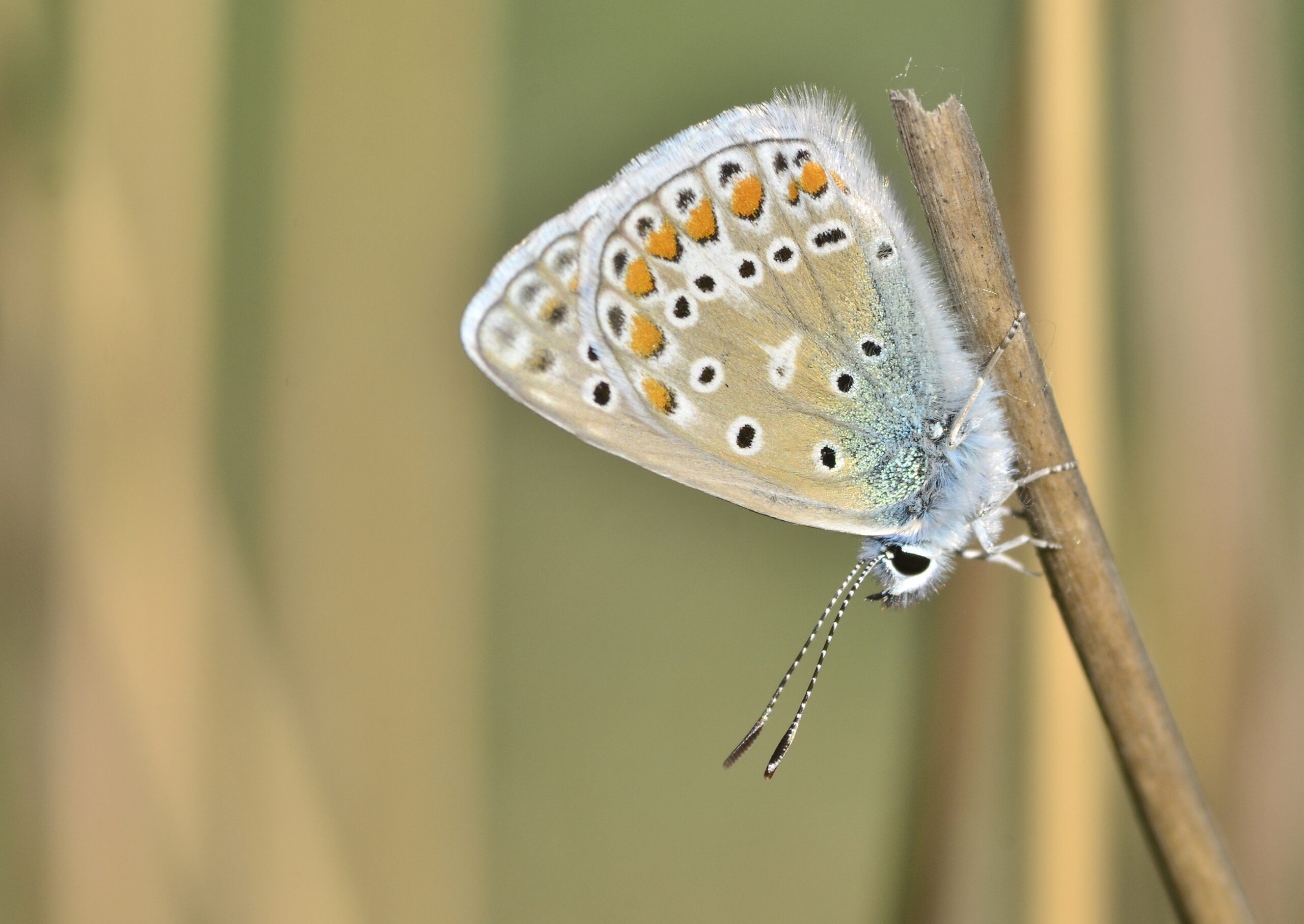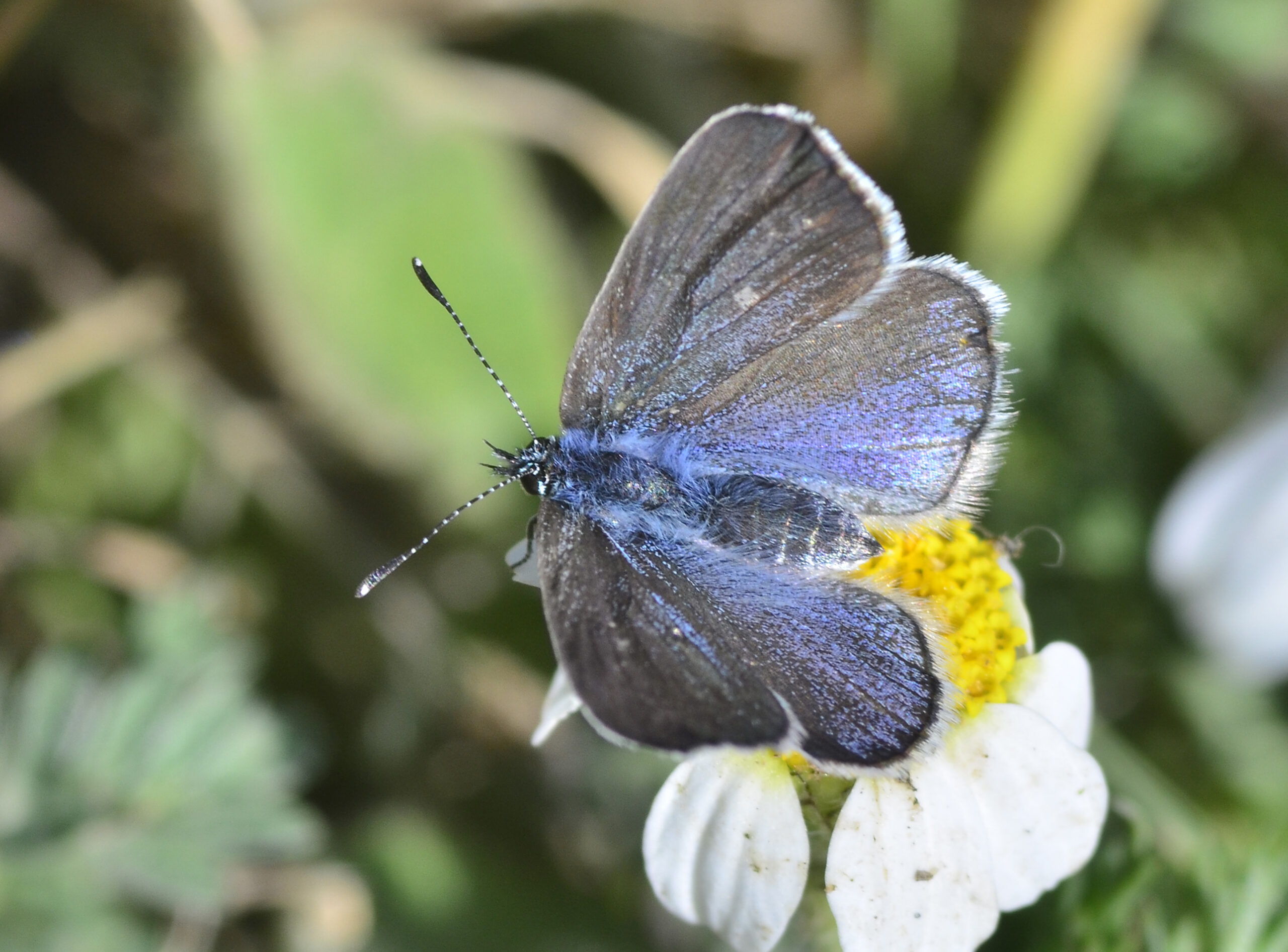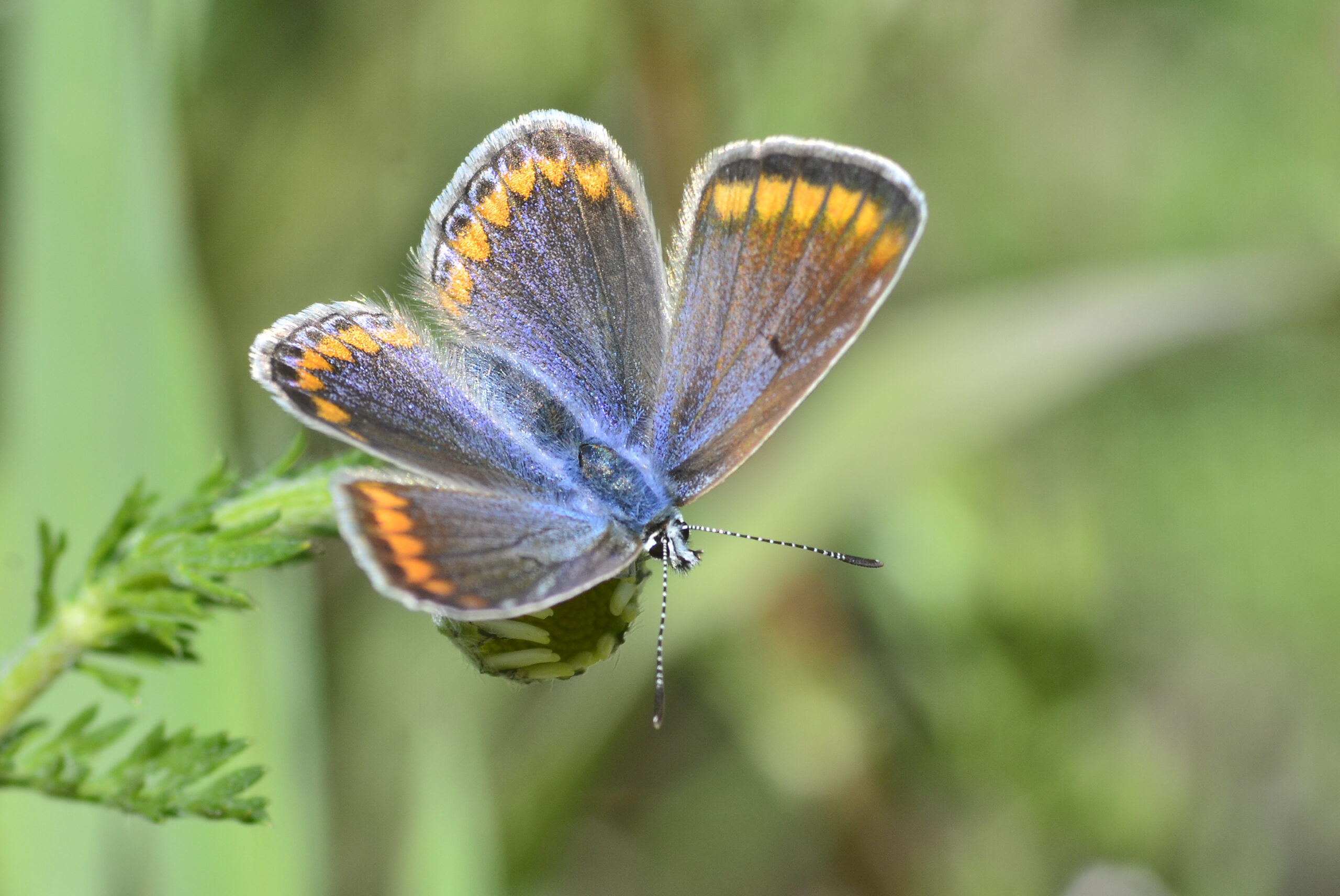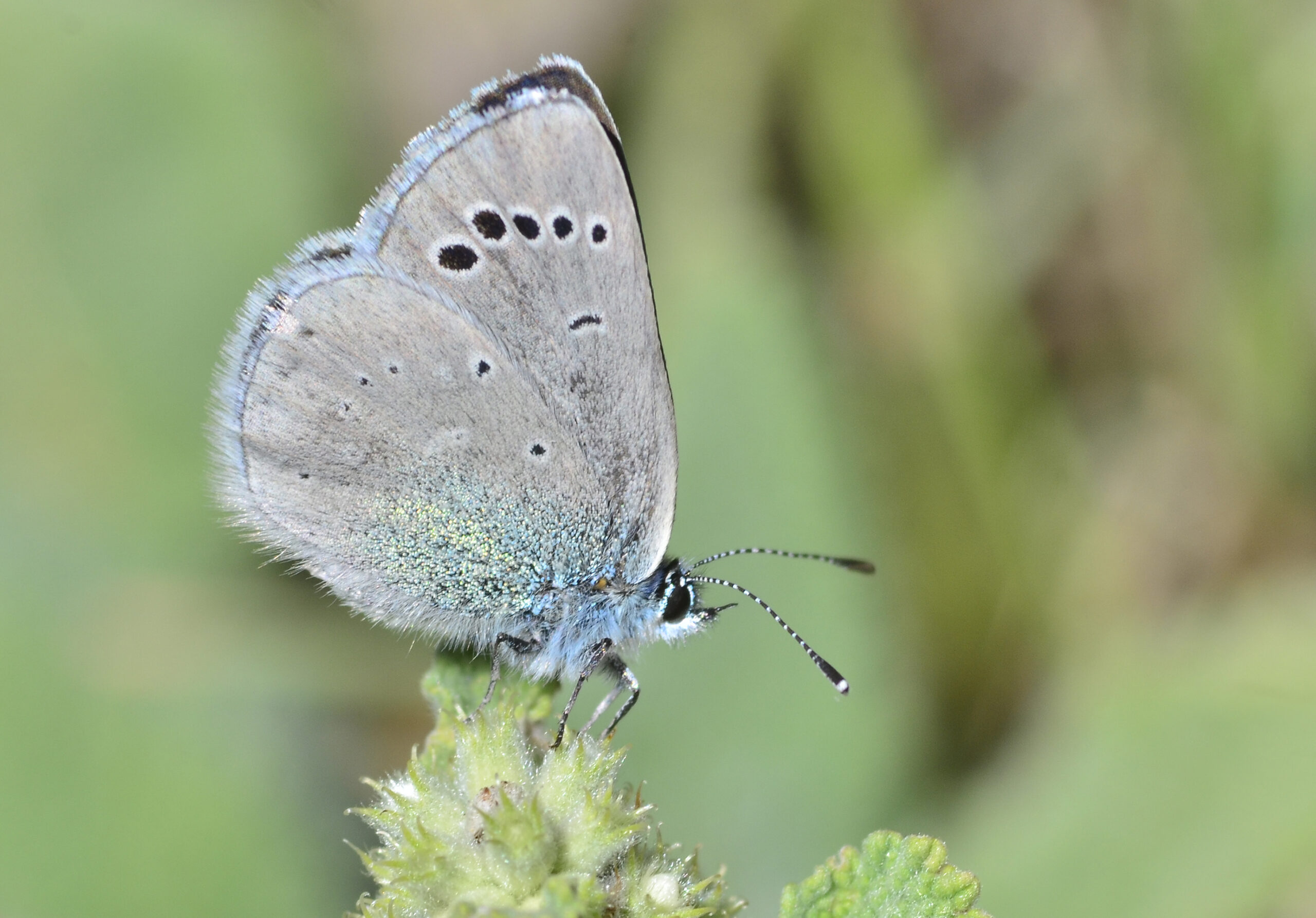 Mariposa turquesa europea (Glaucopsyche alexis), hembra. Parque Natural del Peñagolosa, Villahermosa del Río (Castellón). España.