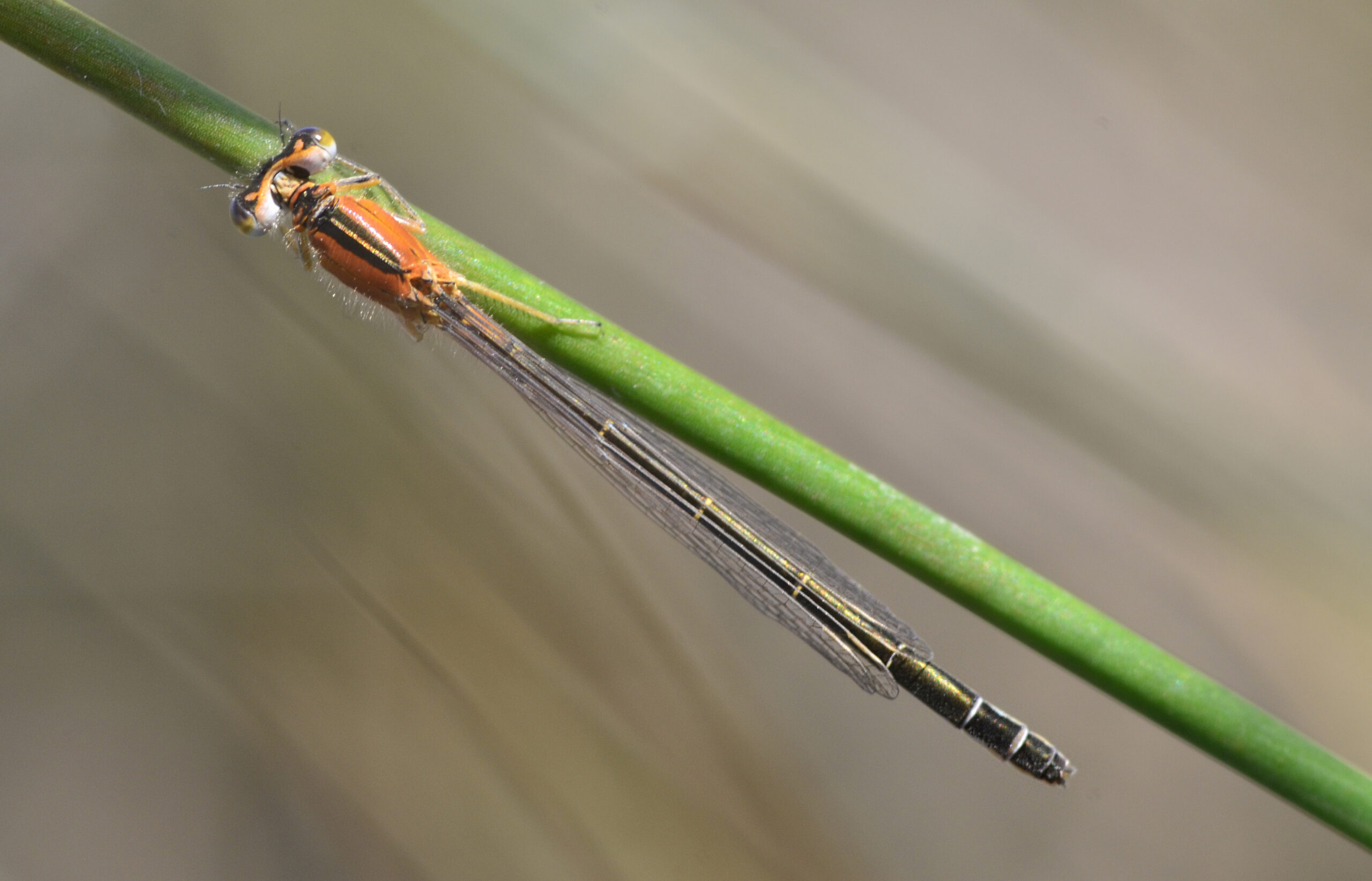 Caballito del diablo iberomagrebí (Ischnura graellsii), morfo aurantiaca. Parque Natural del Peñagolosa, Villahermosa del Río (Castellón). España.