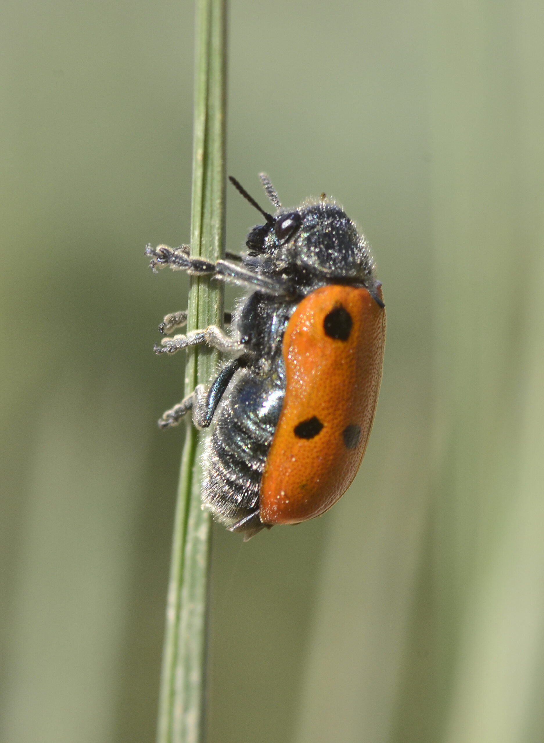 Escarabajo mariquita de dos ampollas (Chilocorus bipustulatus). Parque Natural del Peñagolosa, Villahermosa del Río (Castellón). España.