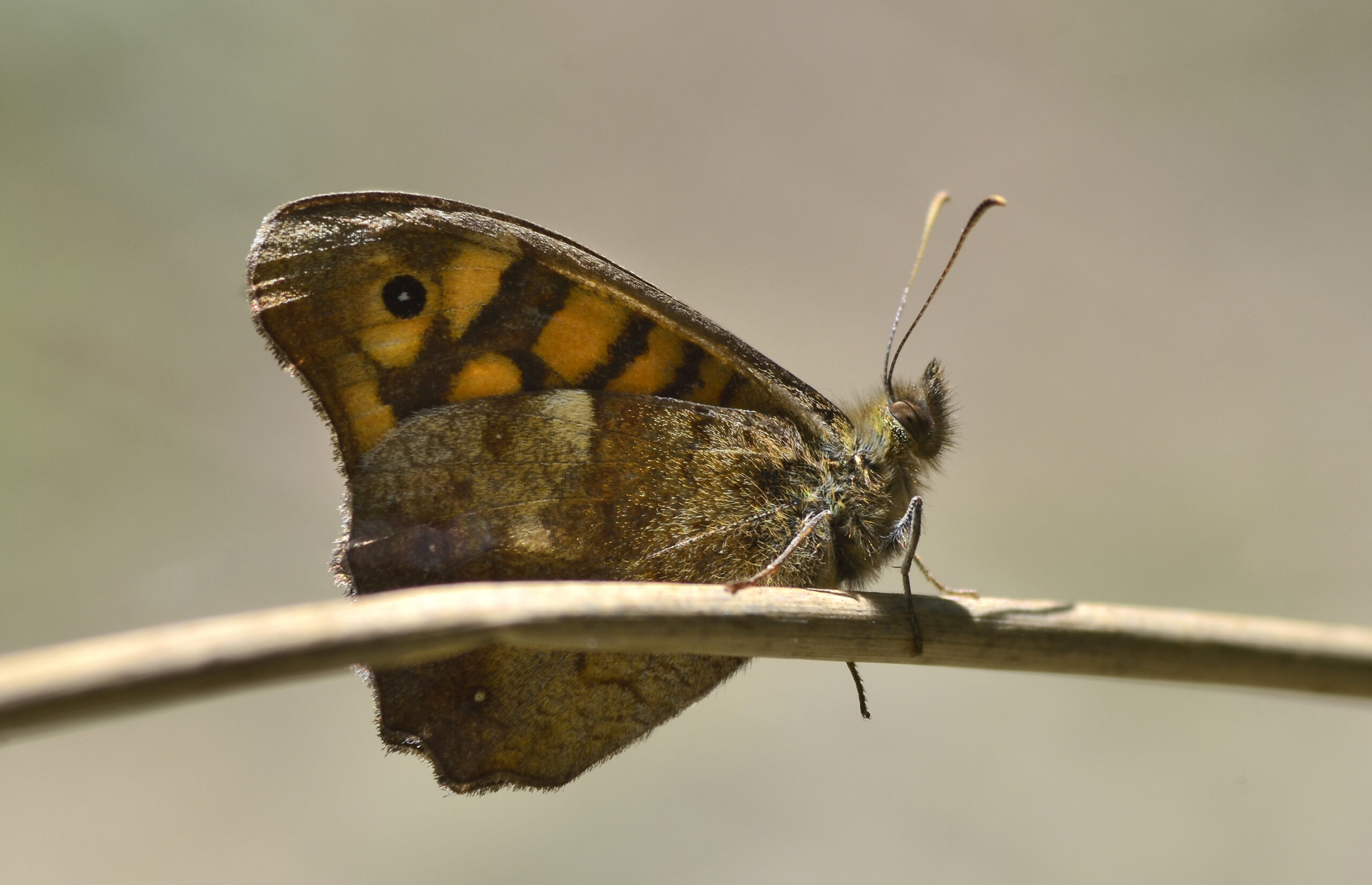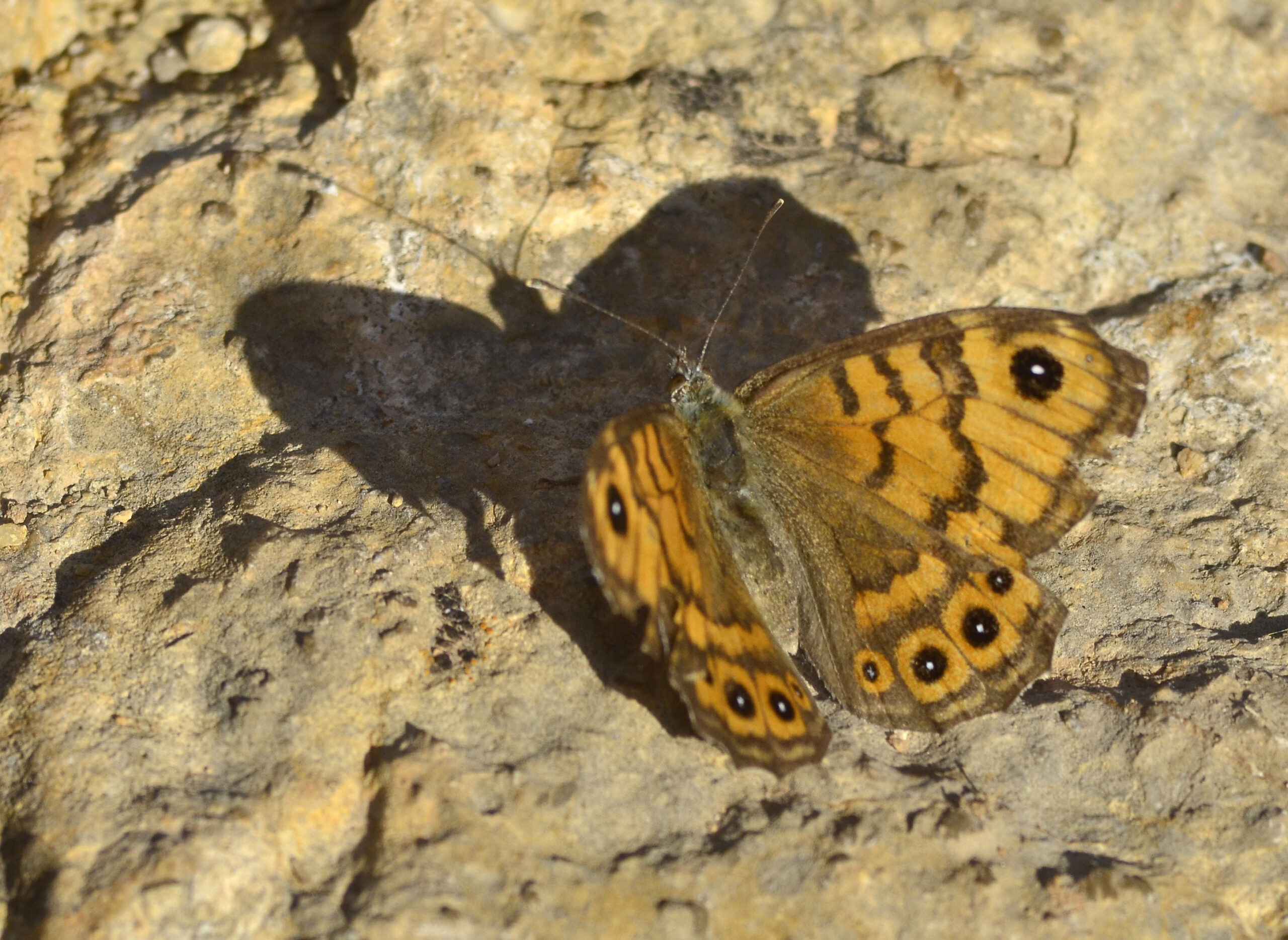 Mariposa margenera o saltacercas (Lasiommata megera). Parque Natural del Peñagolosa, Villahermosa del Río (Castellón). España.