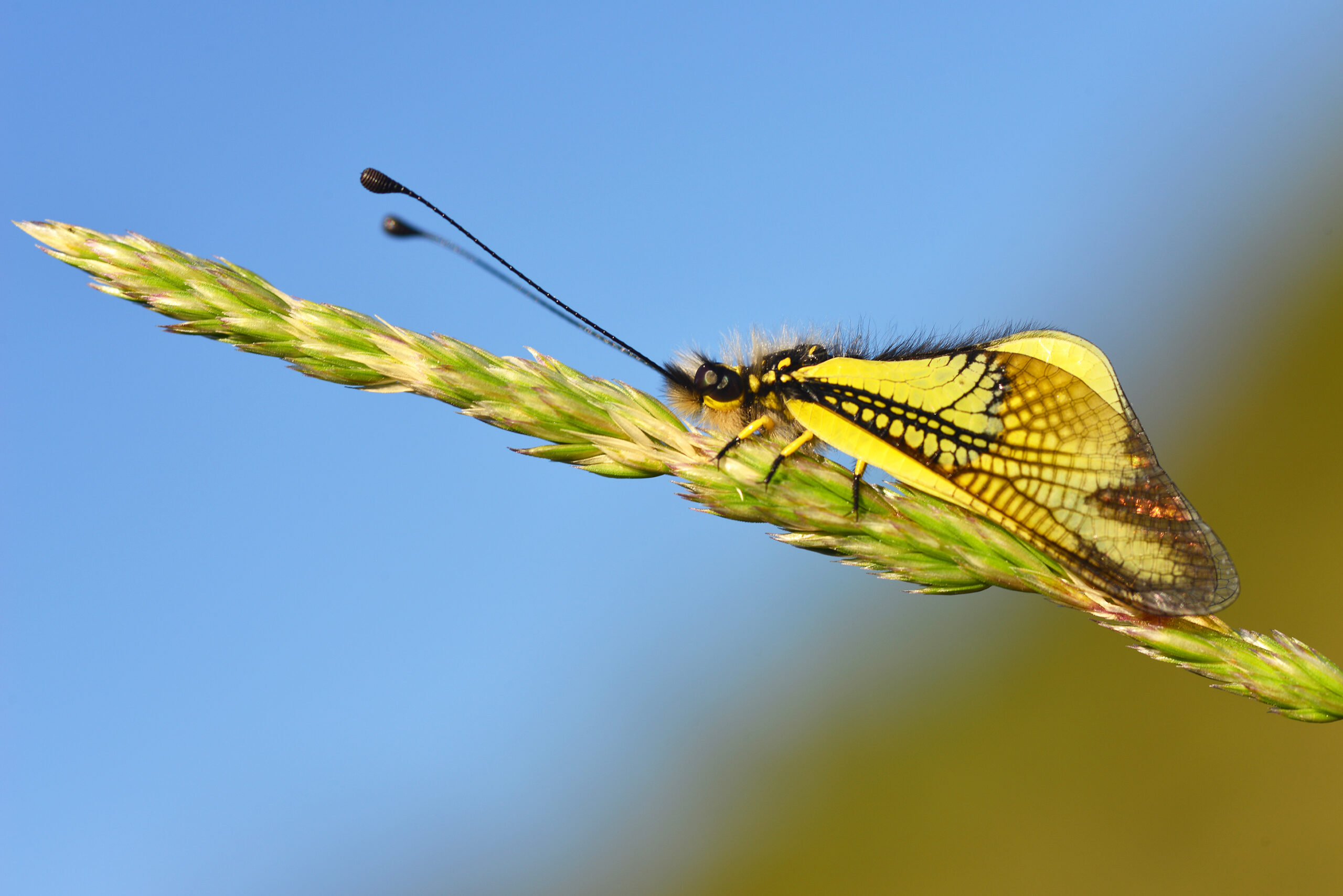 Ascaláfido o mariposa libélula (Libelloides cunii). Parque Natural del Peñagolosa, Villahermosa del Río (Castellón). España.
