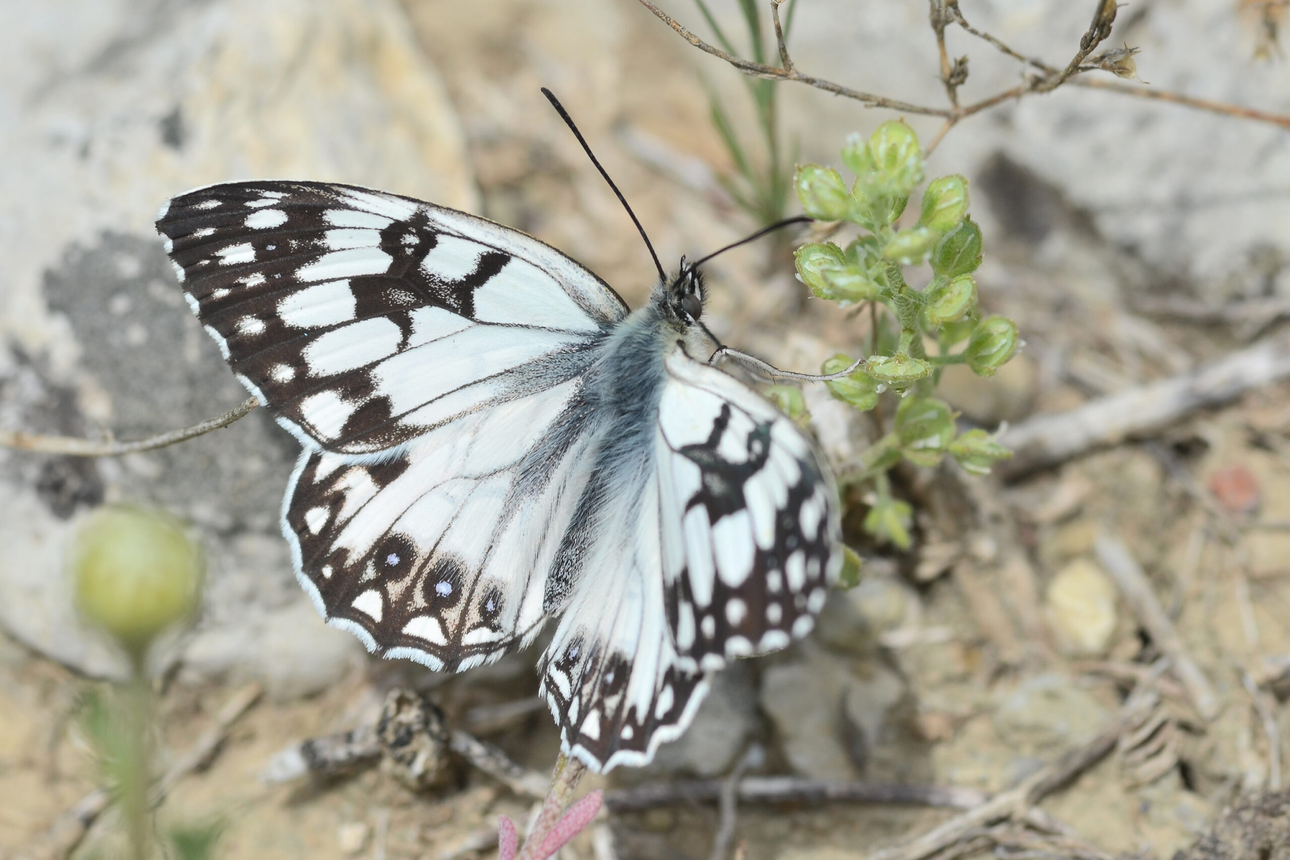 Mariposa medioluto herrumbrosa (Melanargia occitanica). Parque Natural del Peñagolosa, Villahermosa del Río (Castellón). España.