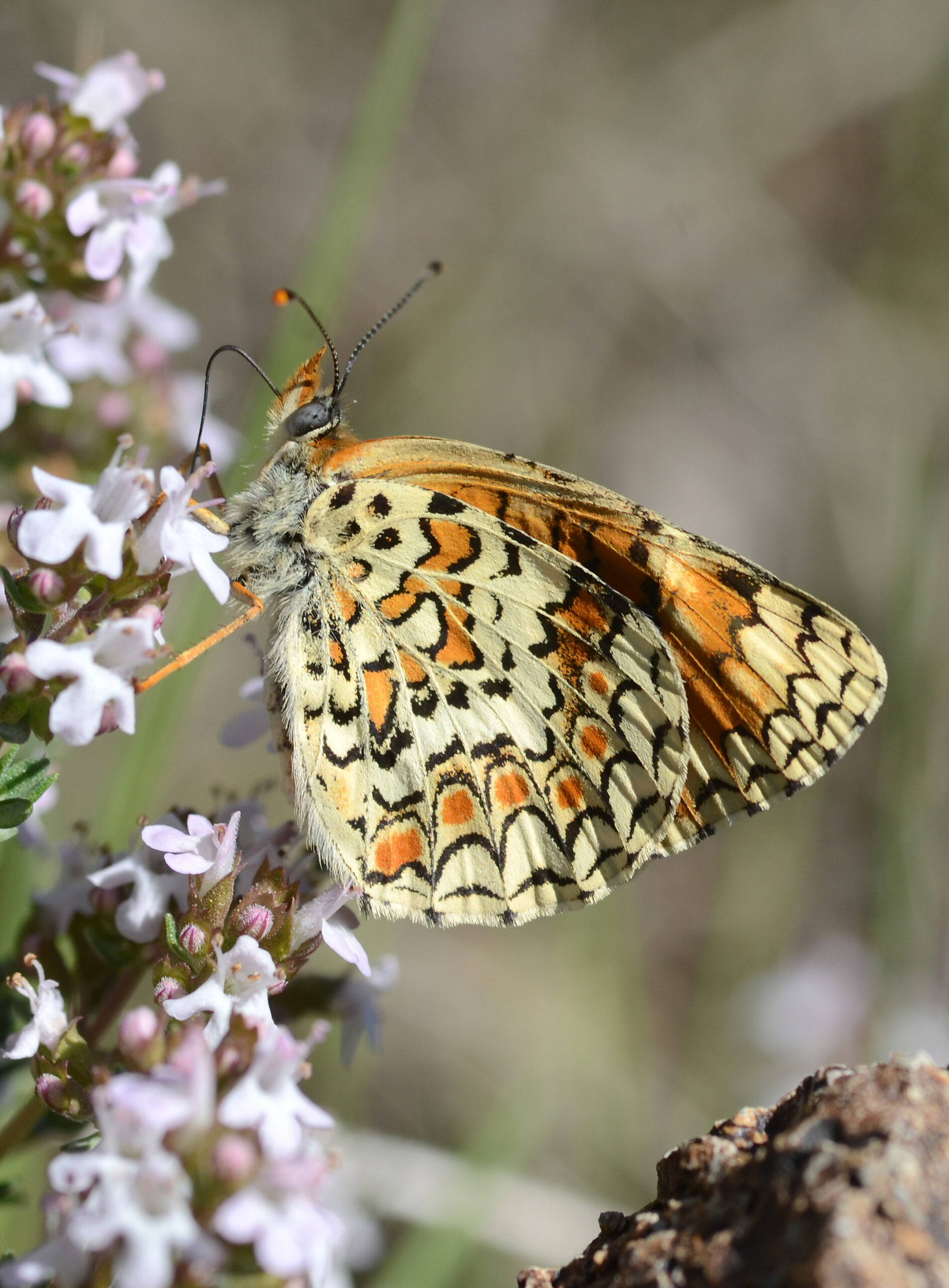 Mariposa doncella deione (Melitaea deione). Parque Natural del Peñagolosa, Villahermosa del Río (Castellón). España.