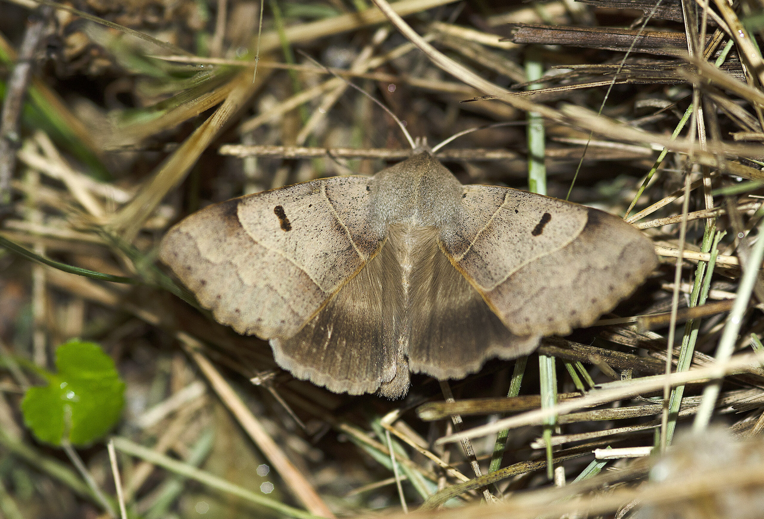 Mariposa polilla de la coscoja (Minucia lunaris). Parque Natural del Peñagolosa, Villahermosa del Río (Castellón). España.