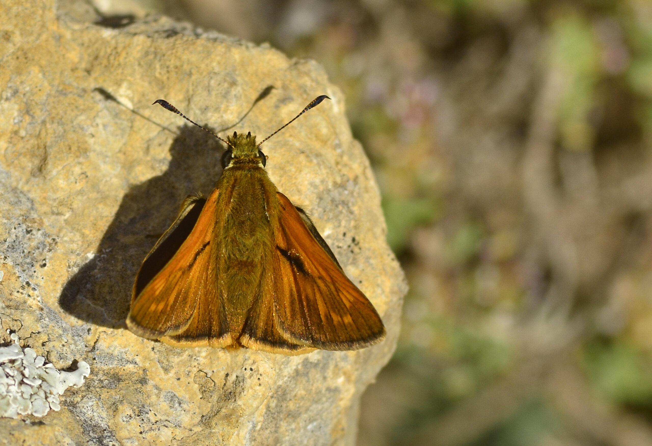 Mariposa dorada de orla ancha (Ochlodes sylvanus). Parque Natural del Peñagolosa, Villahermosa del Río (Castellón). España.