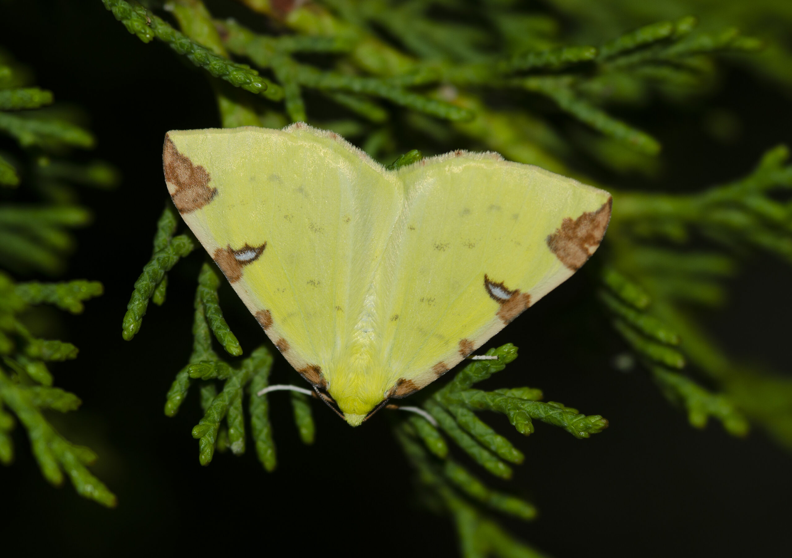 Mariposa polilla del azufre (Opisthograptis luteolata). Parque Natural del Peñagolosa, Villahermosa del Río (Castellón). España.