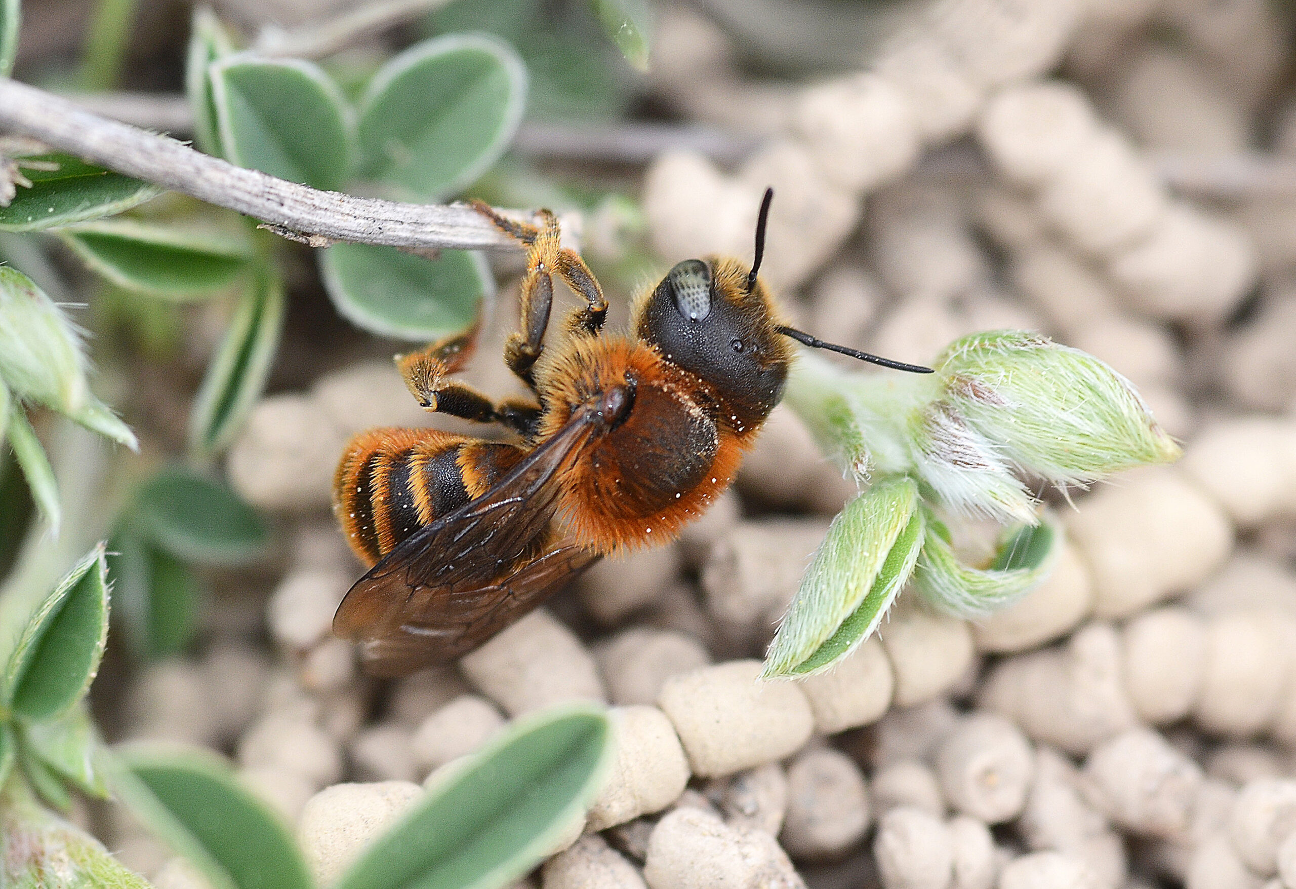 Abeja terrera (Osmia rufohirta). Paraje del Termet, Vila-real (Castellón). España.