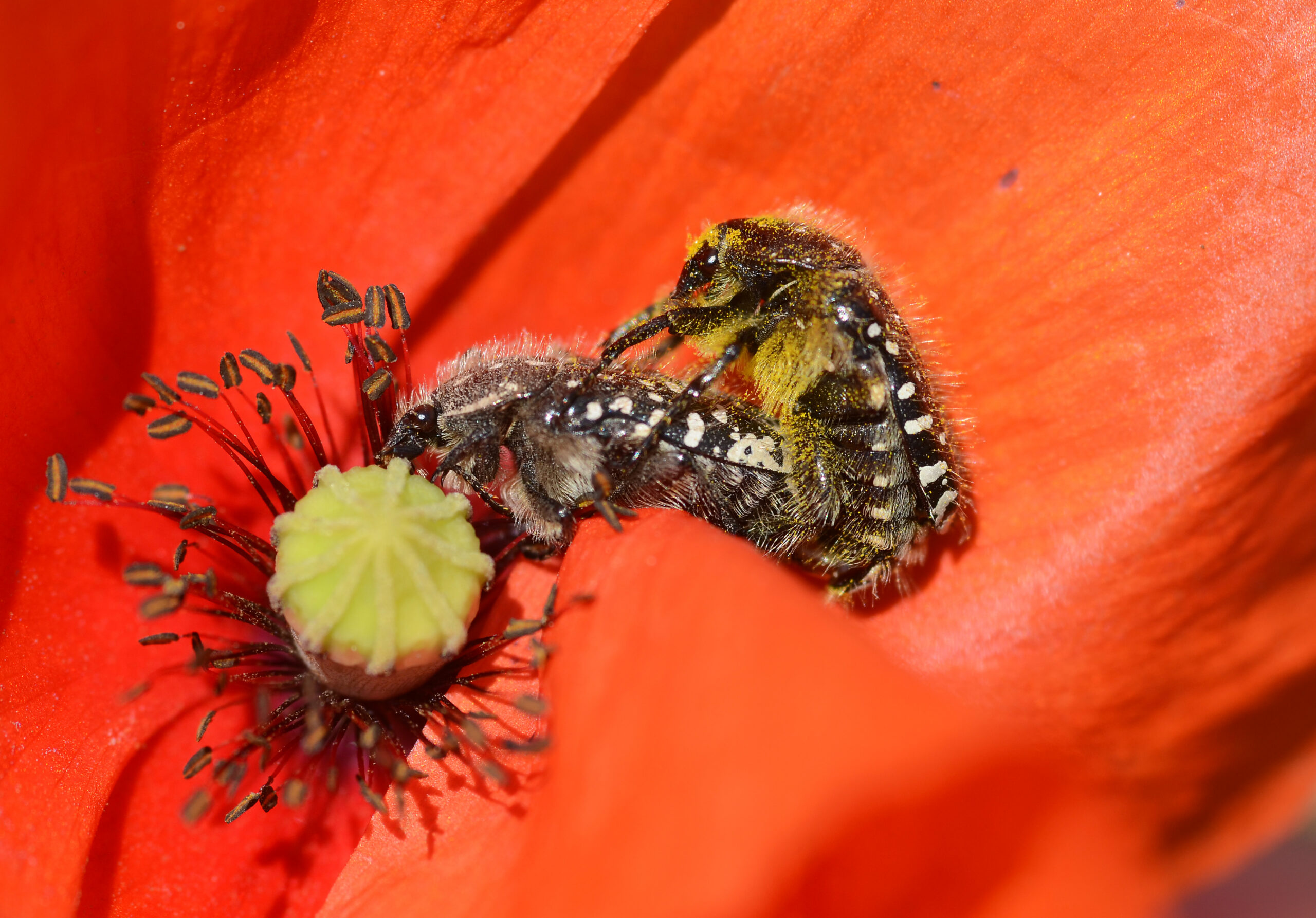 Escarabajo de las flores (Oxythyrea funesta). Parque Natural del Peñagolosa, Villahermosa del Río (Castellón). España.