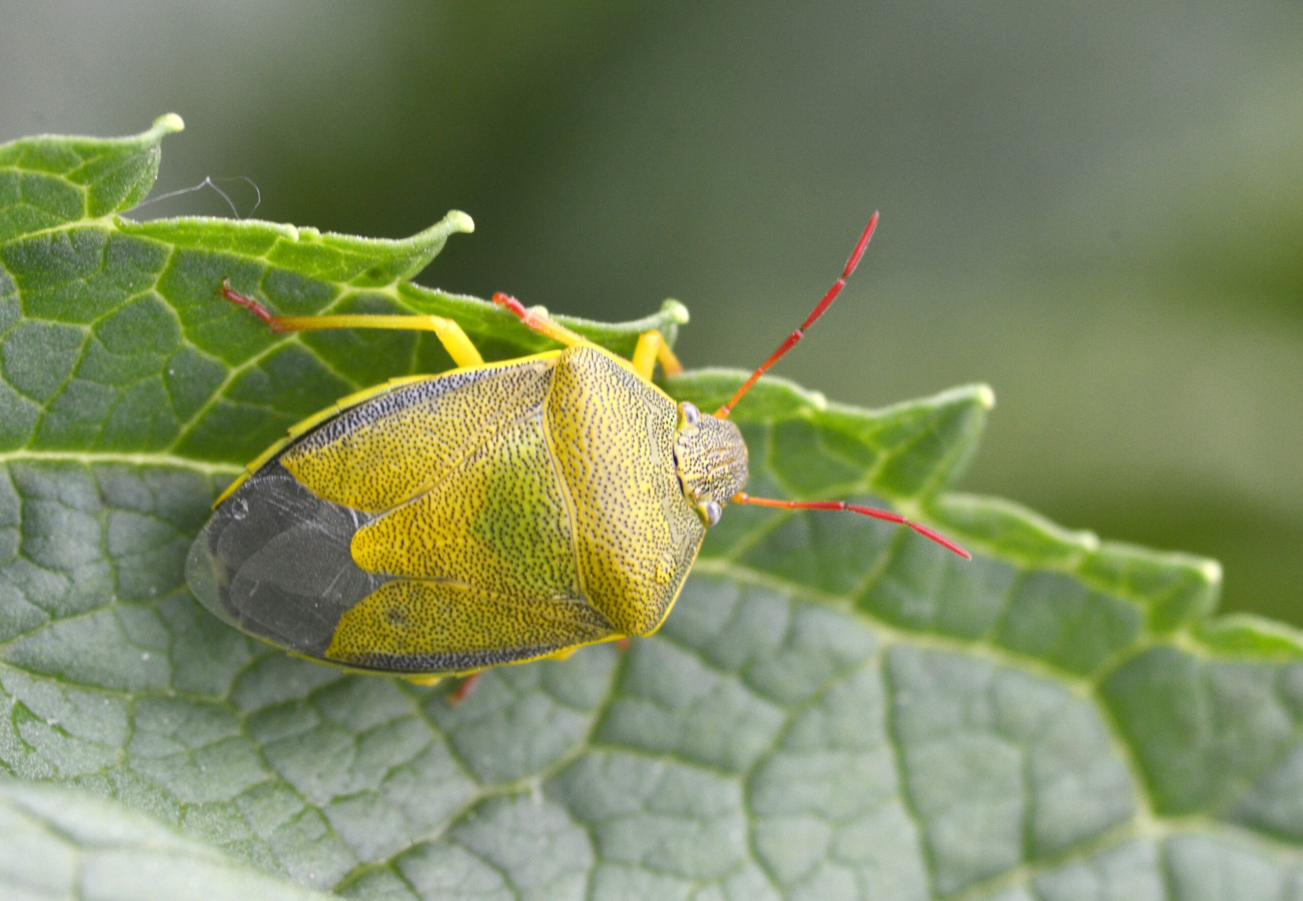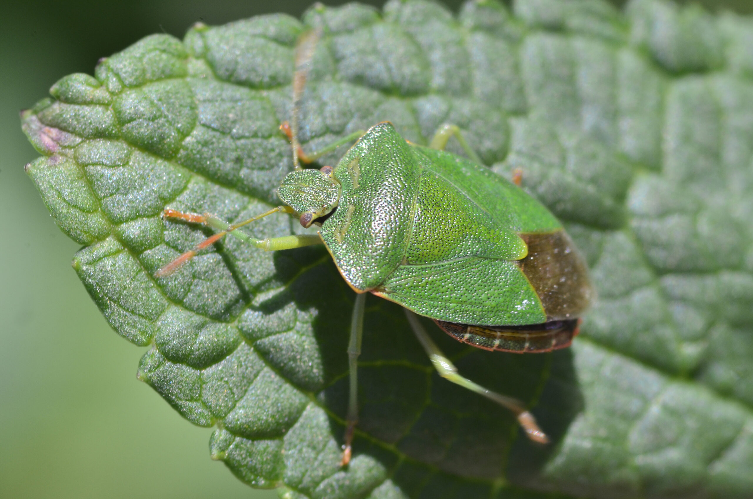 Chinche de escudo verde (Palomena prasina). Arroyo de San Bartolomé, Villahermosa del Río (Castellón). España.