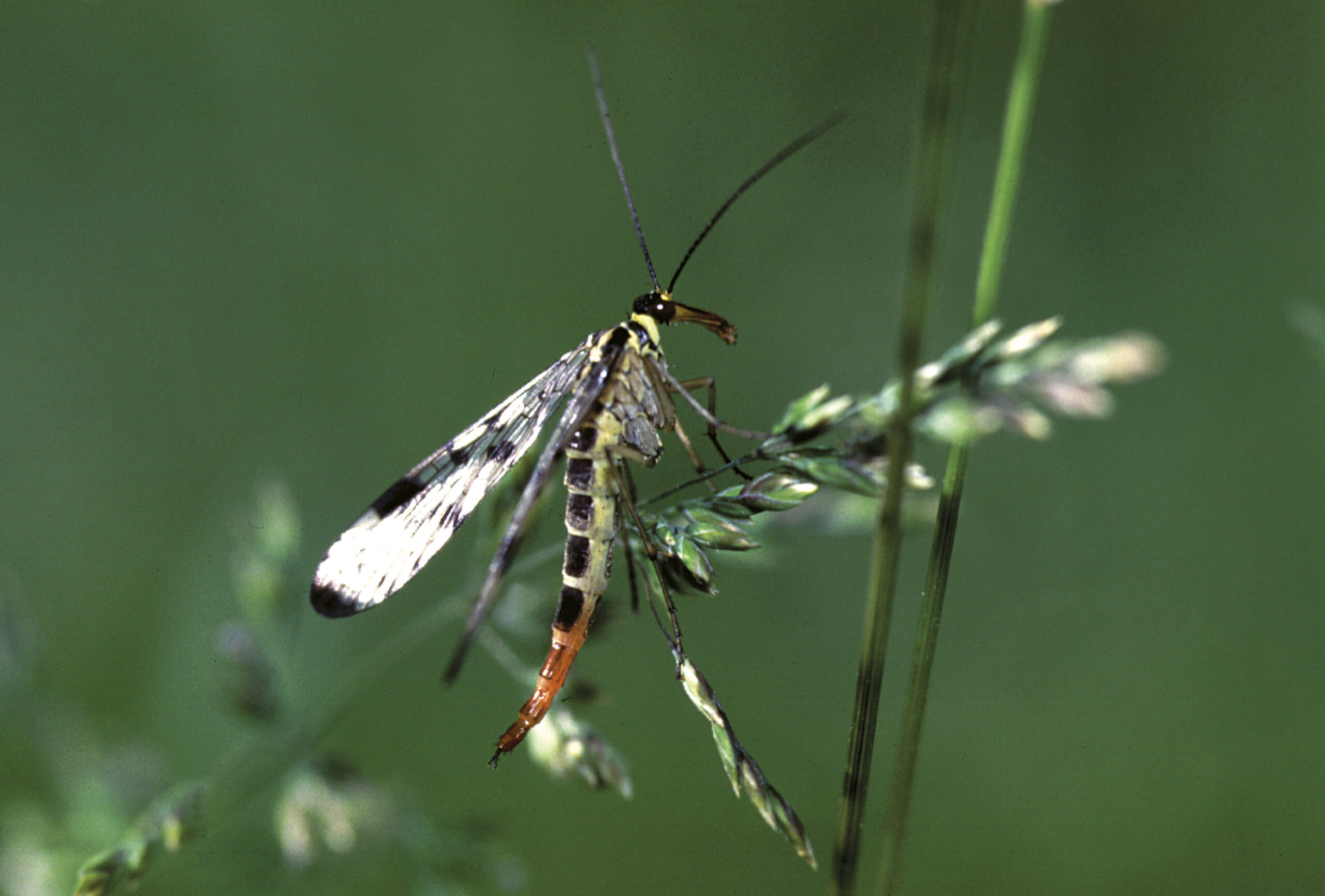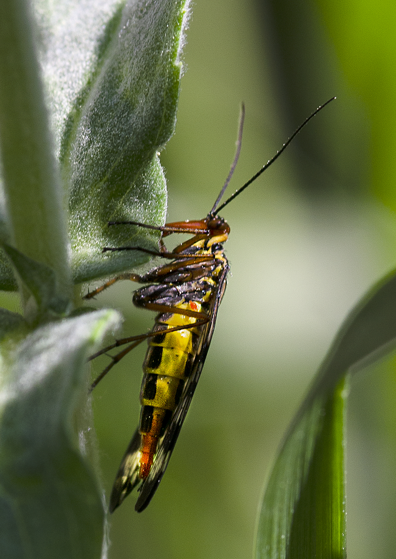 Mosca escorpión meridional (Panorpa meridionalis), hembra. Paisaje Protegido de la Desembocadura del Millars (Castellón). España.