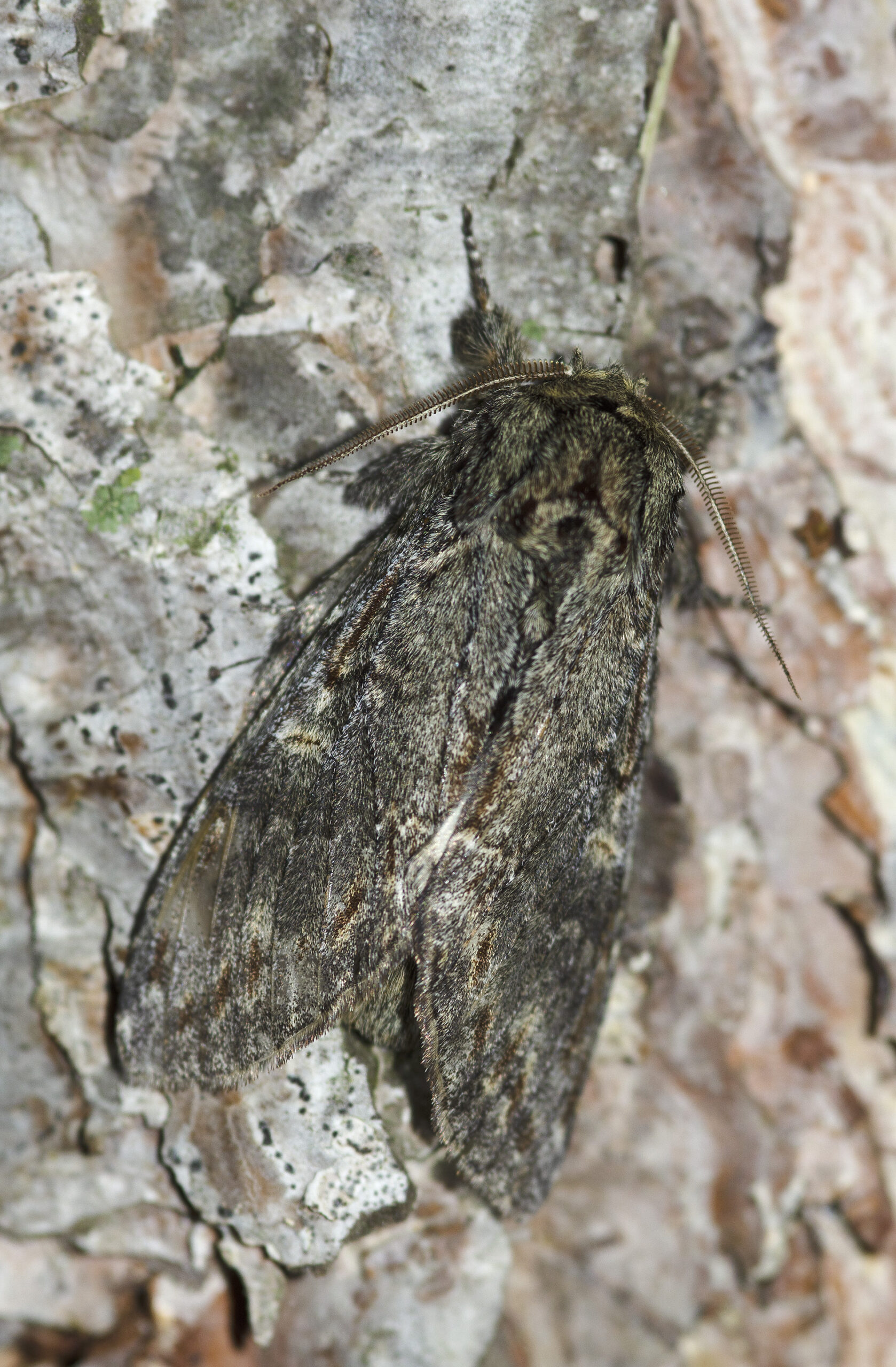 Mariposa polilla timide (Peridea anceps). Parque Natural del Peñagolosa, Villahermosa del Río (Castellón). España.