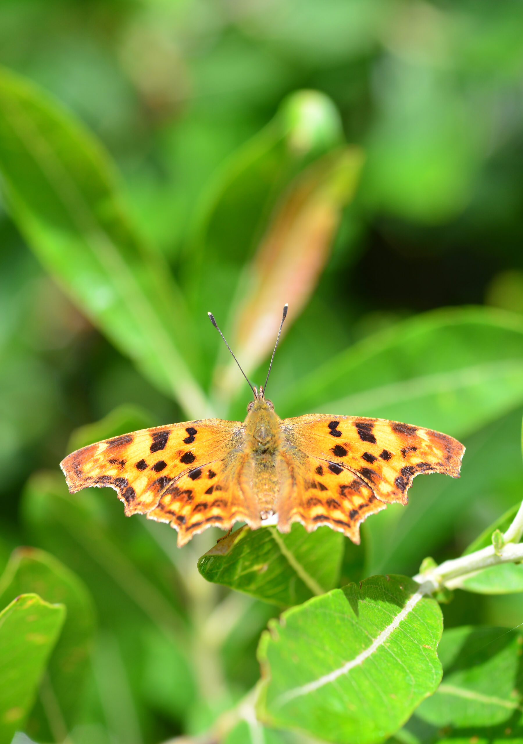 Mariposa C-blanca (Polygonia c-album). Parque Natural del Peñagolosa, Villahermosa del Río (Castellón). España.