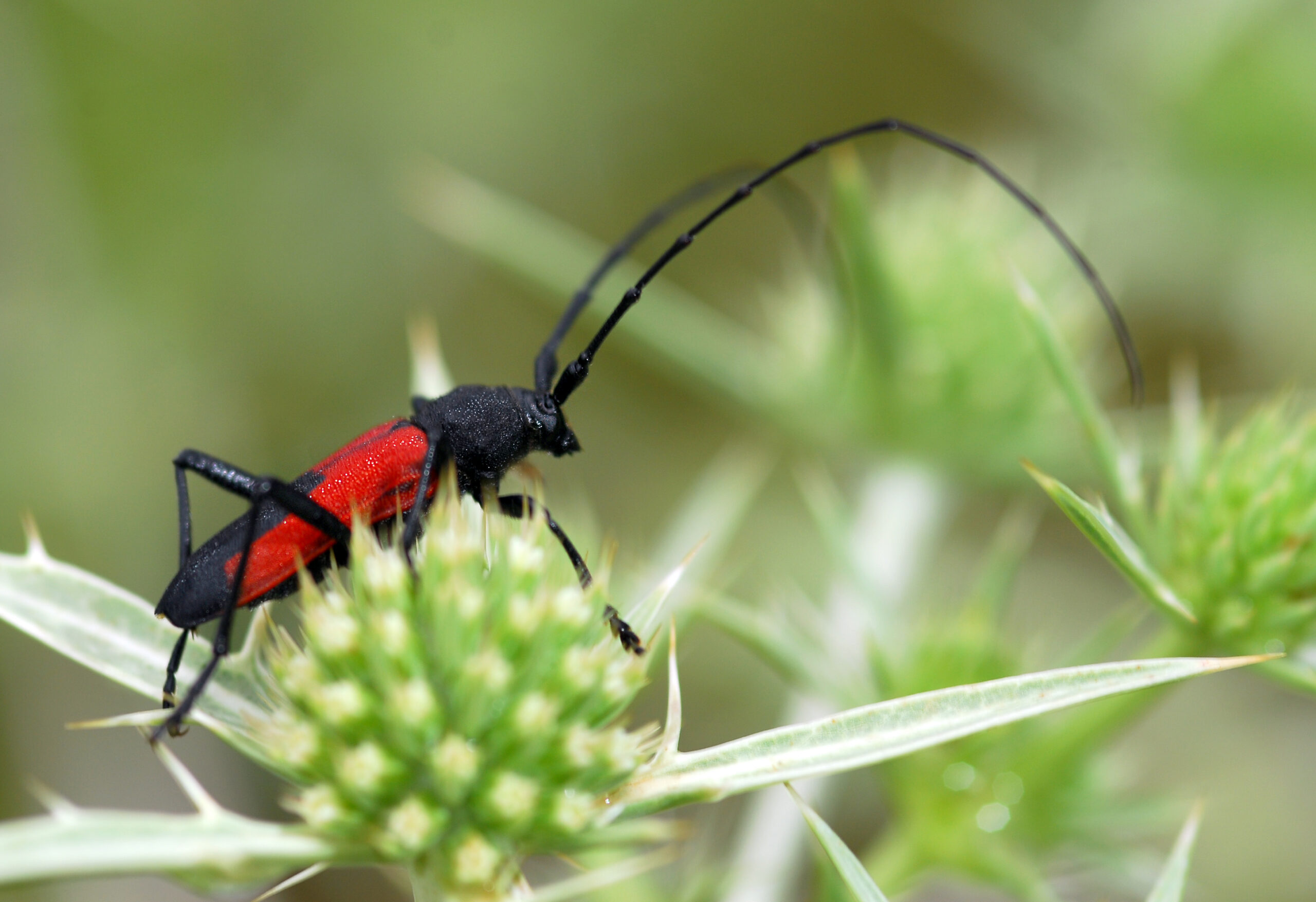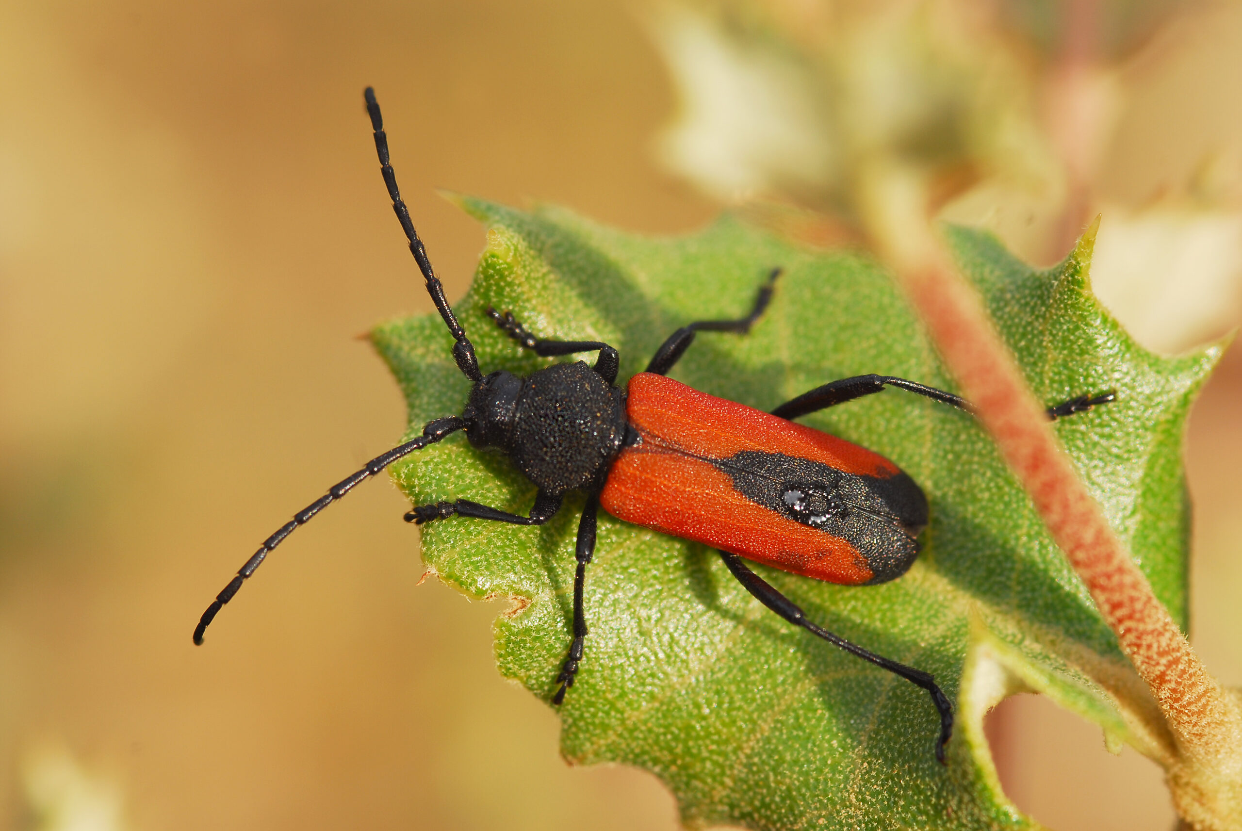 Escarabajo Purpuricenus budensis, macho. Parque Natural del Peñagolosa, Villahermosa del Río (Castellón). España.