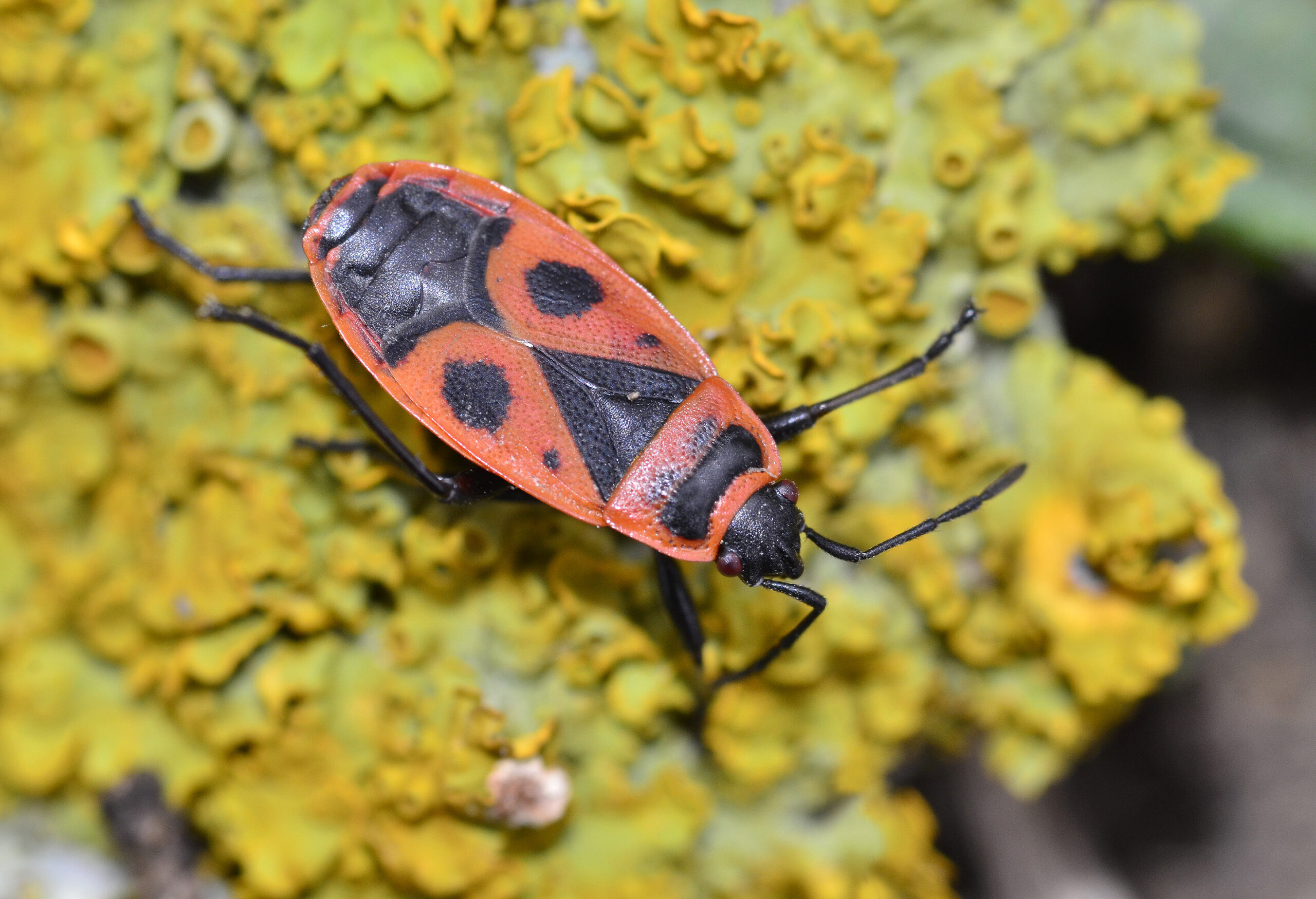 Chinche de la malva (Pyrrhocoris apterus). Arroyo de San Bartolomé, Villahermosa del Río (Castellón). España.