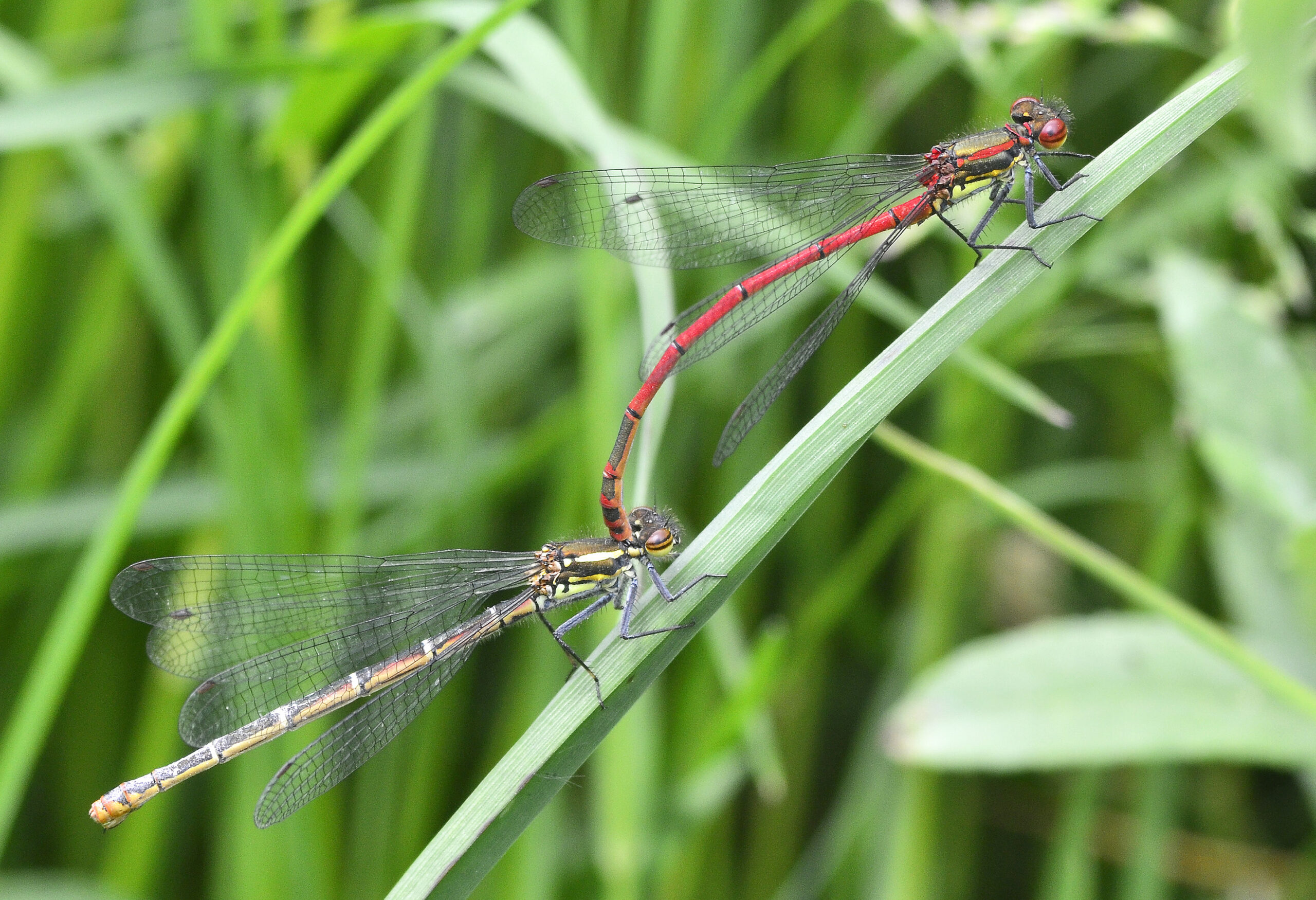 Caballito ferroso de patas negras (Pyrrhosoma nymphula), hembra. Parque Natural del Peñagolosa, Villahermosa del Río (Castellón). España.